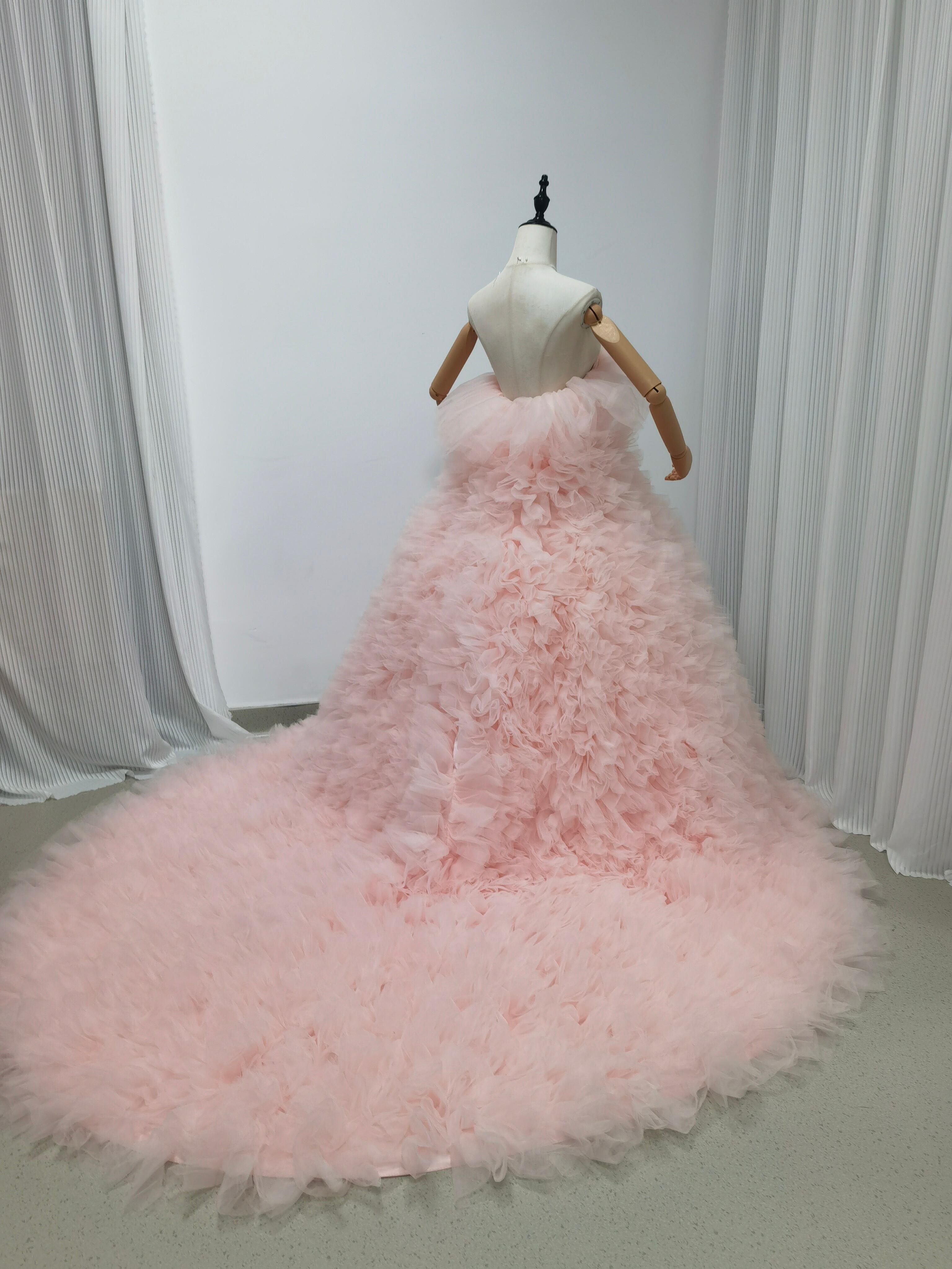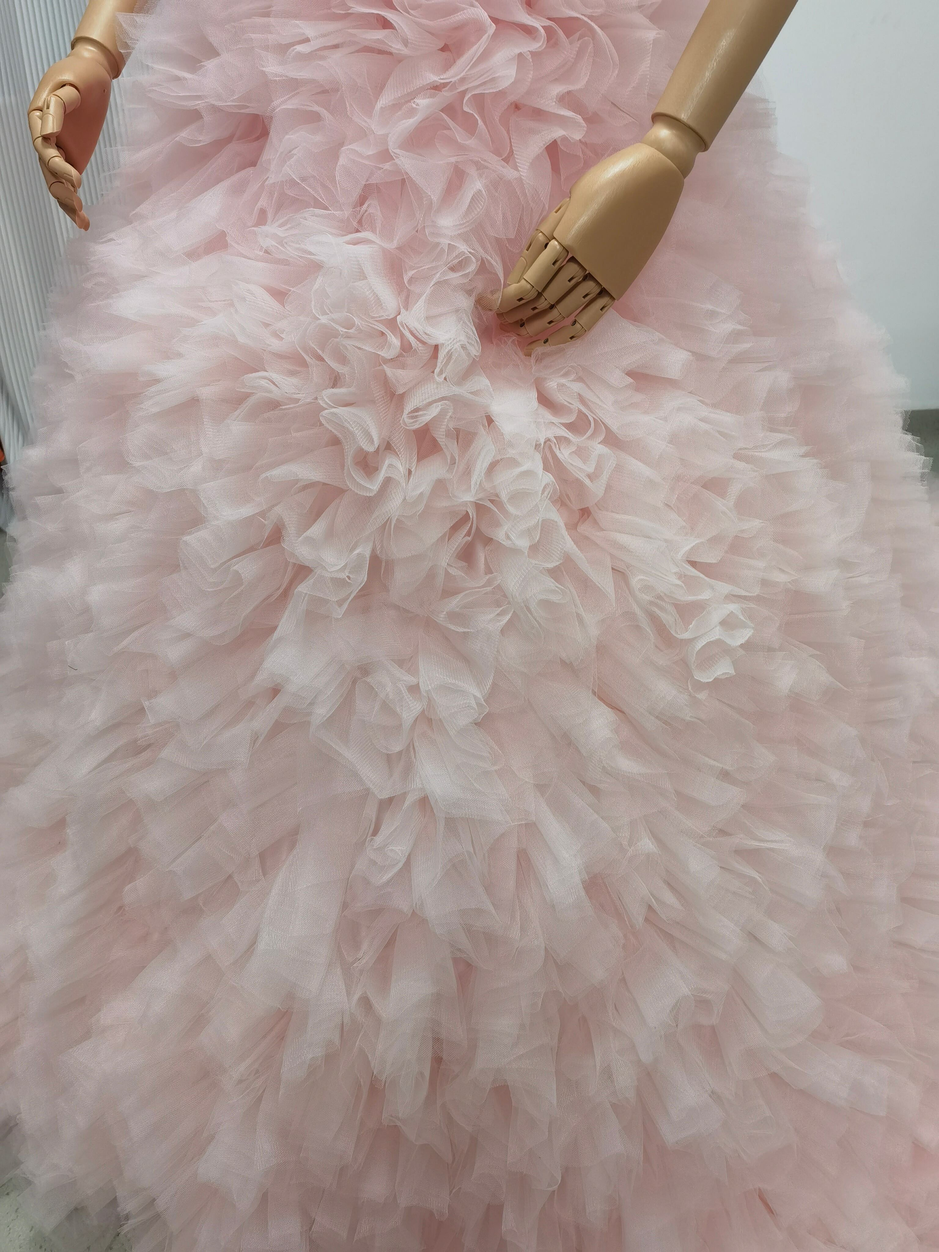 送料無料!美品! ピンクカラードレス ソフトチュール 重ねたチュールスカート/二次会/挙式/前撮り/結婚式