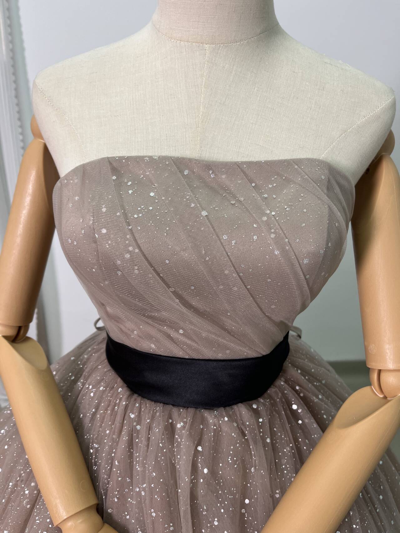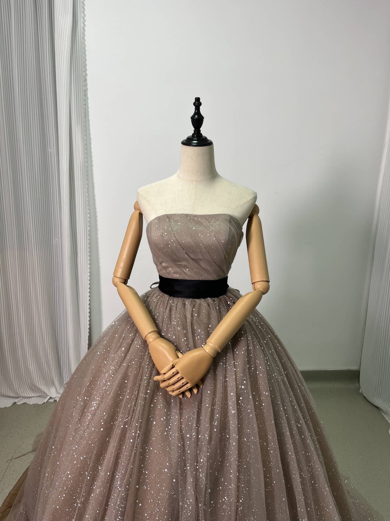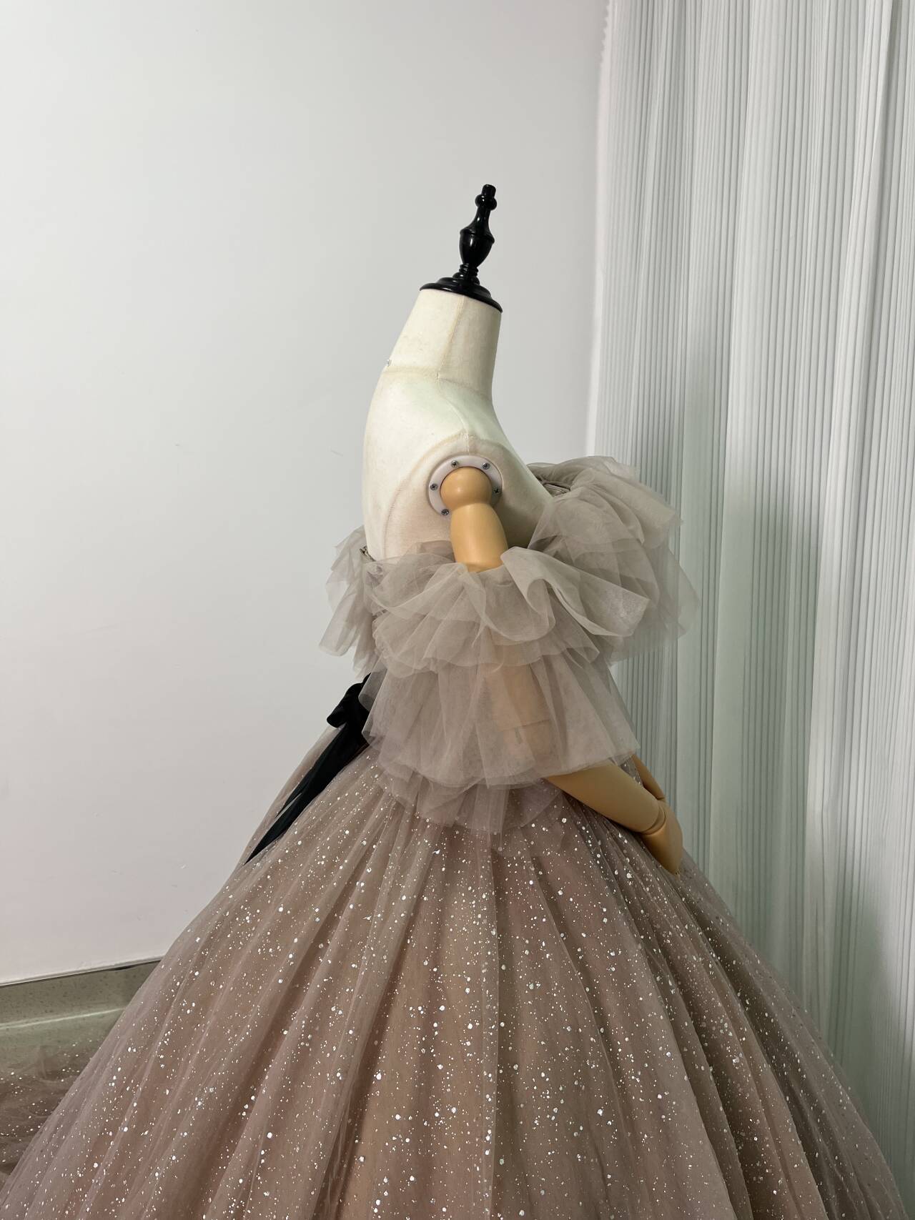 大好評中!取り外しオフショルダー キラキラチュール カラードレス 編み上げ 華やかなトレーン /結婚式披露