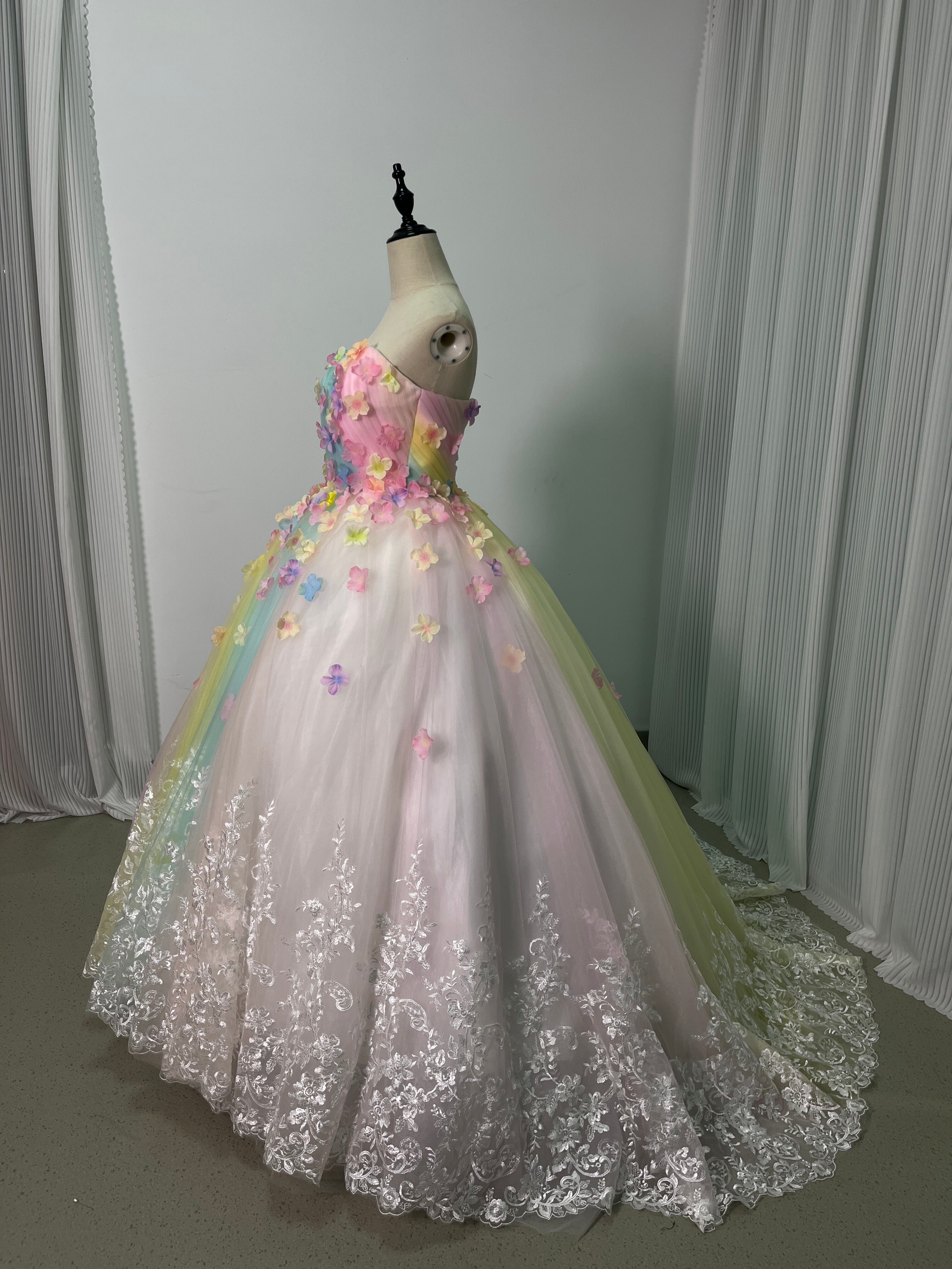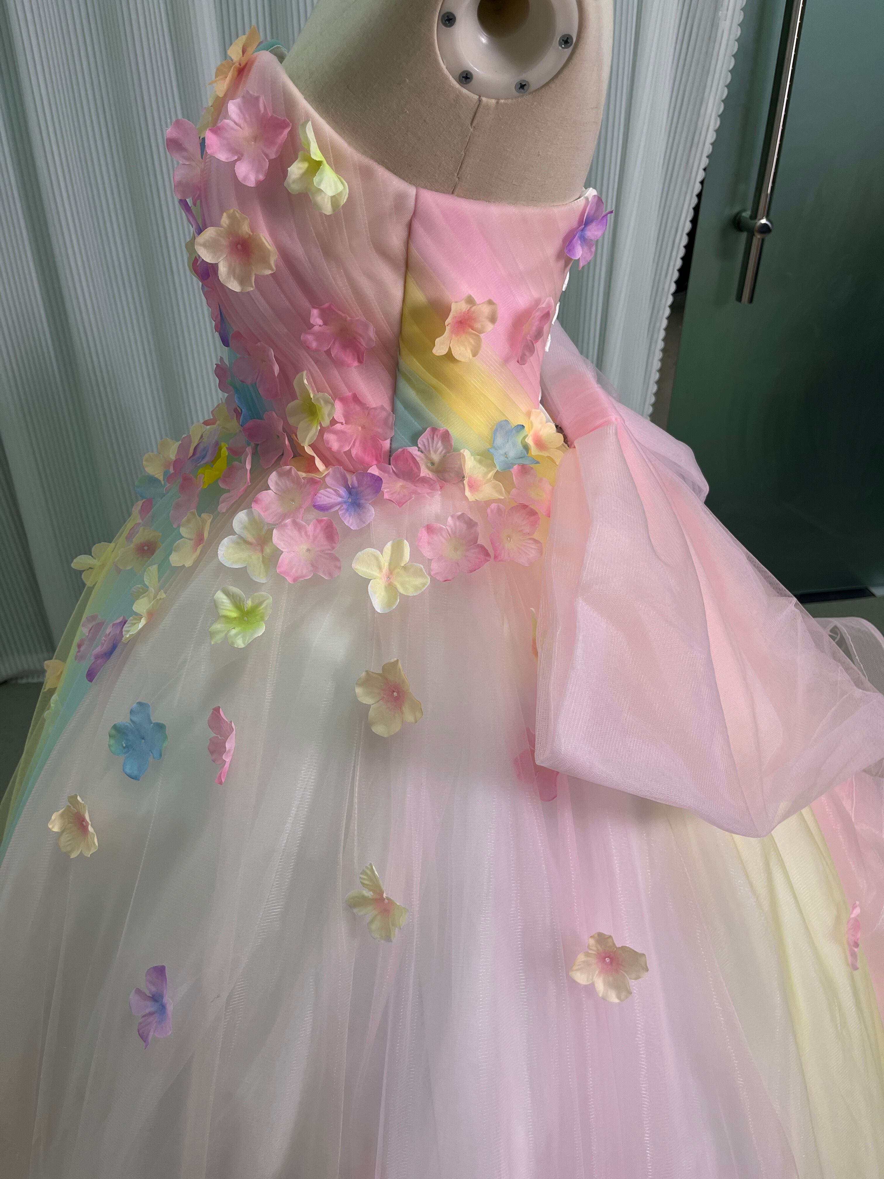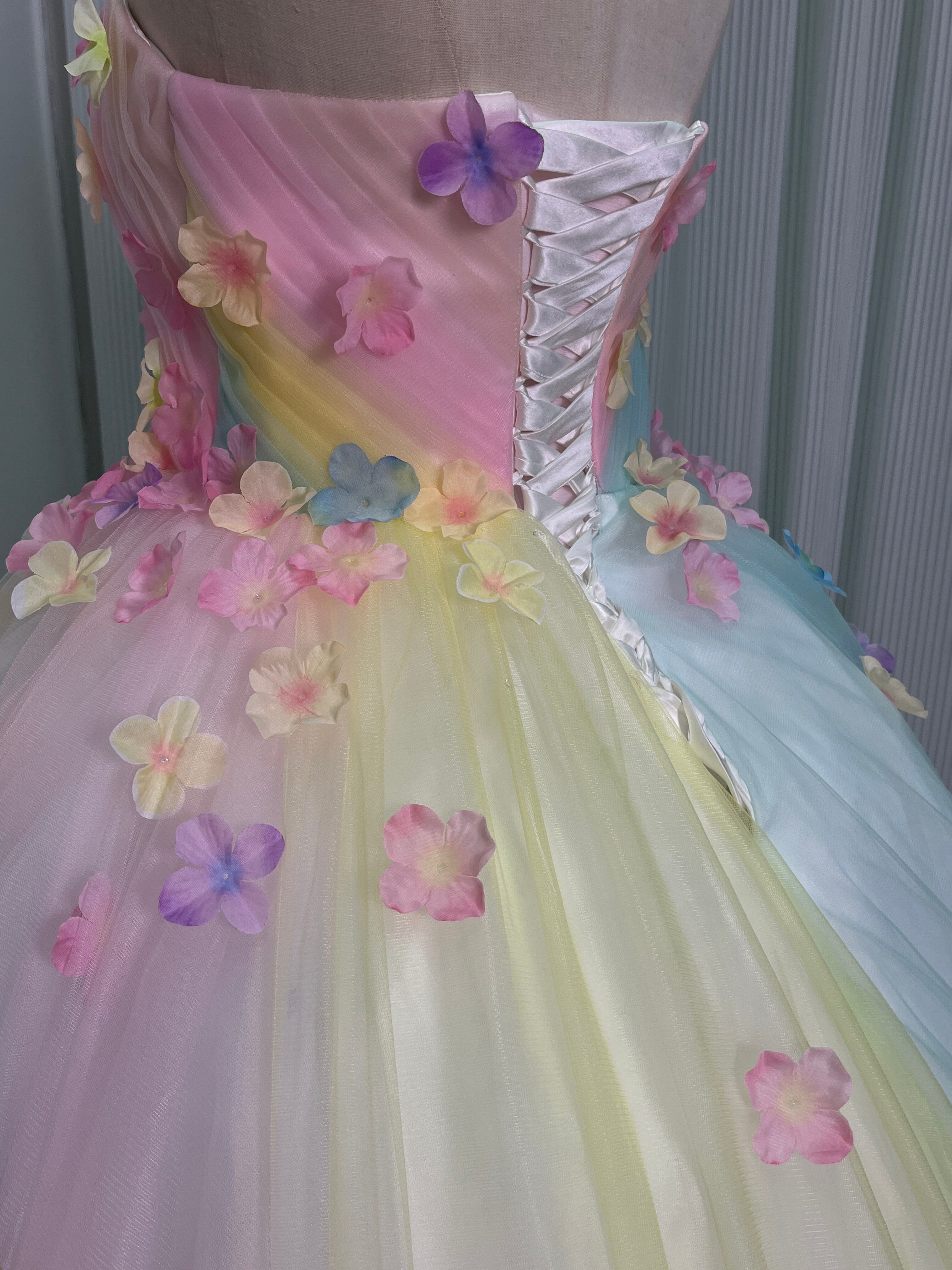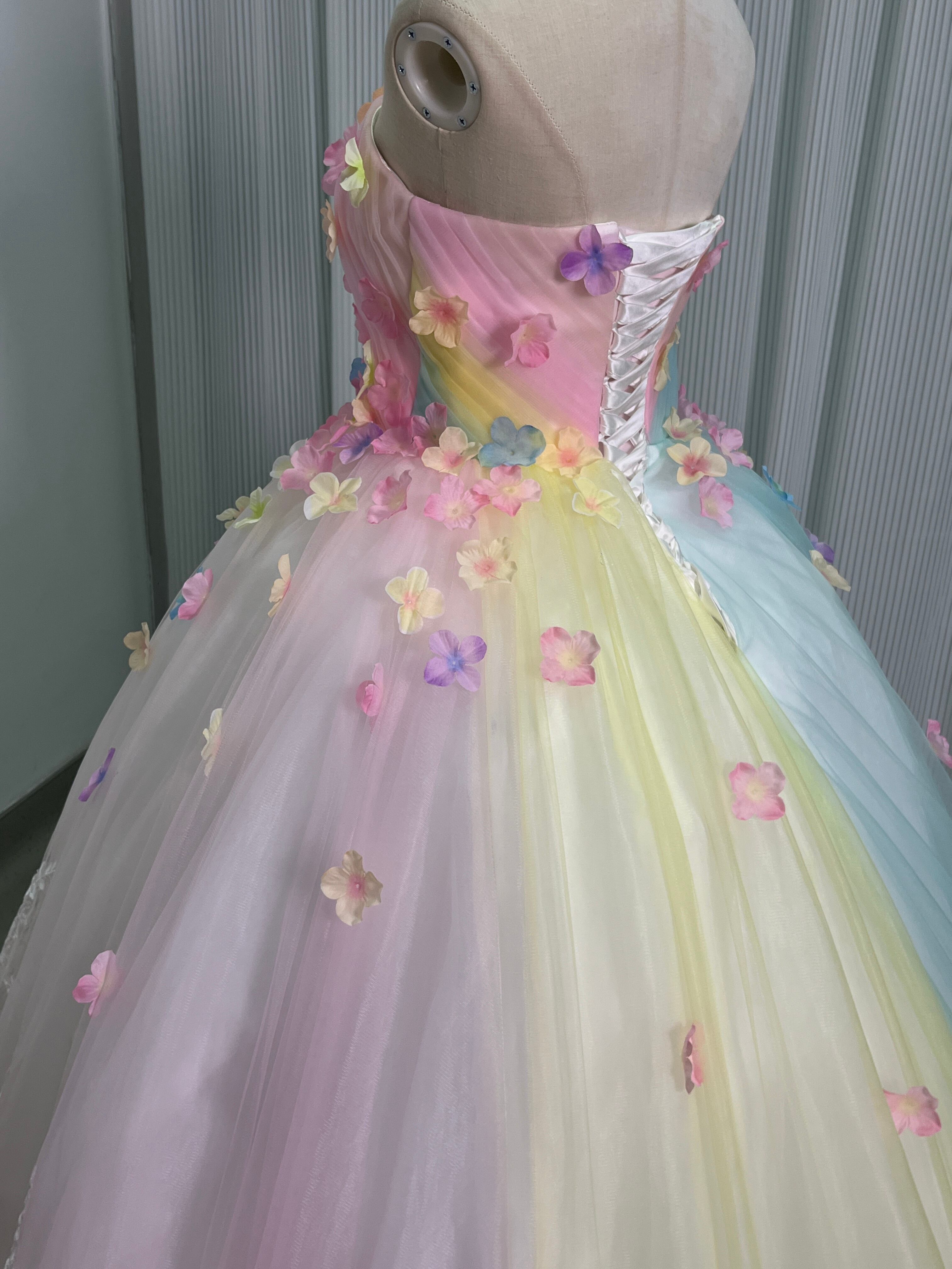 大好評中!レインボー ベアトップ カラードレス ふっくら柔らかなバックリボン プリンセスライン/結婚式披露