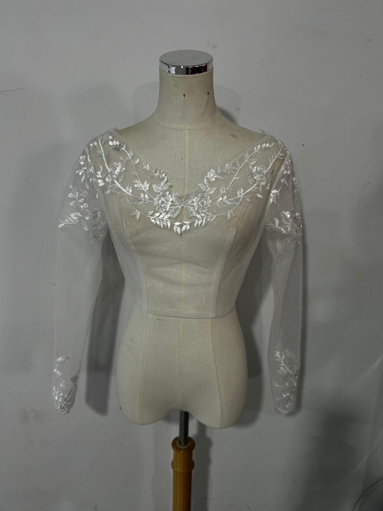 ウエディングドレス ボレロ 3D立体レース刺繍 Vネックドレス 長袖  結婚式/披露宴