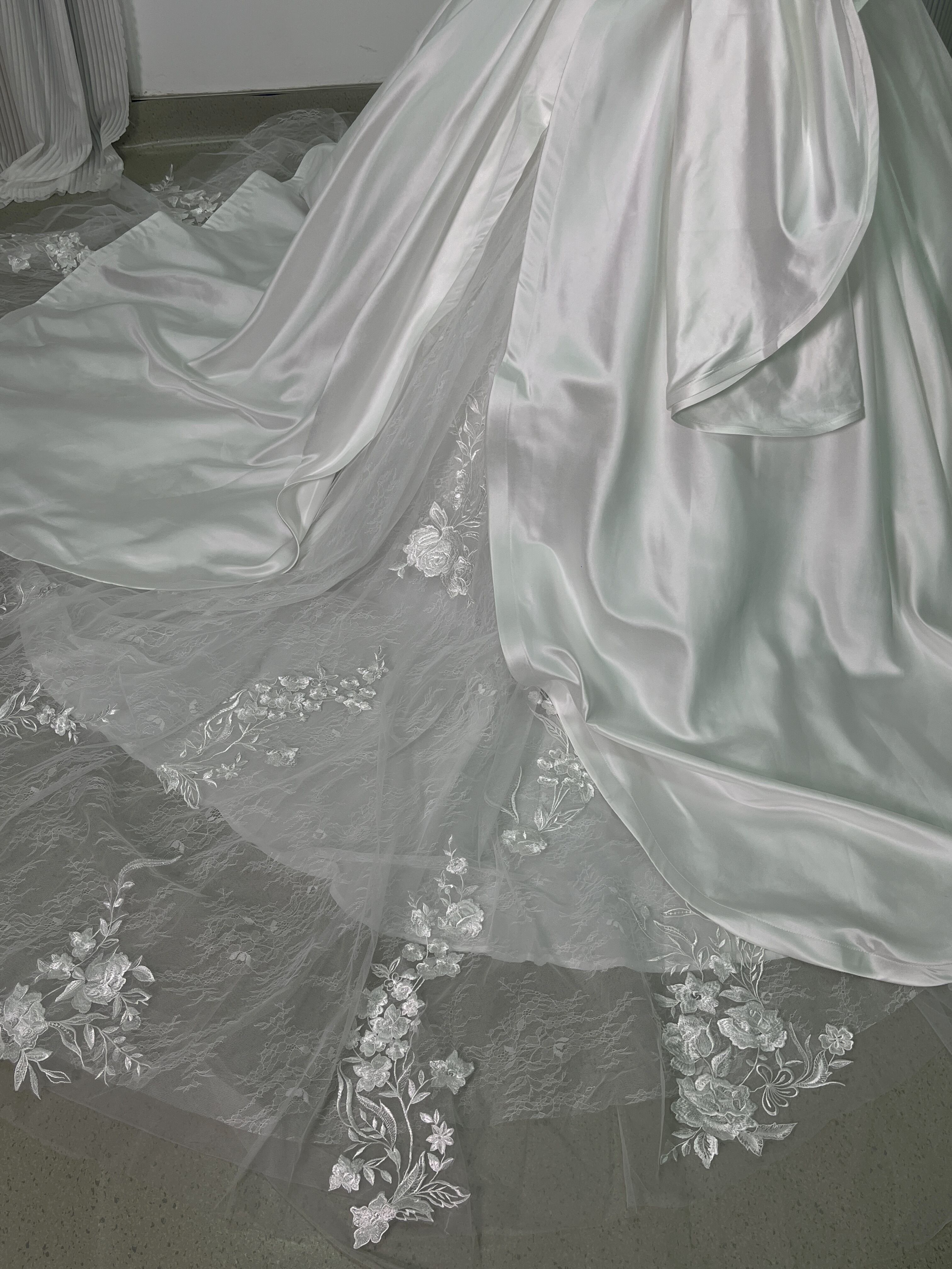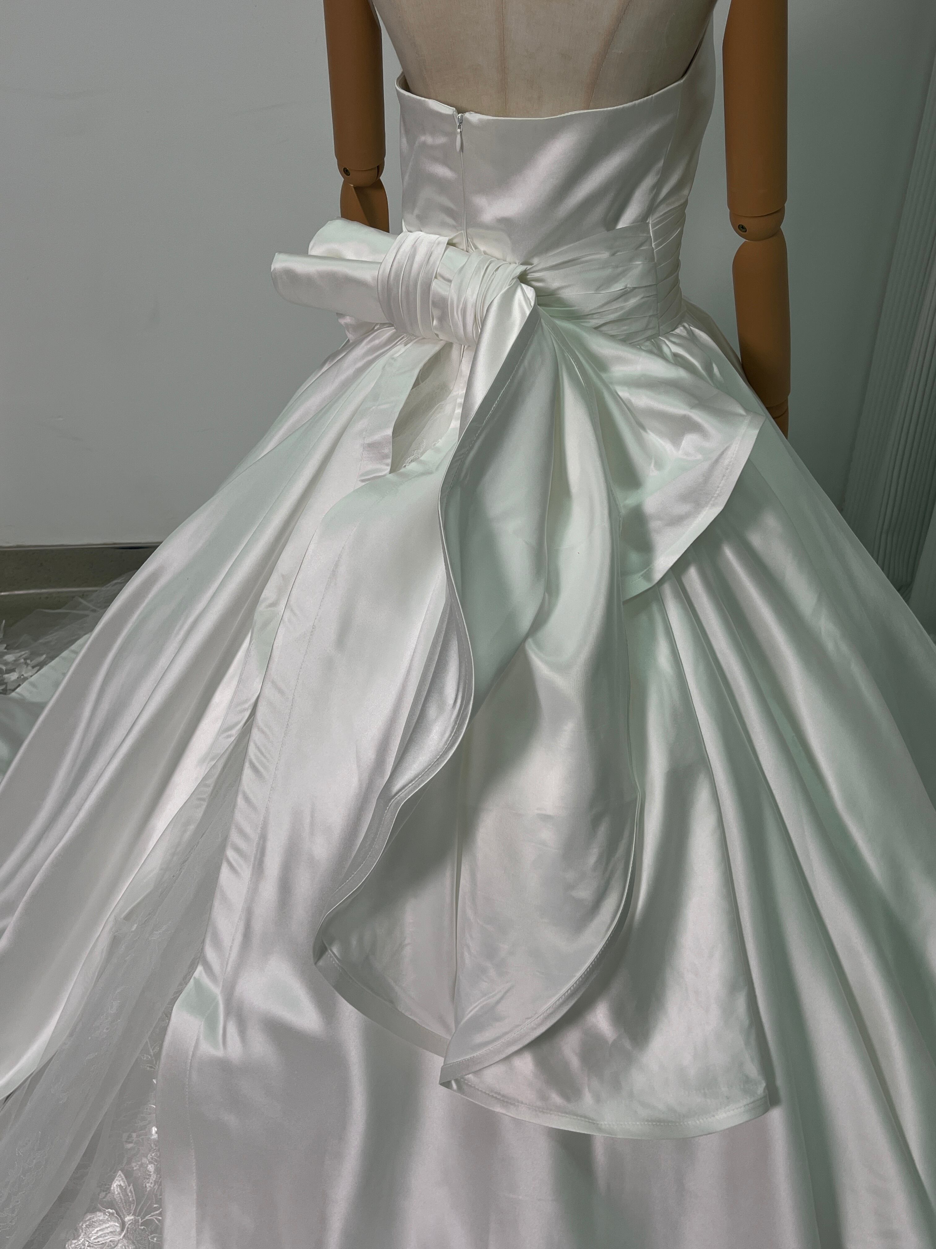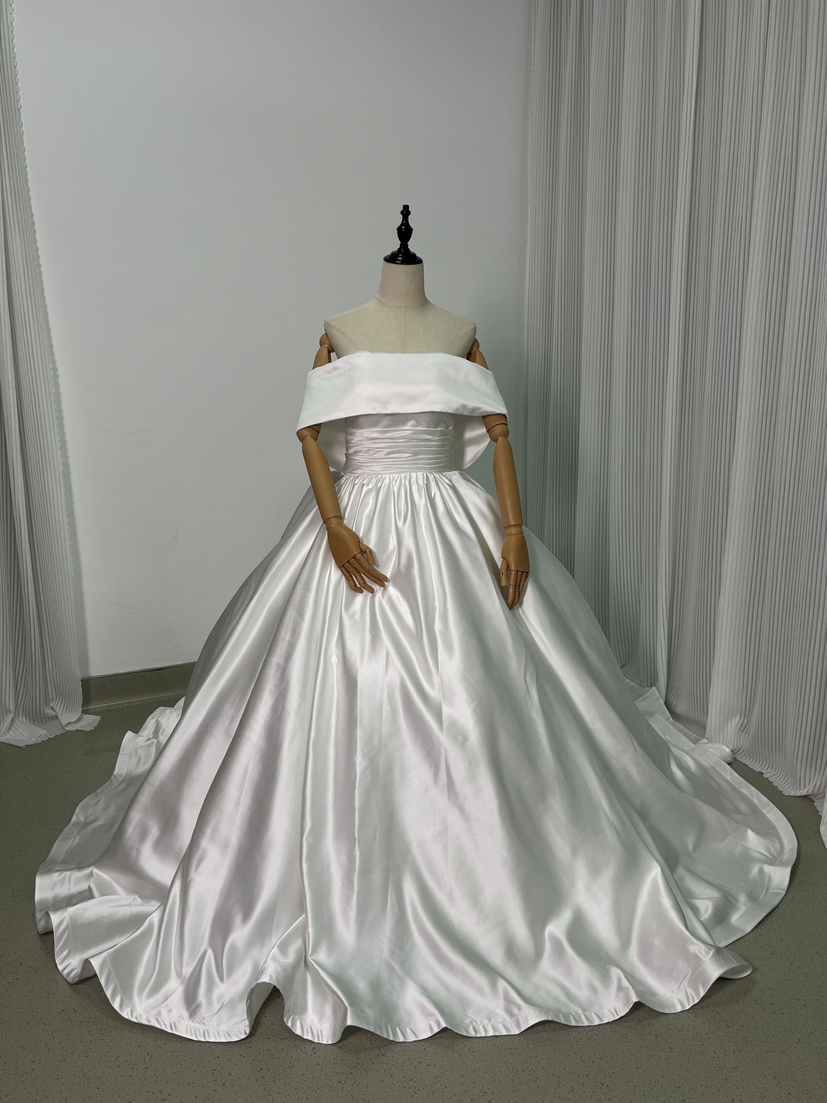 送料無料! 高品質!オフショルダー ウエディングドレス華やかなトレーン ふっくら柔らかなバックリボン 前撮り 結婚式