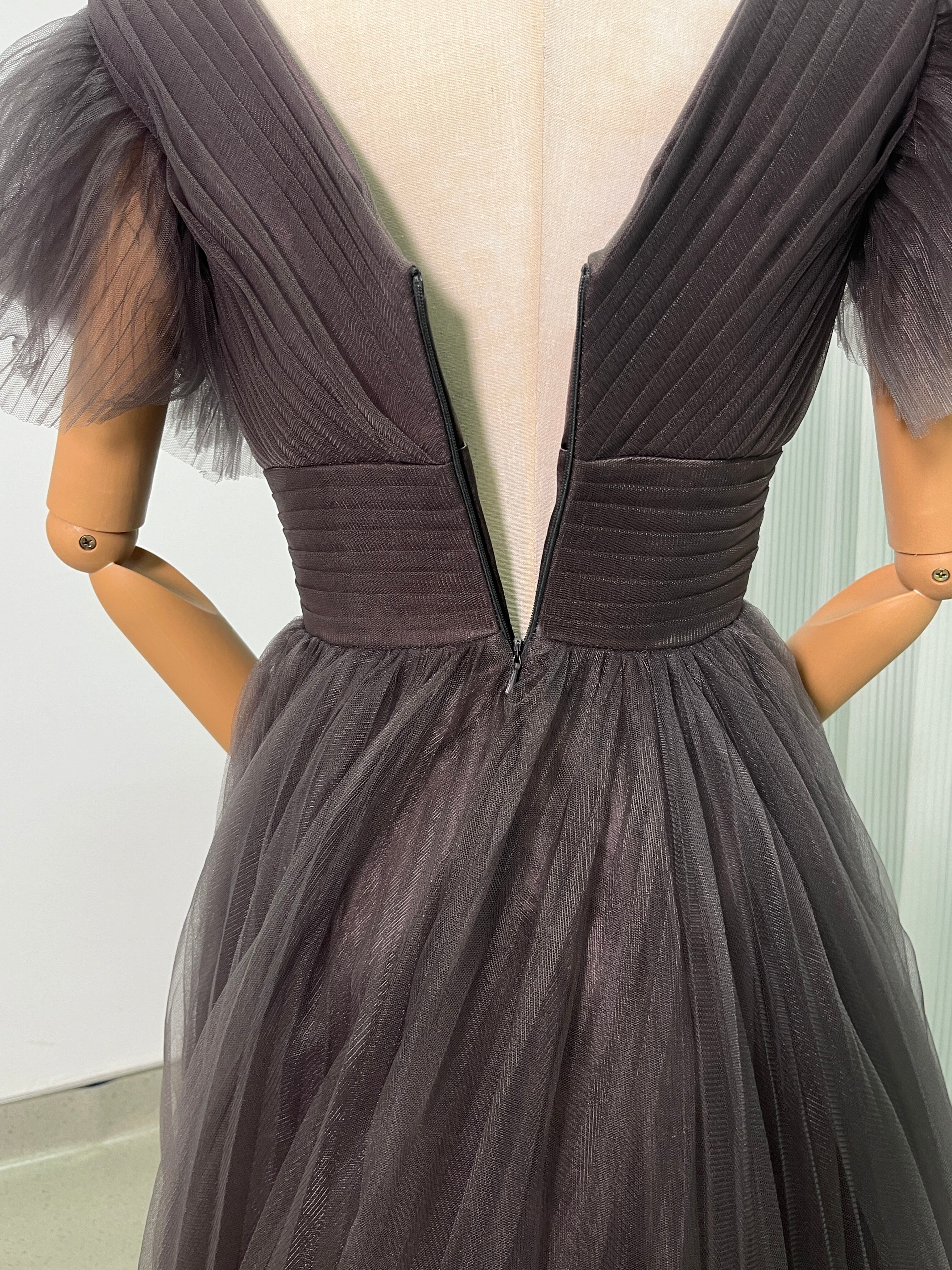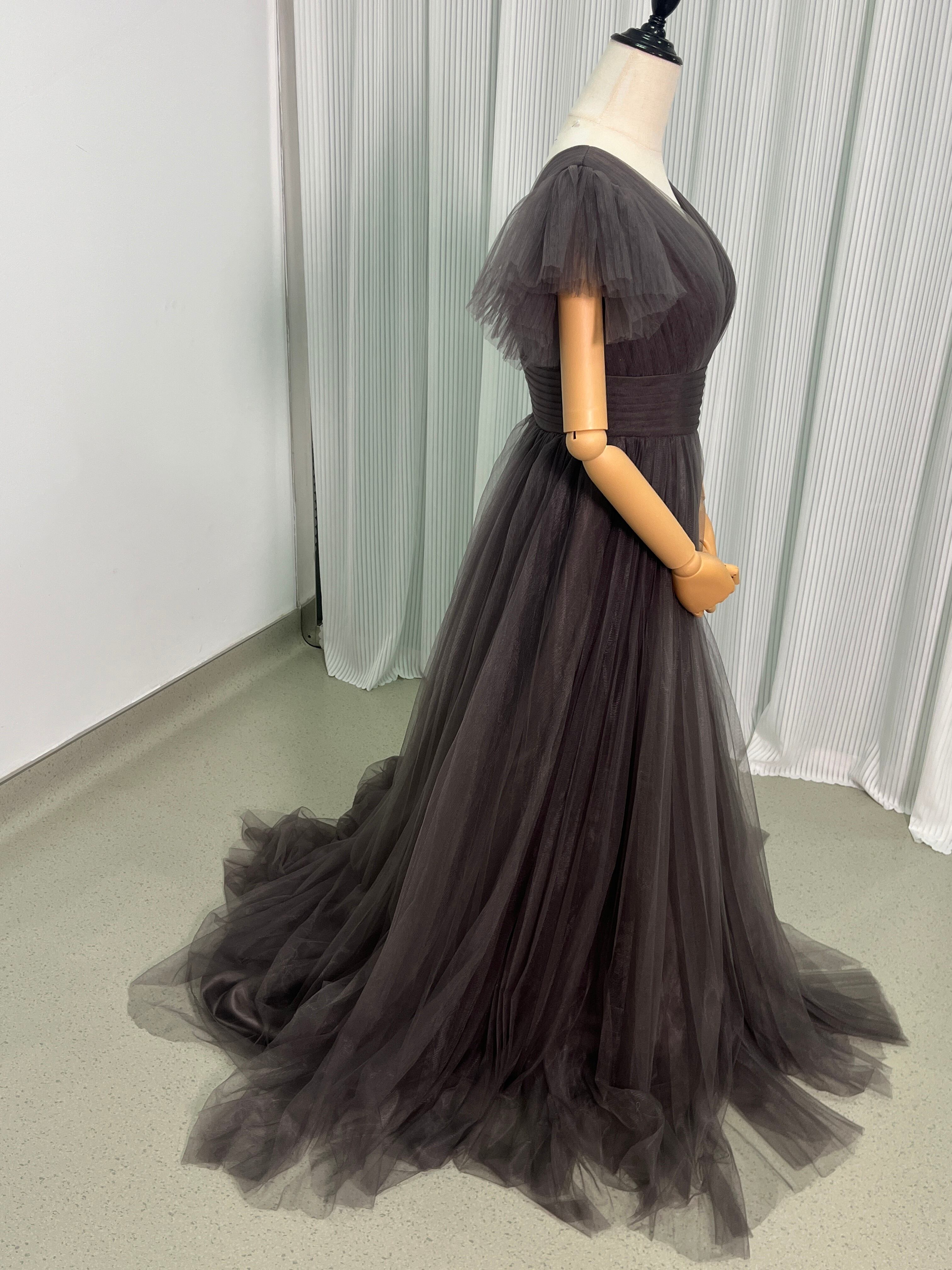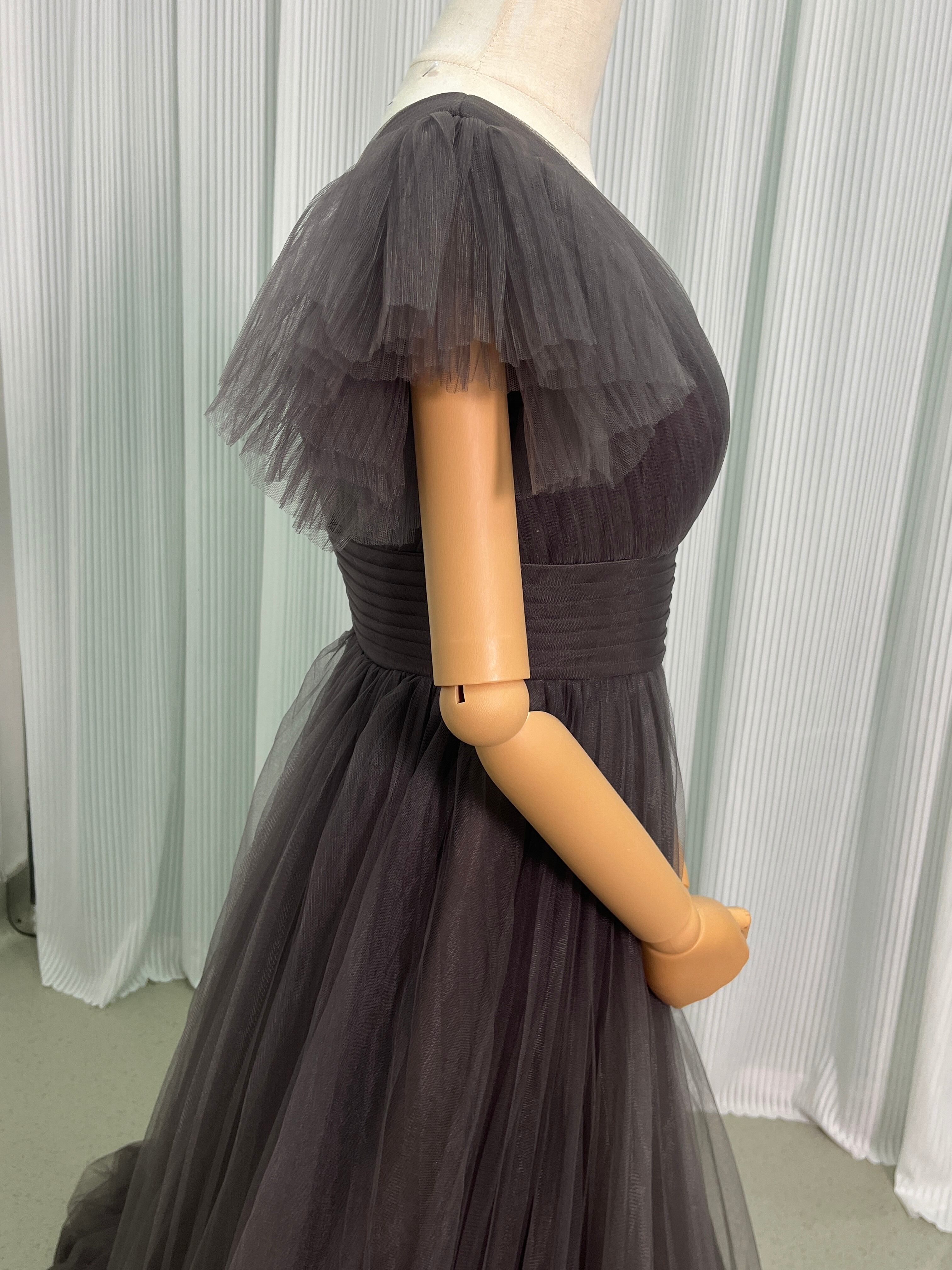 大好評中!Vネック グレー ソフトチュール カラードレス /結婚式披露