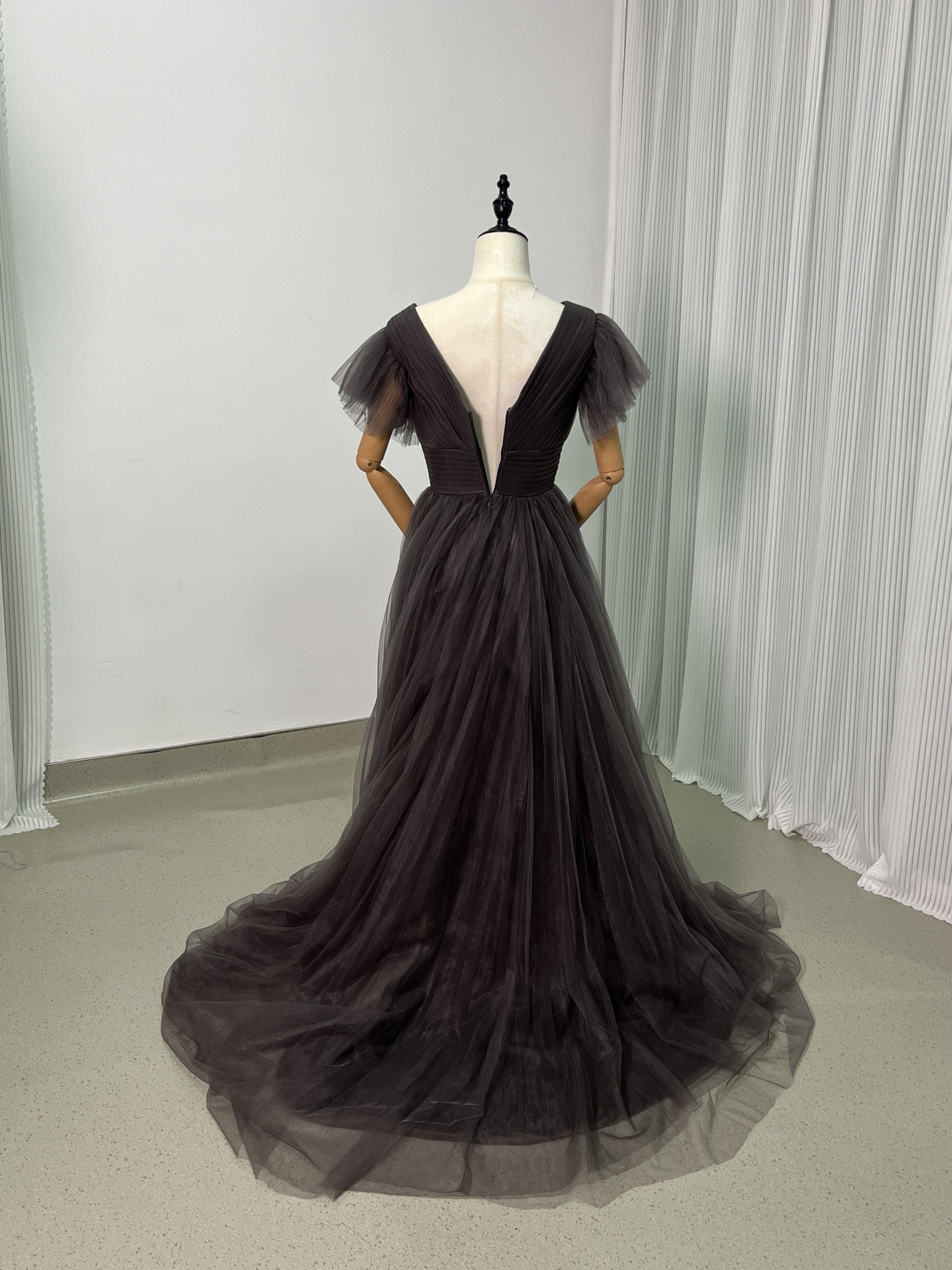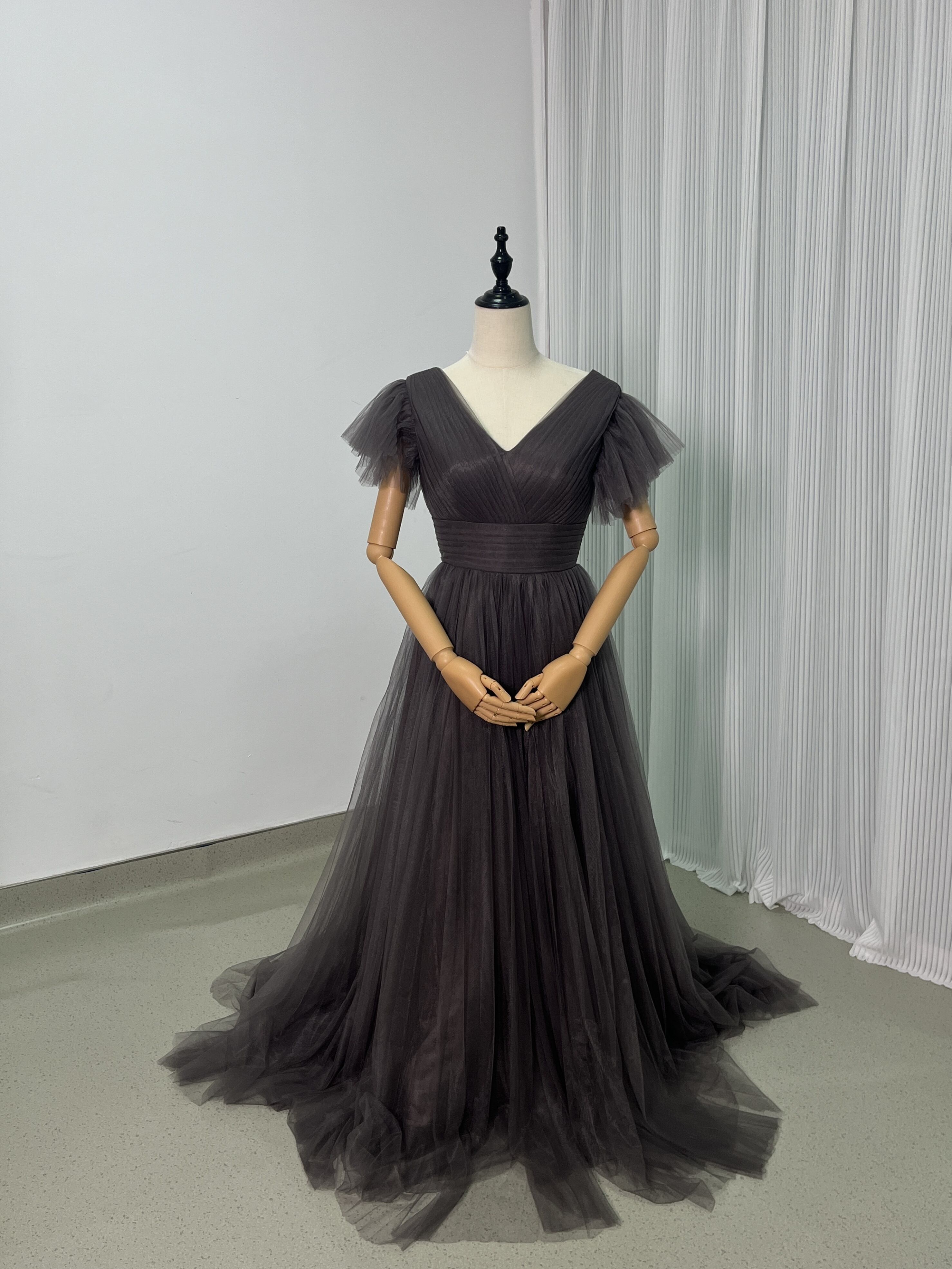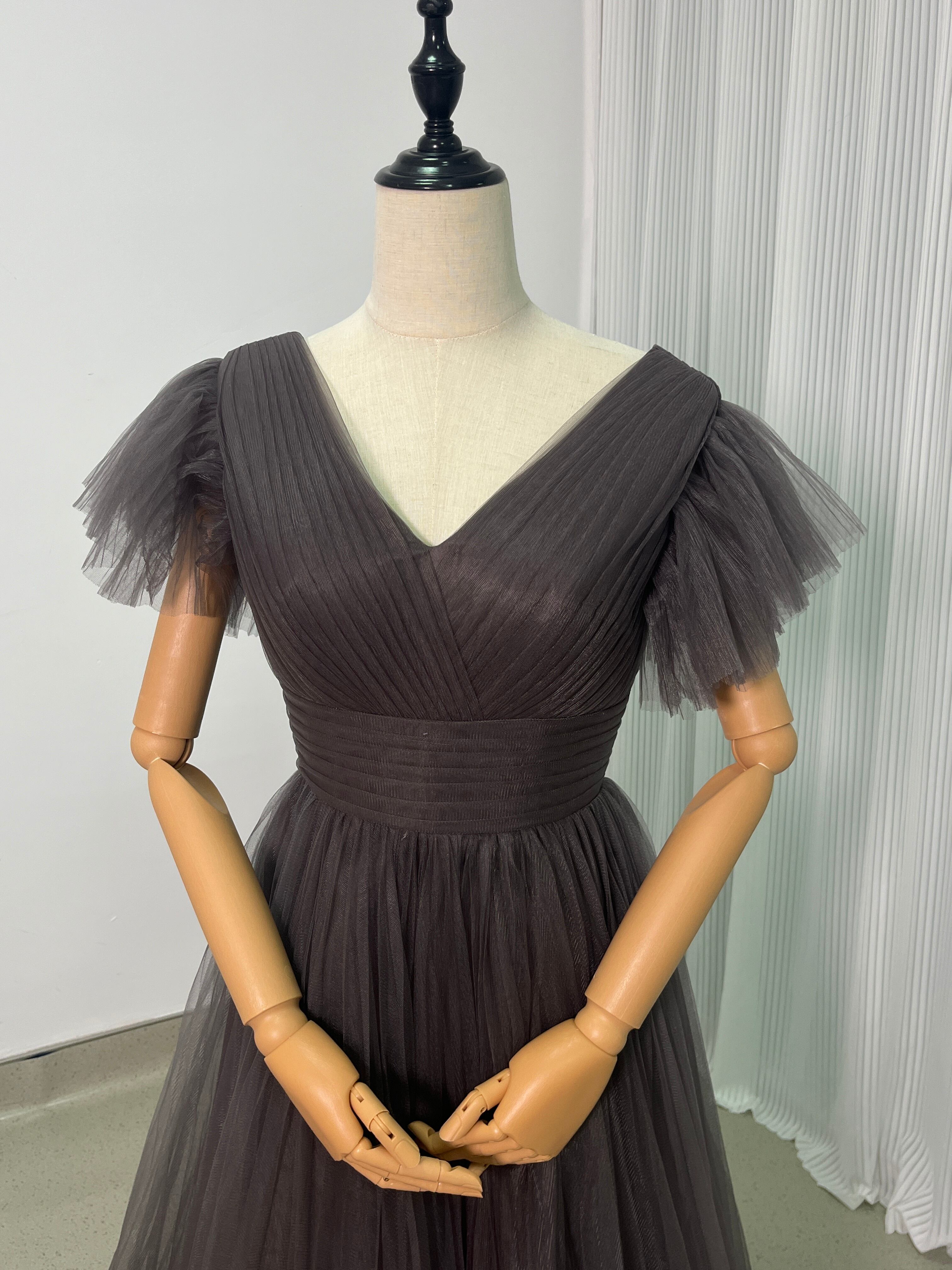 大好評中!Vネック グレー ソフトチュール カラードレス /結婚式披露