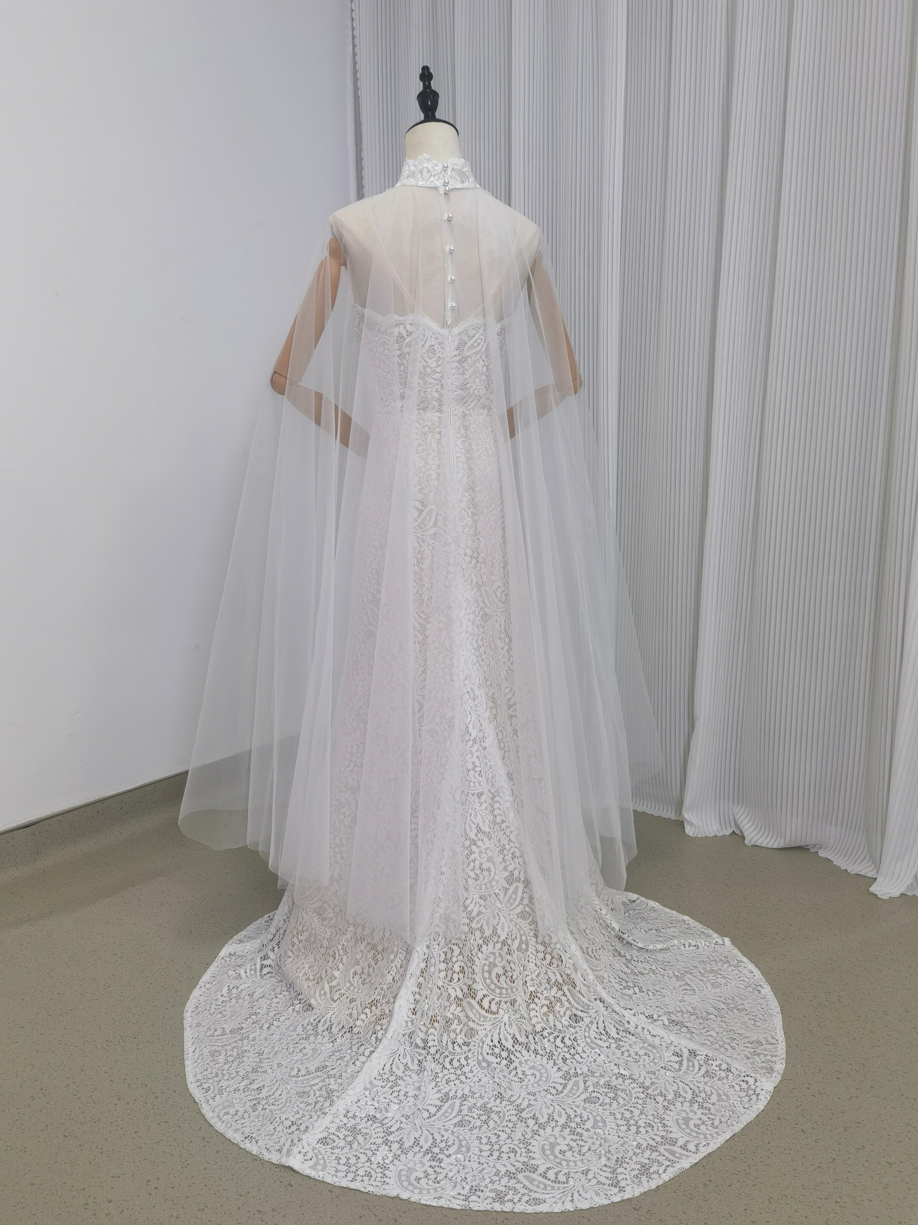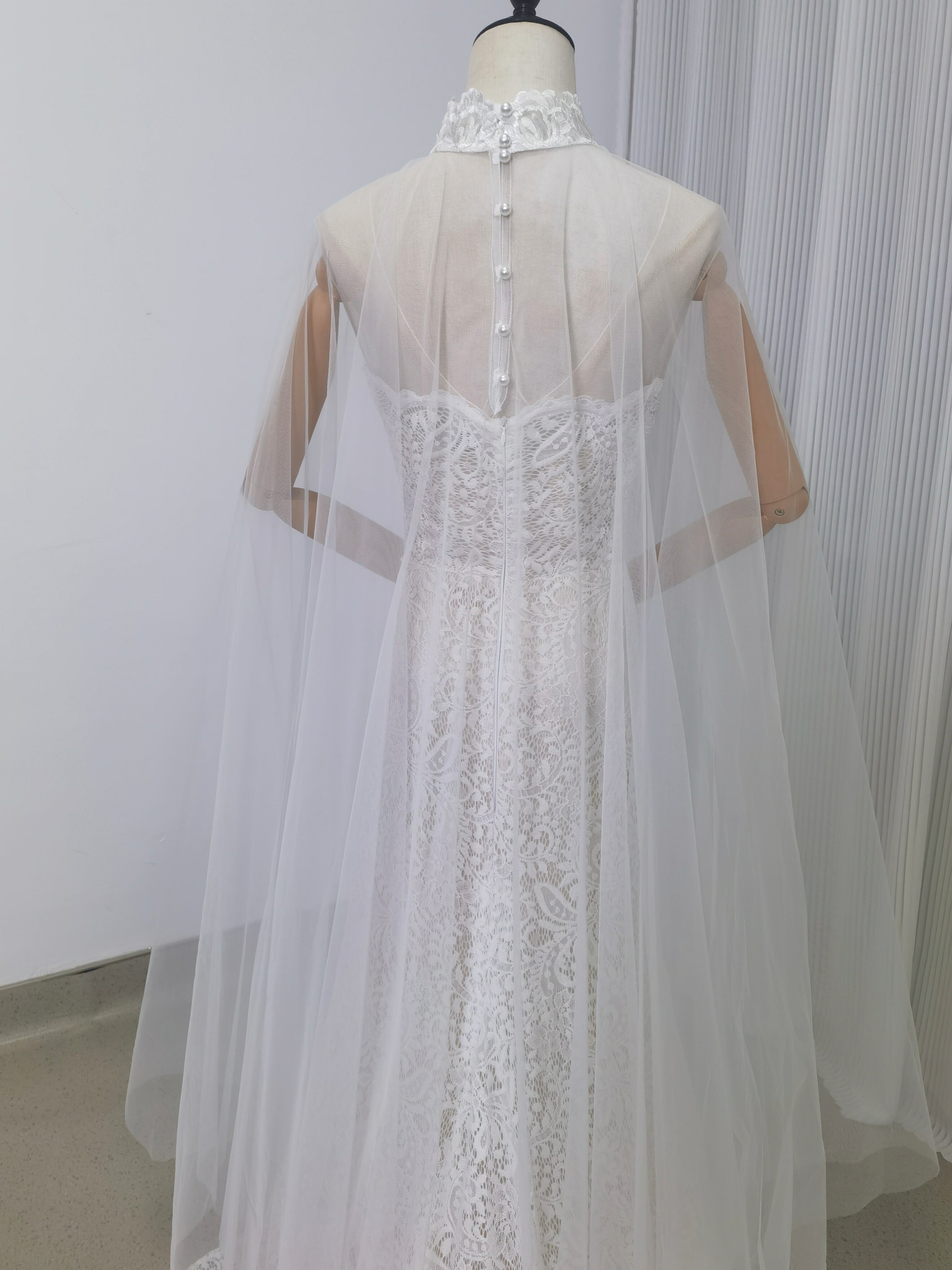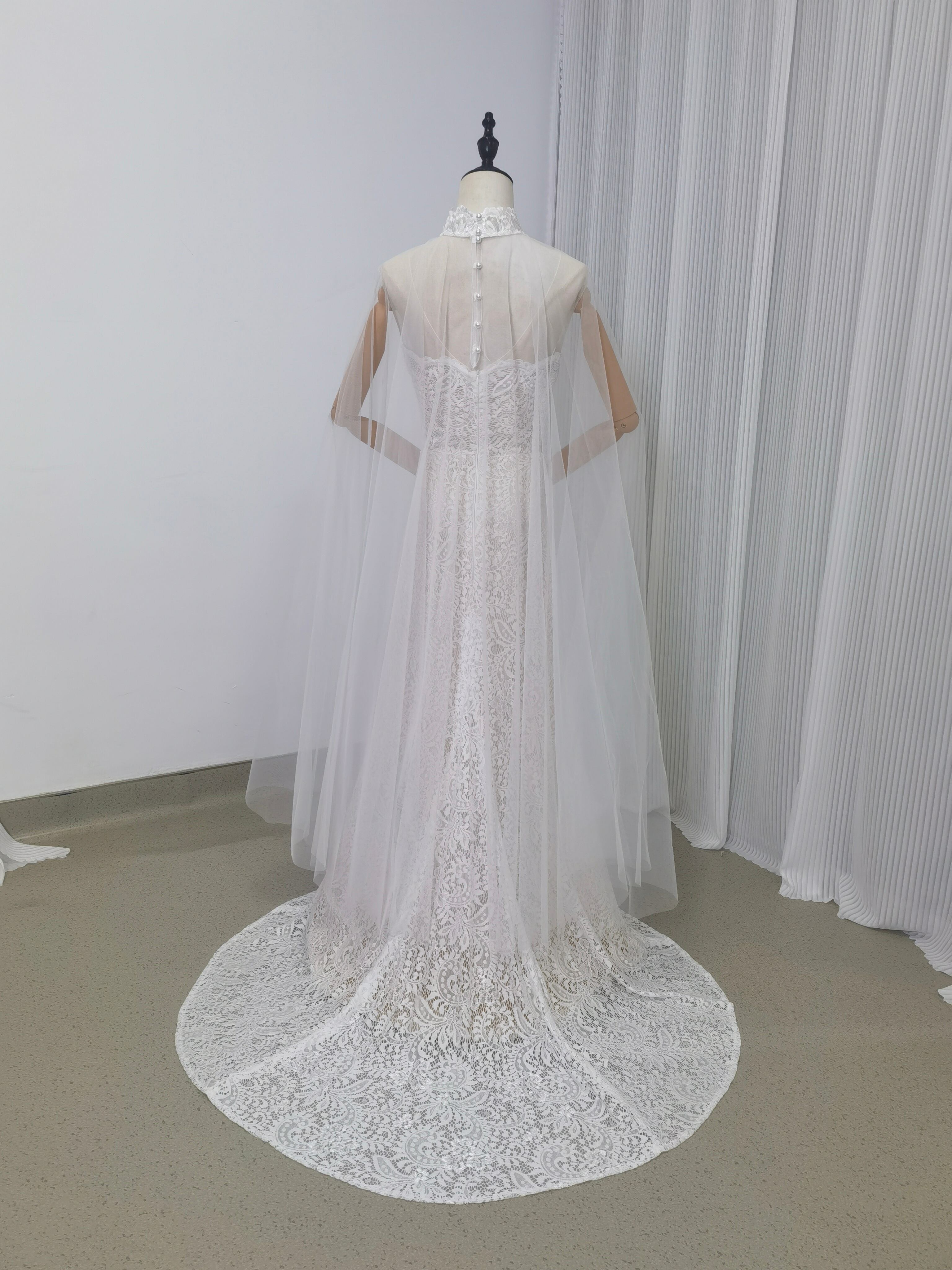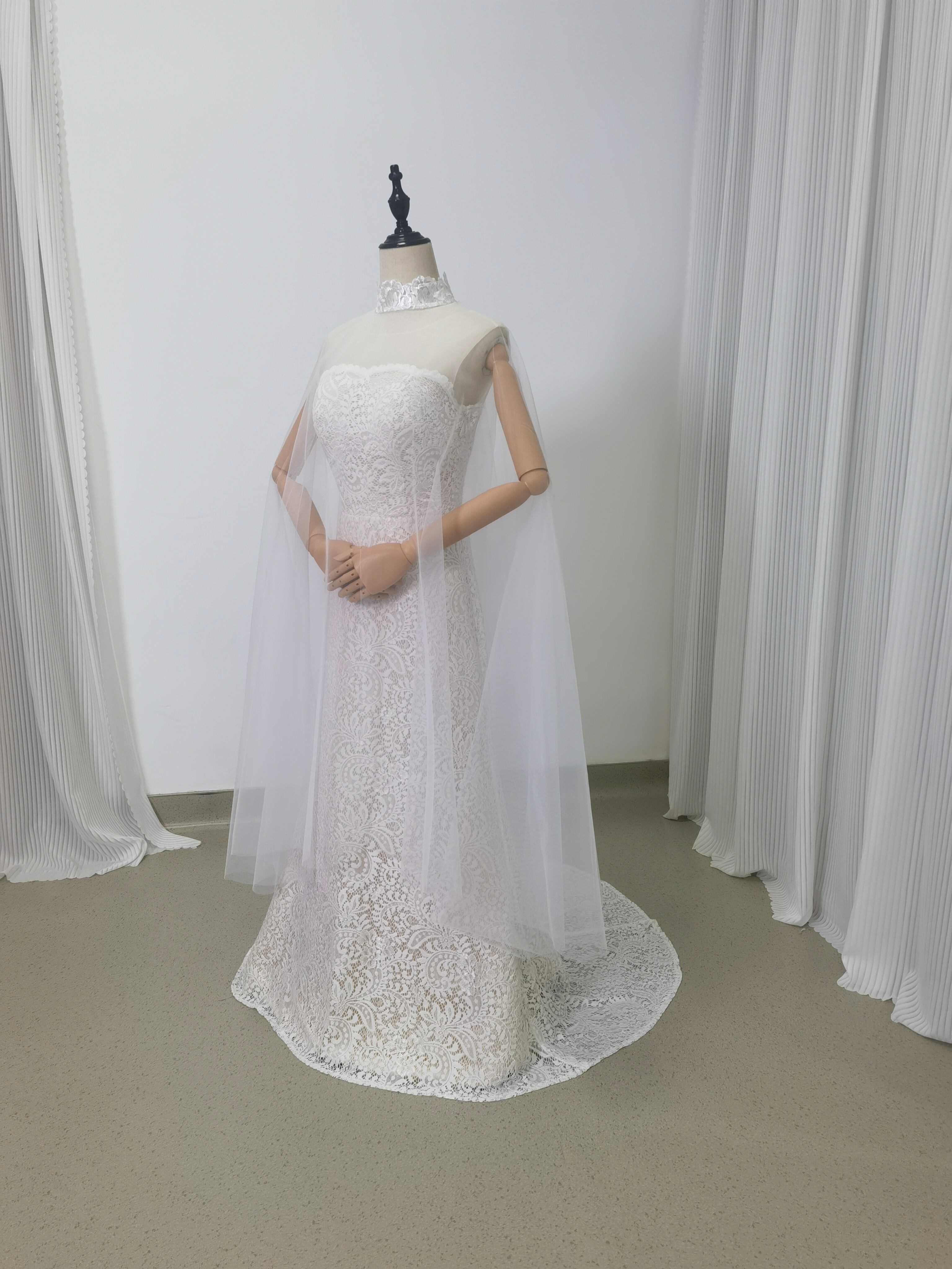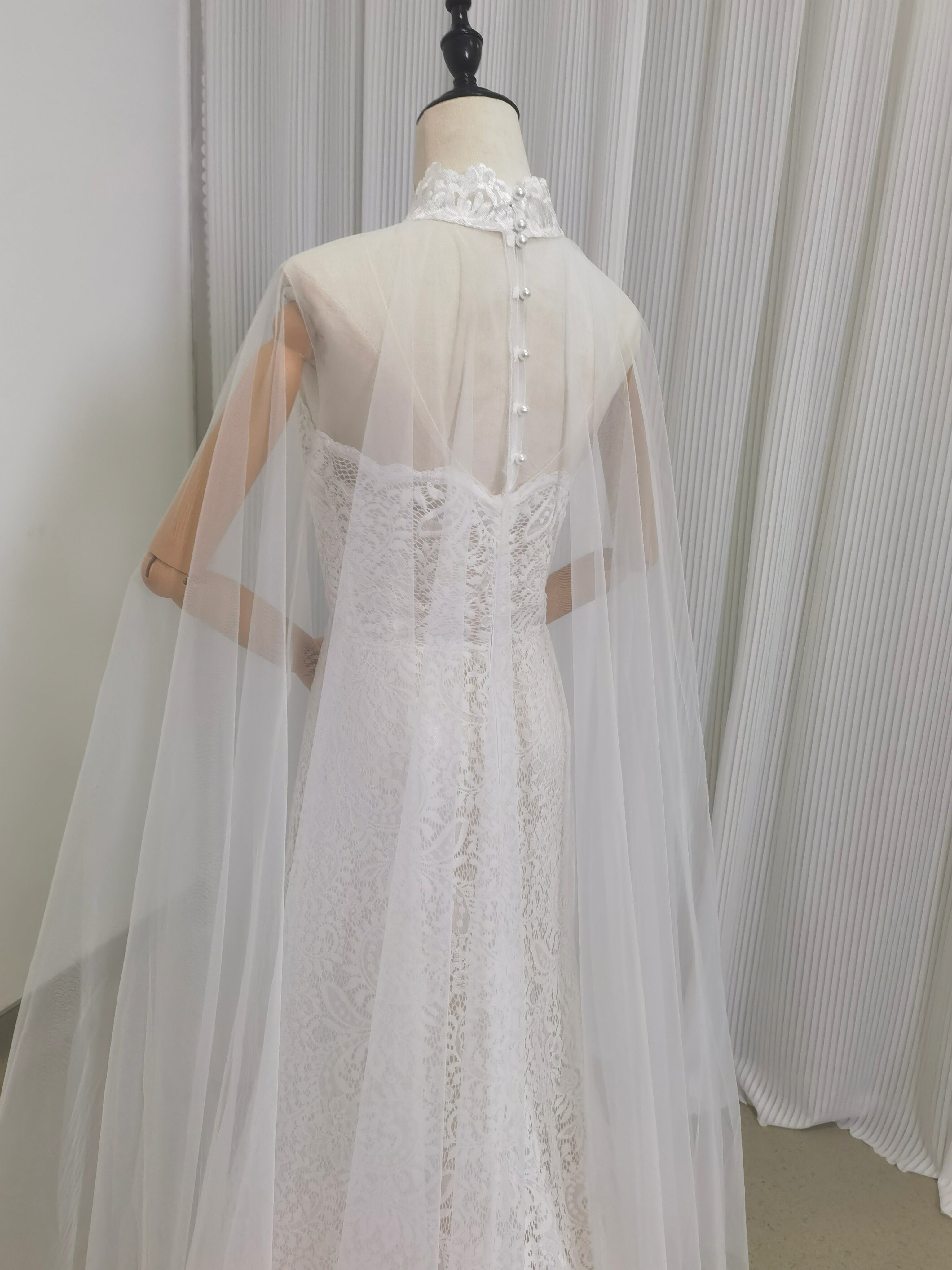 送料無料!雅やか ウエディングドレス パーティードレス ソフトマーメイドライン+ ソフトチュール ポンチョ 結婚式/披露宴/