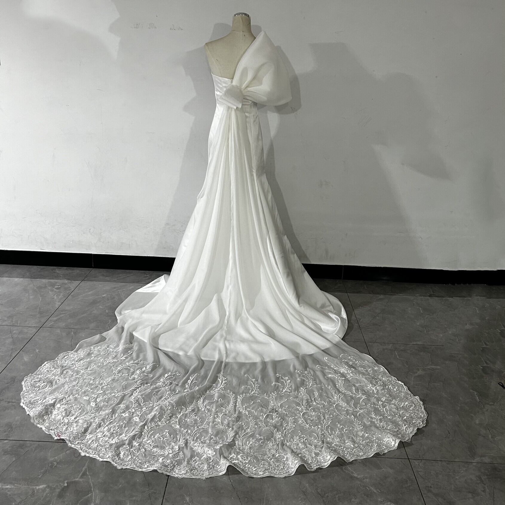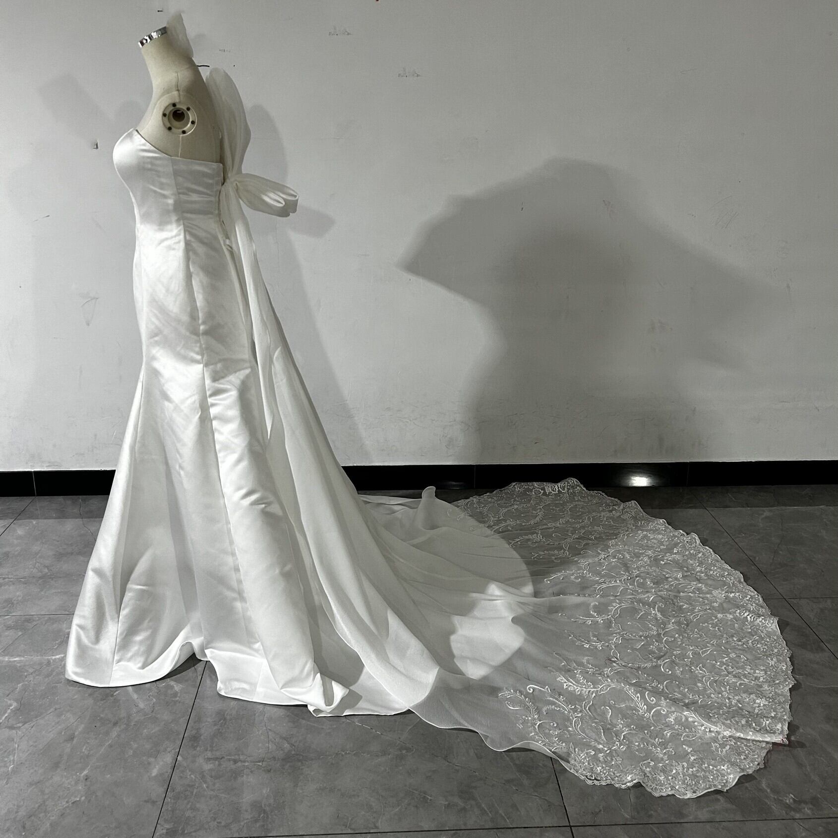 送料無料!高品質! ベアトップ ウエディングドレス 豪華 ふっくら柔らかなバックリボン 華やかなトレーン結婚式