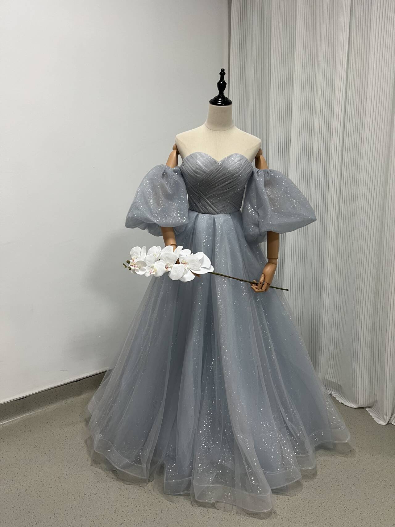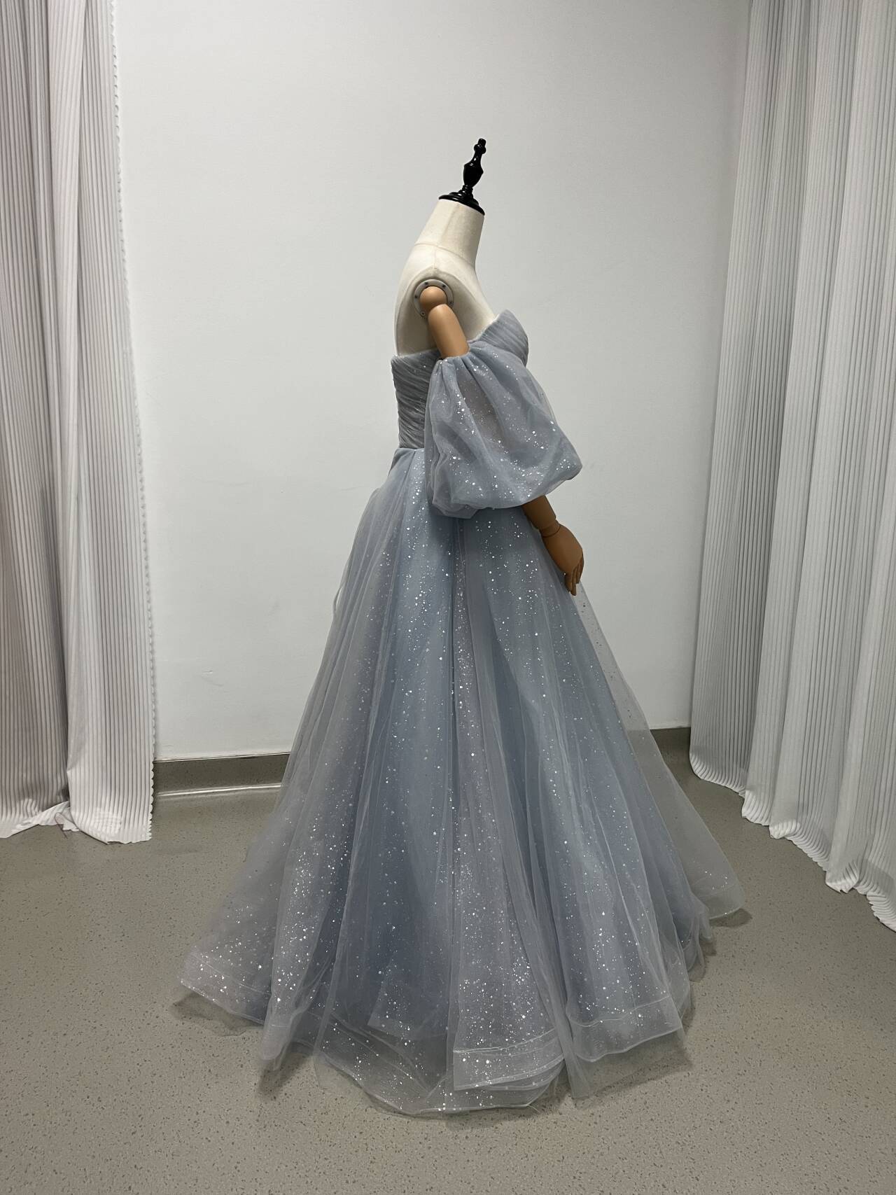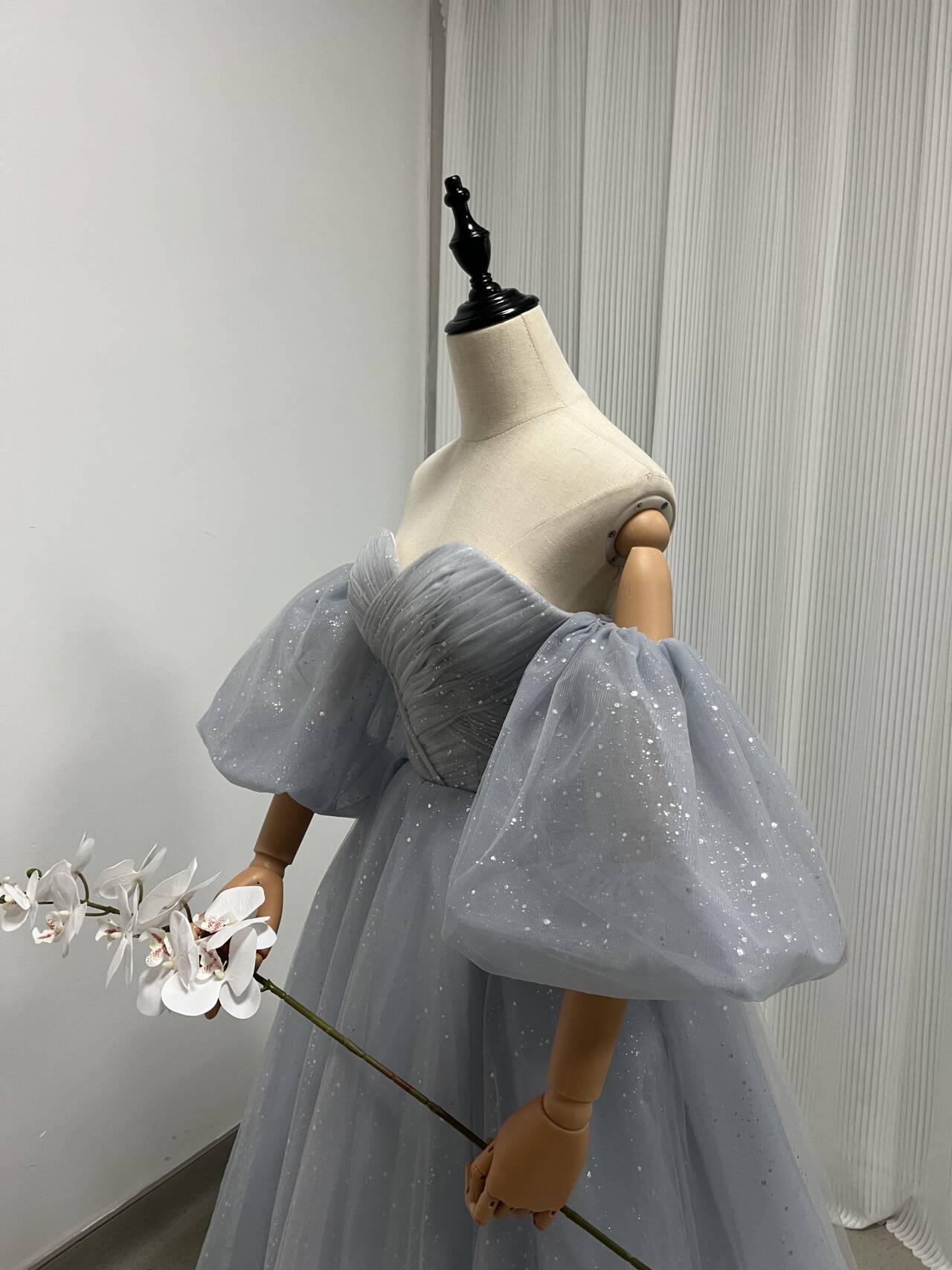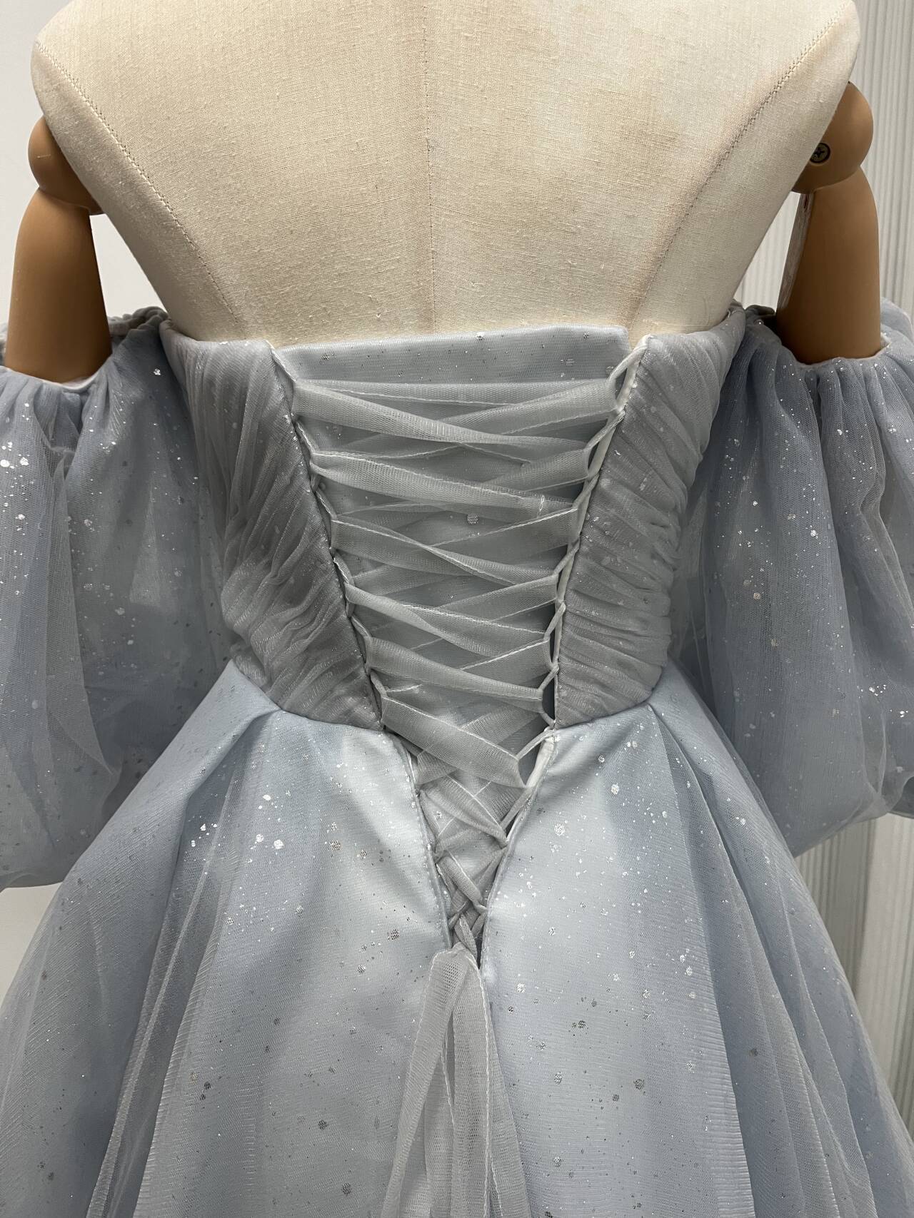 ミックス・マッチ ブルーグレー ベアトップ カラードレス キラキラチュール 取り外し 袖 /結婚式披露