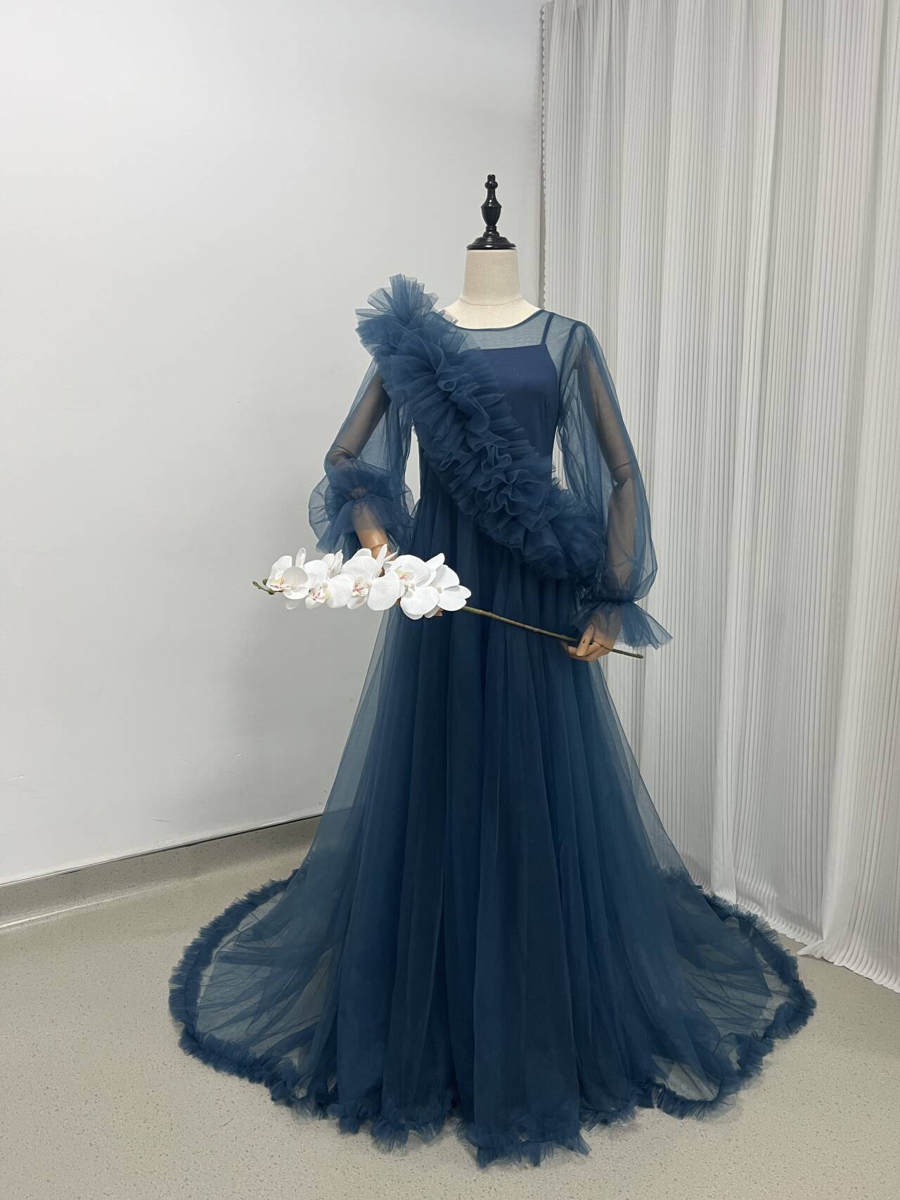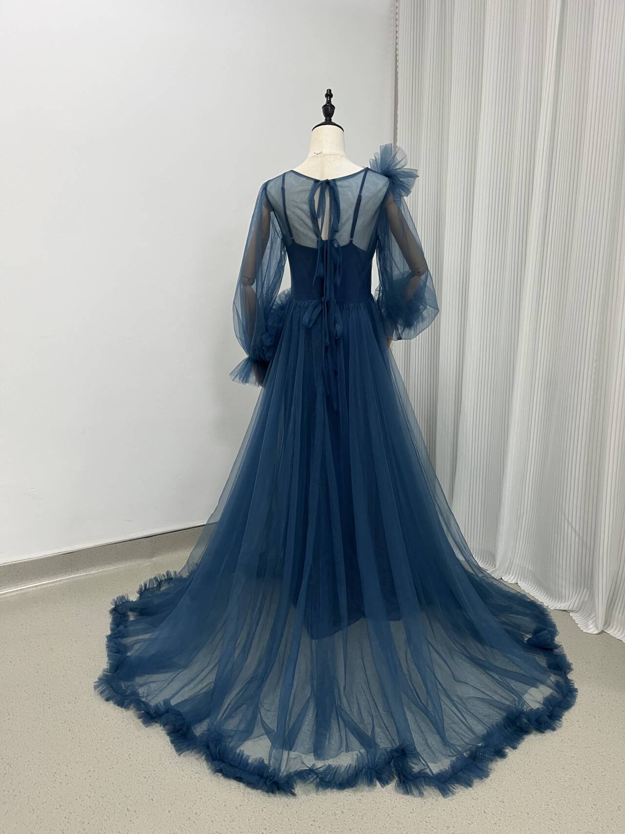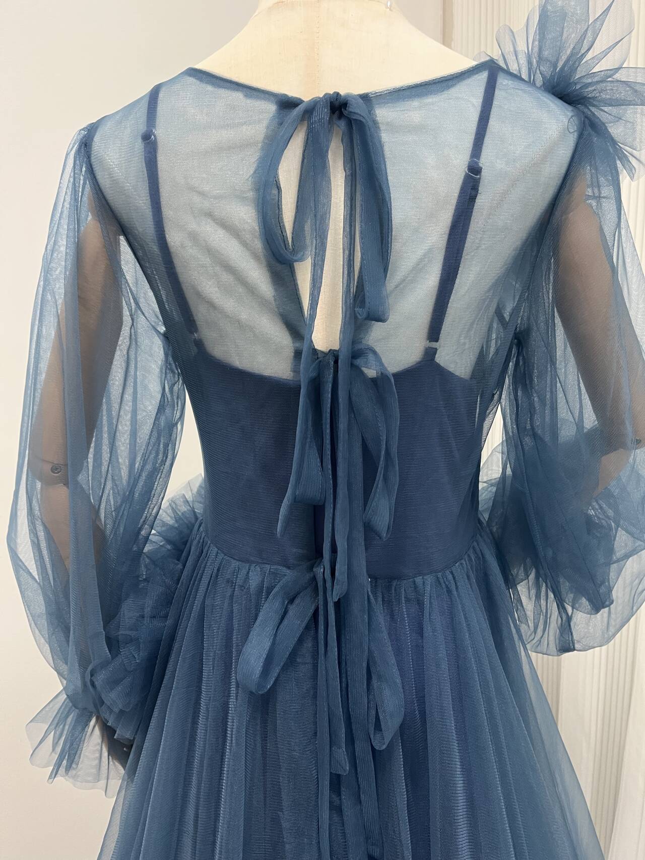 大好評中!ネイビー 2点セット カラードレス 編み上げ チュールドレス /結婚式披露