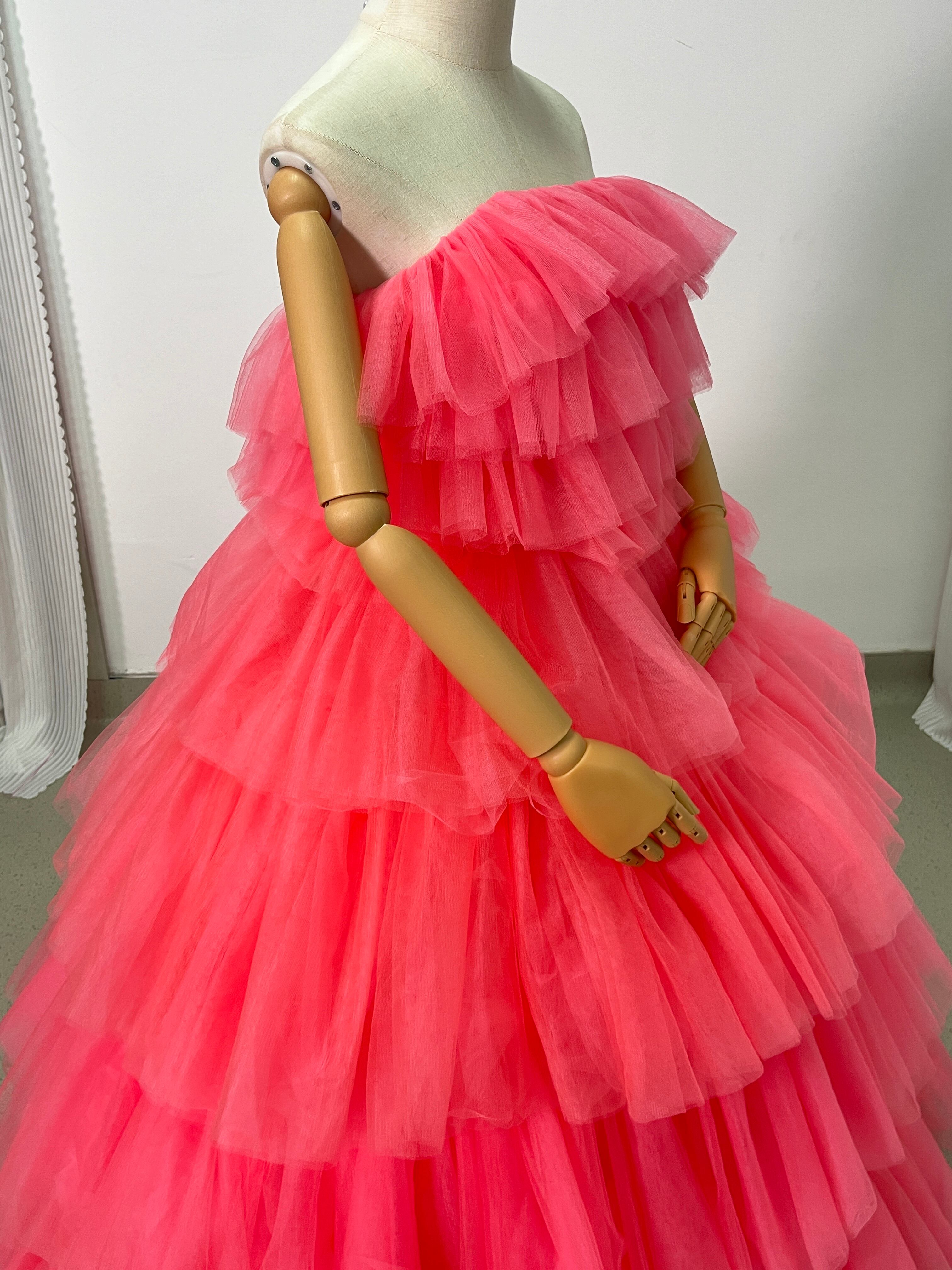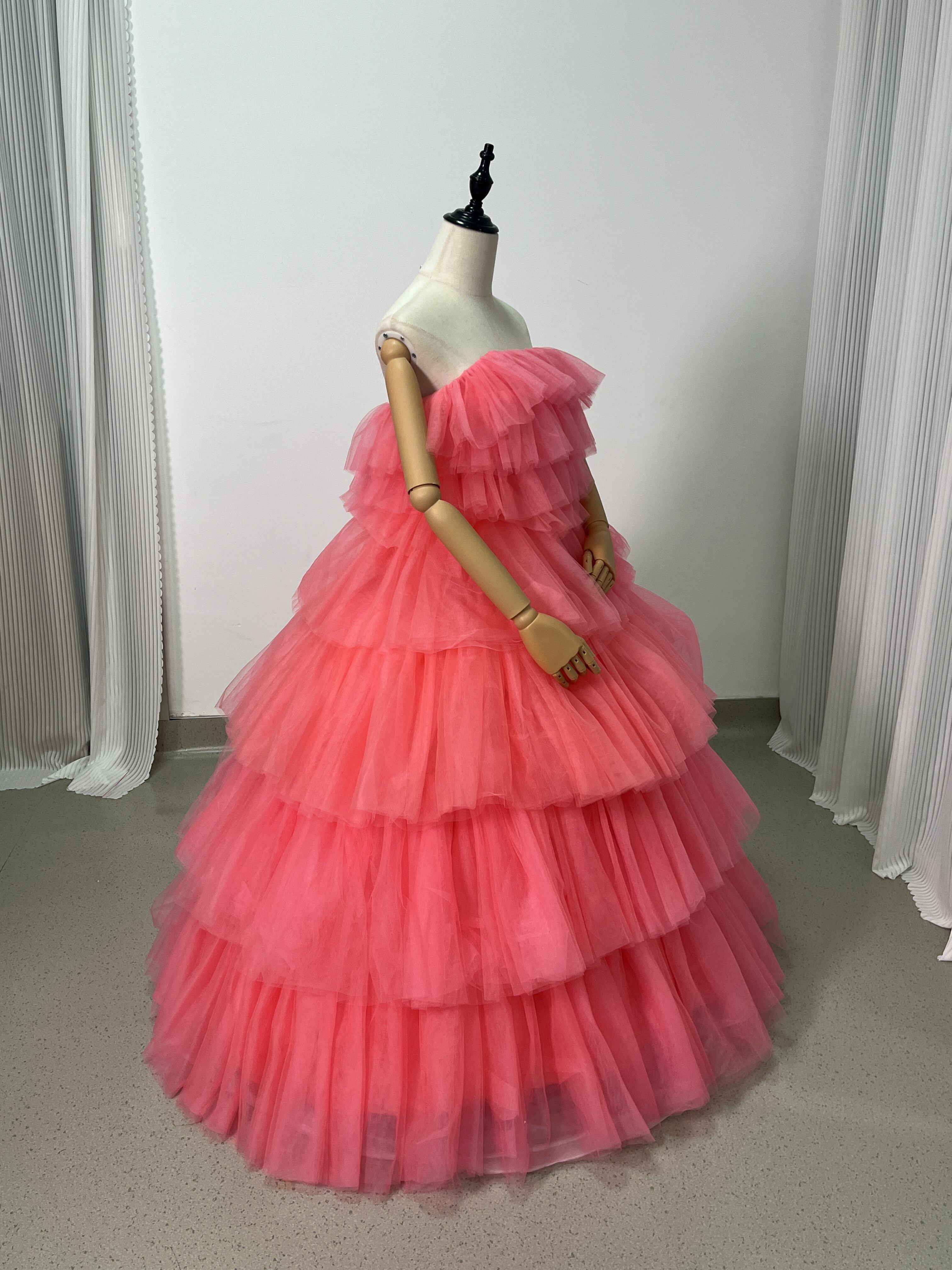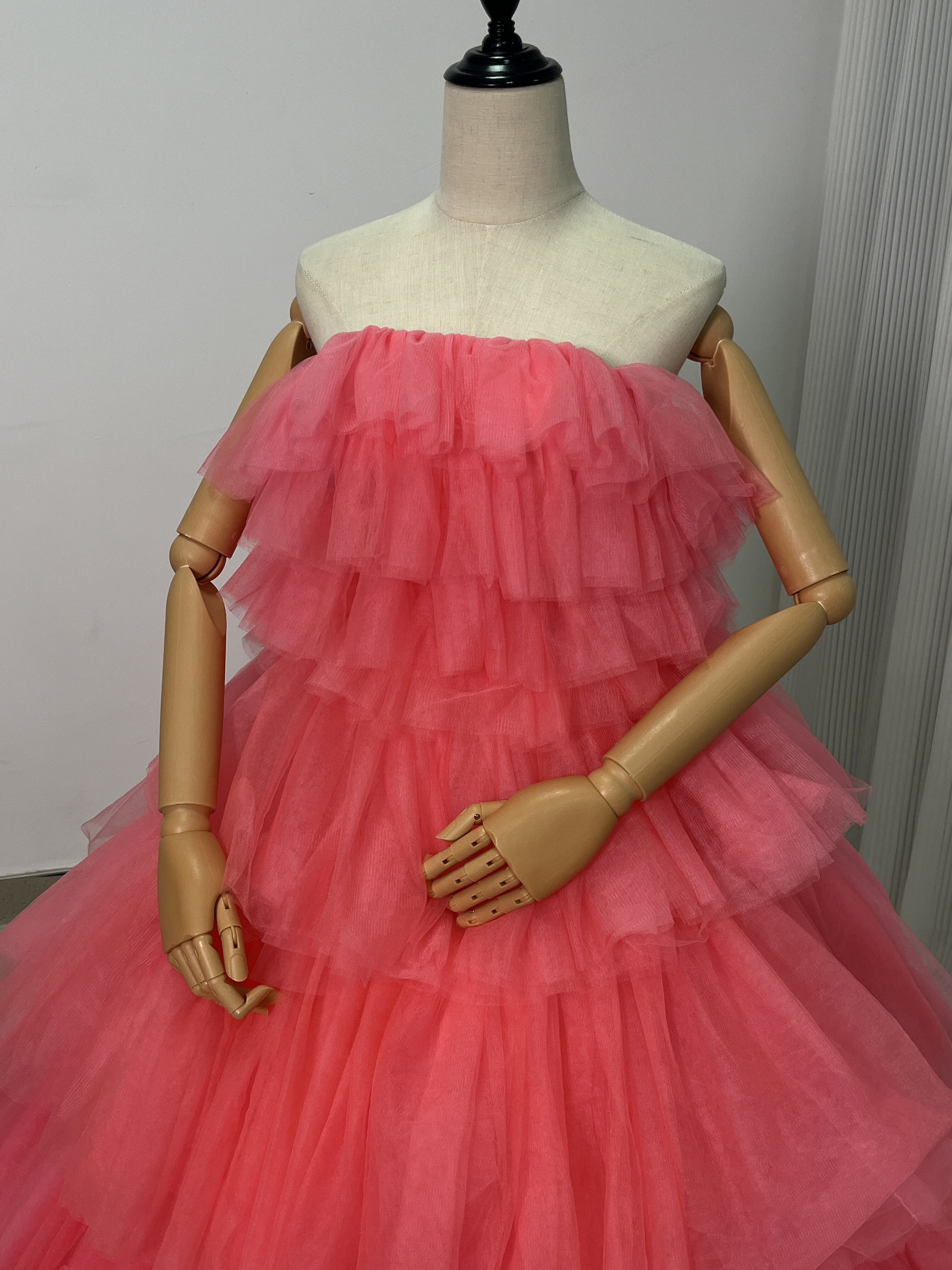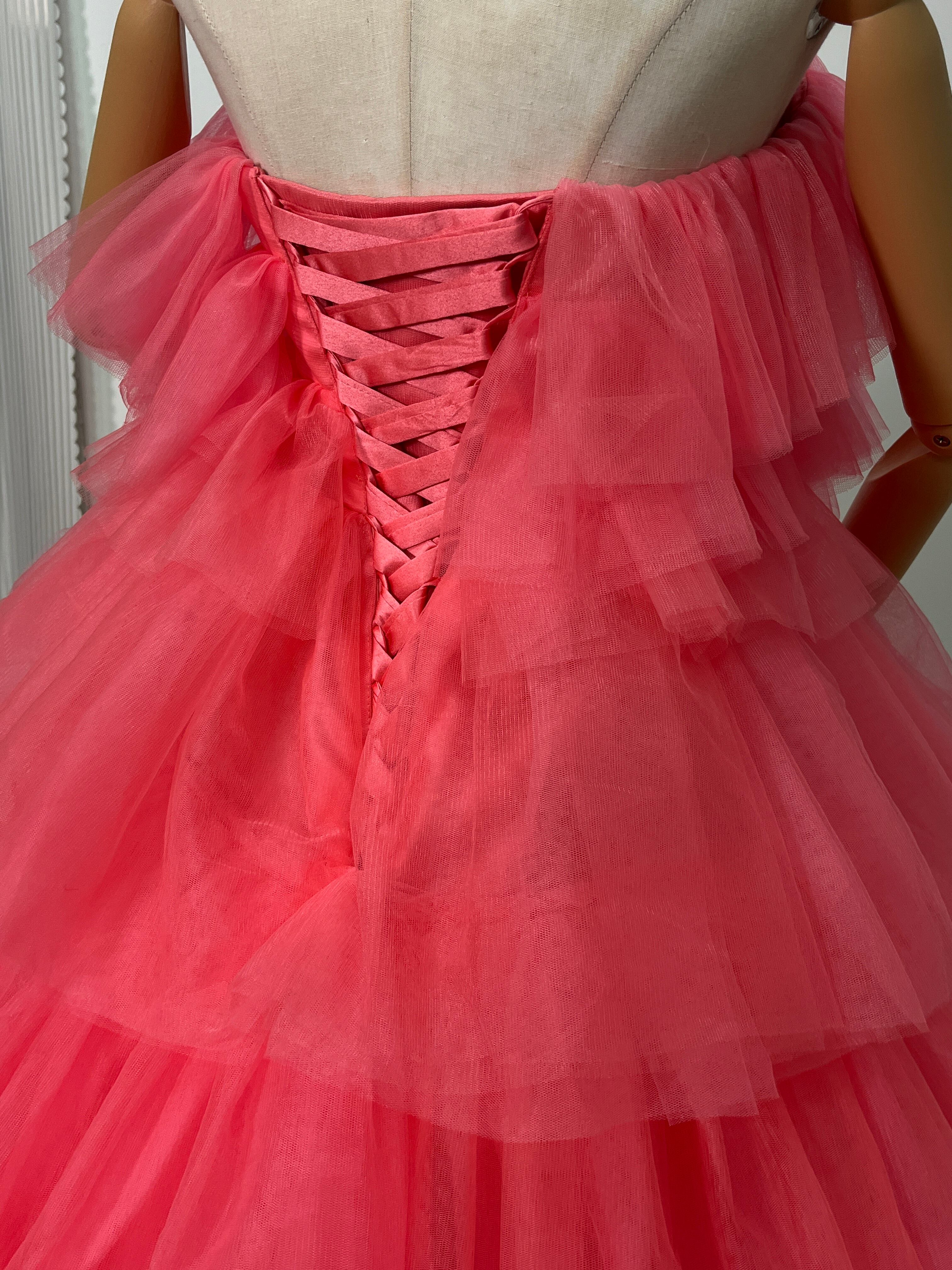 送料無料!美品! ピンクカラードレス ソフトチュール 重ねたチュールスカートもこもこドレス/二次会/挙式/前撮り/結婚式