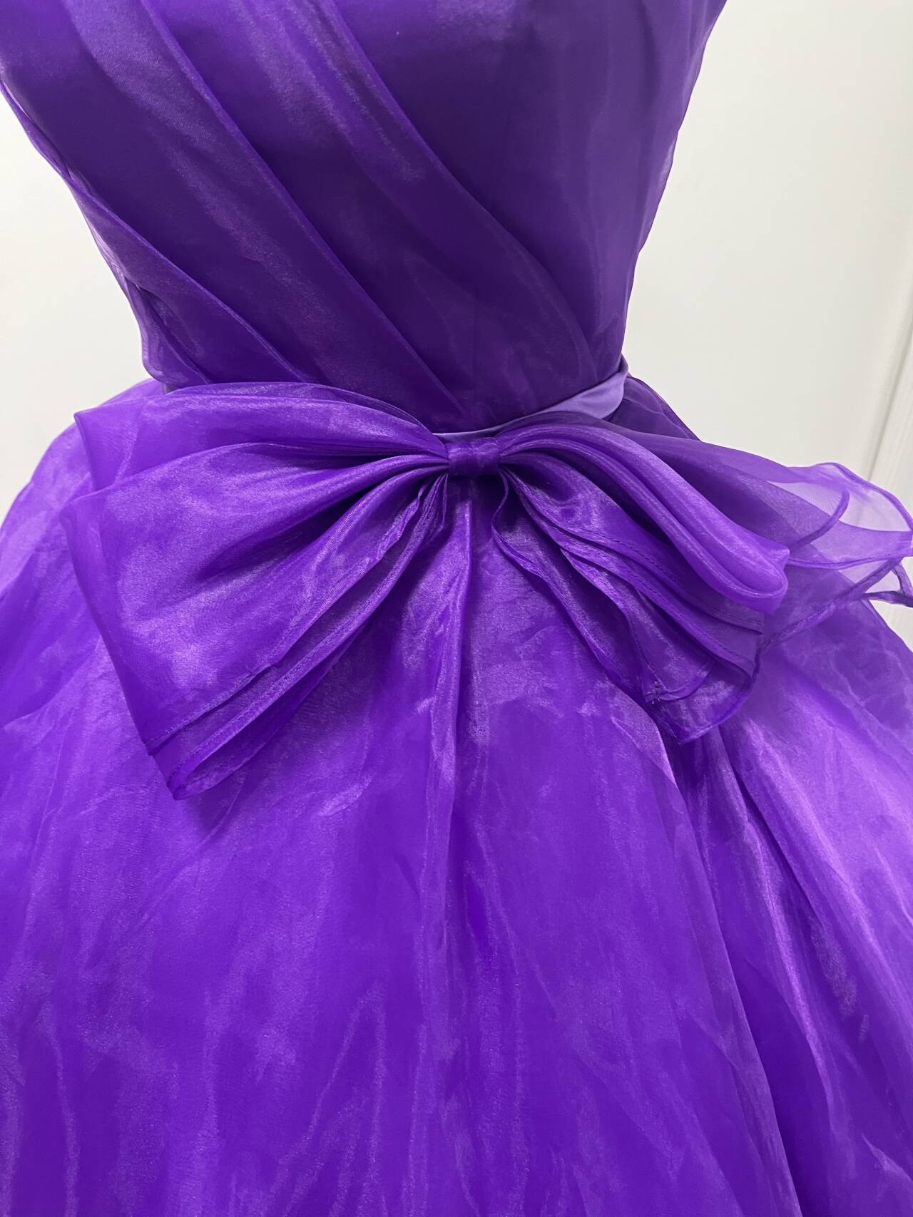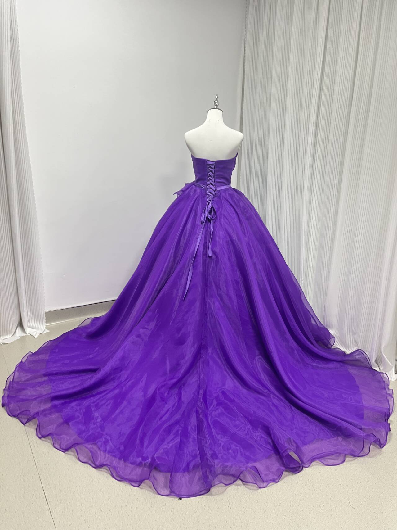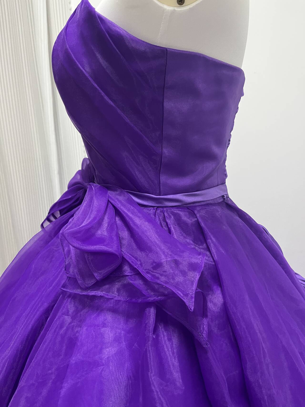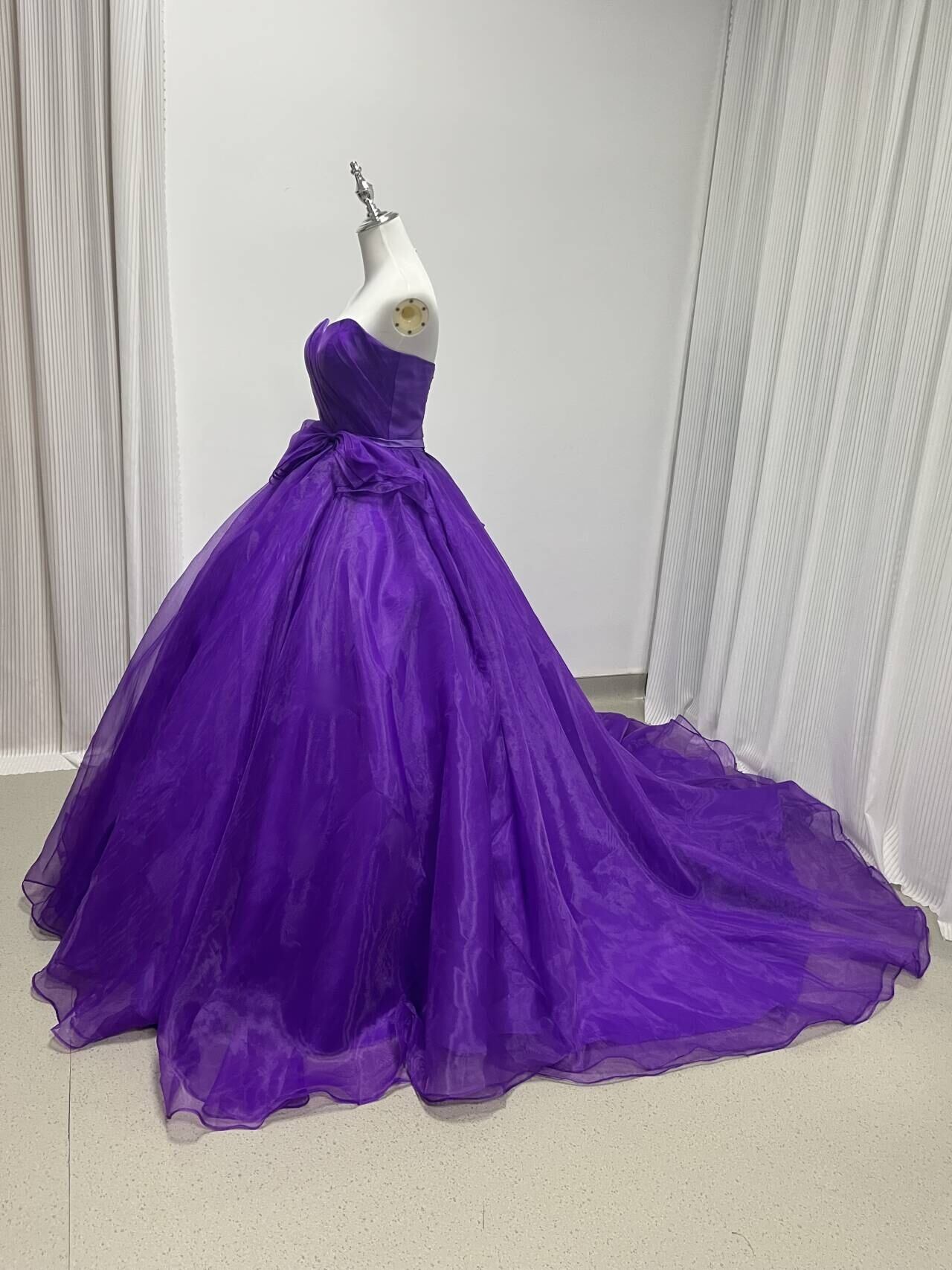 大好評中! 紫 上質オーガンジー ベアトップ カラードレス 華やかなトレーン /結婚式披露