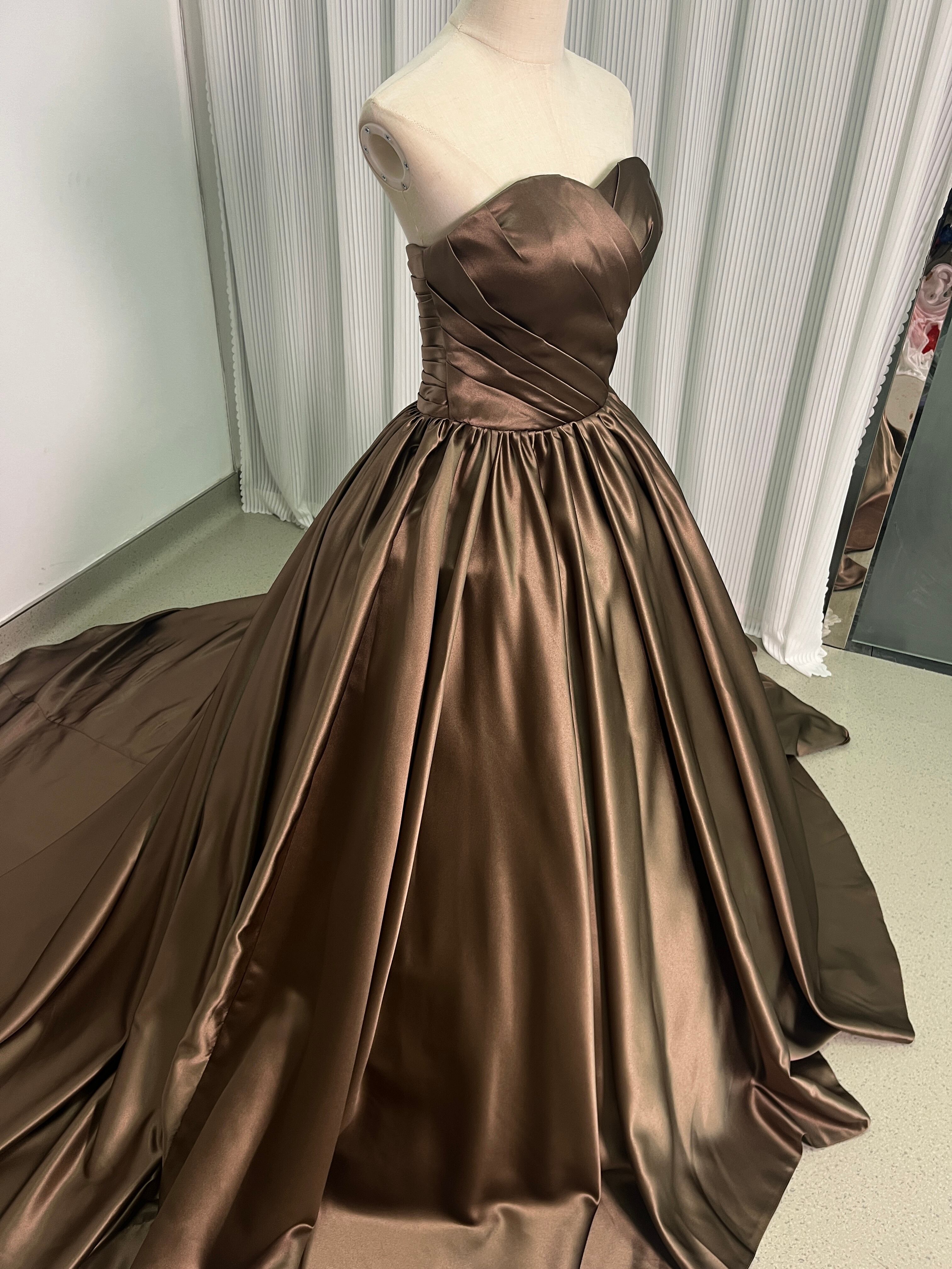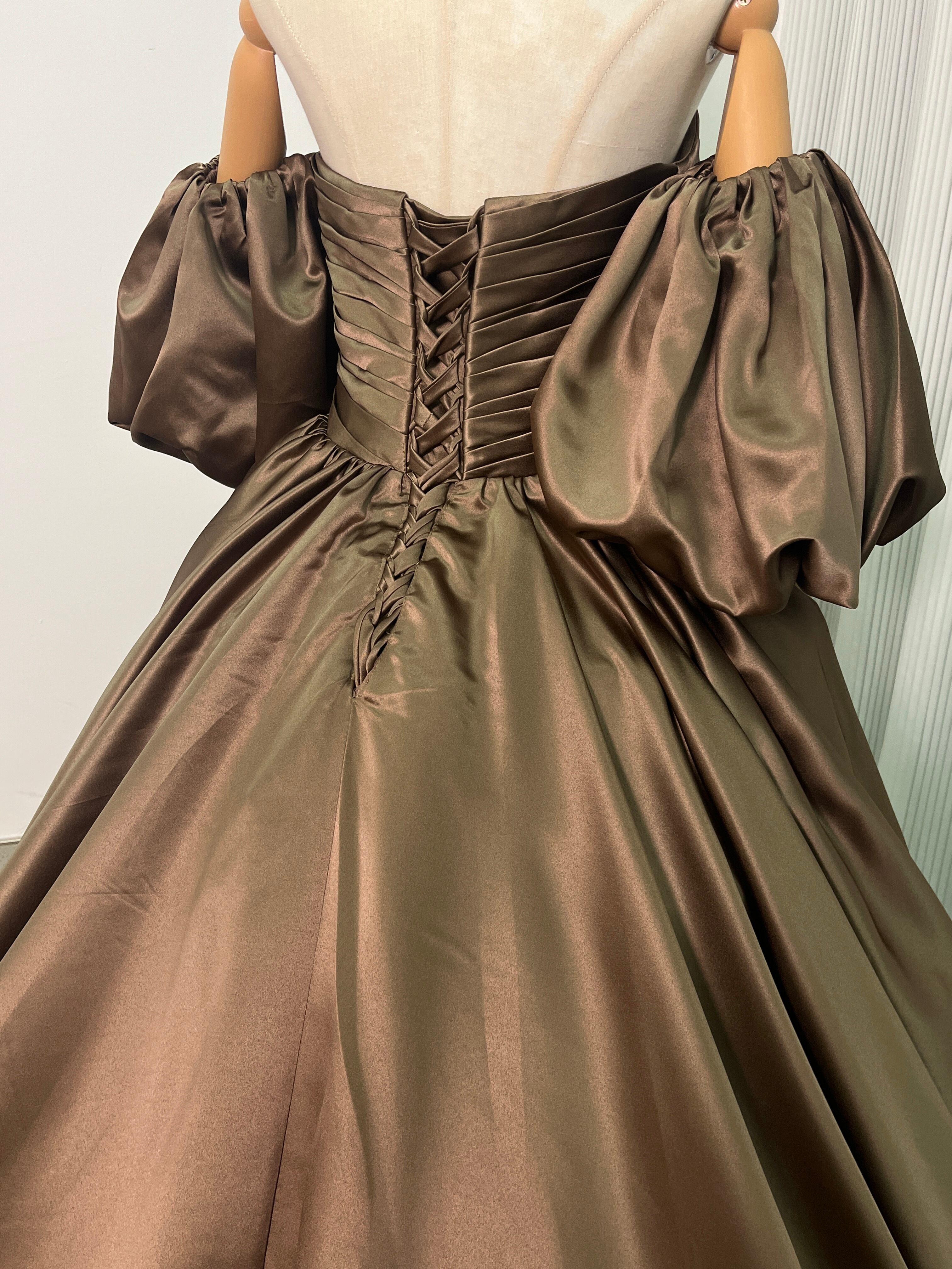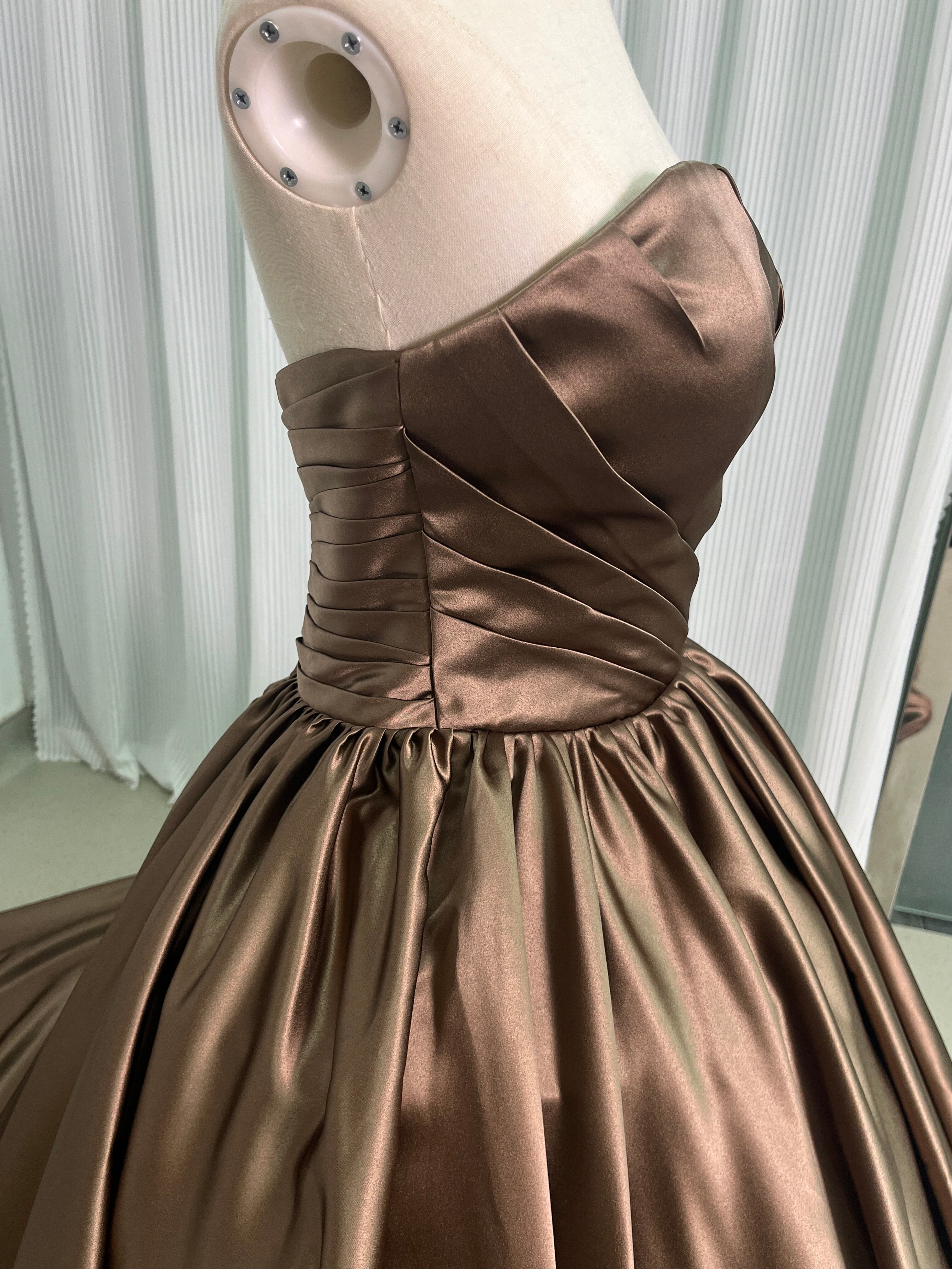 大好評中!コーヒーの色 ベアトップ 取り外し袖 カラードレス 編み上げ プリンセスライン /結婚式披露