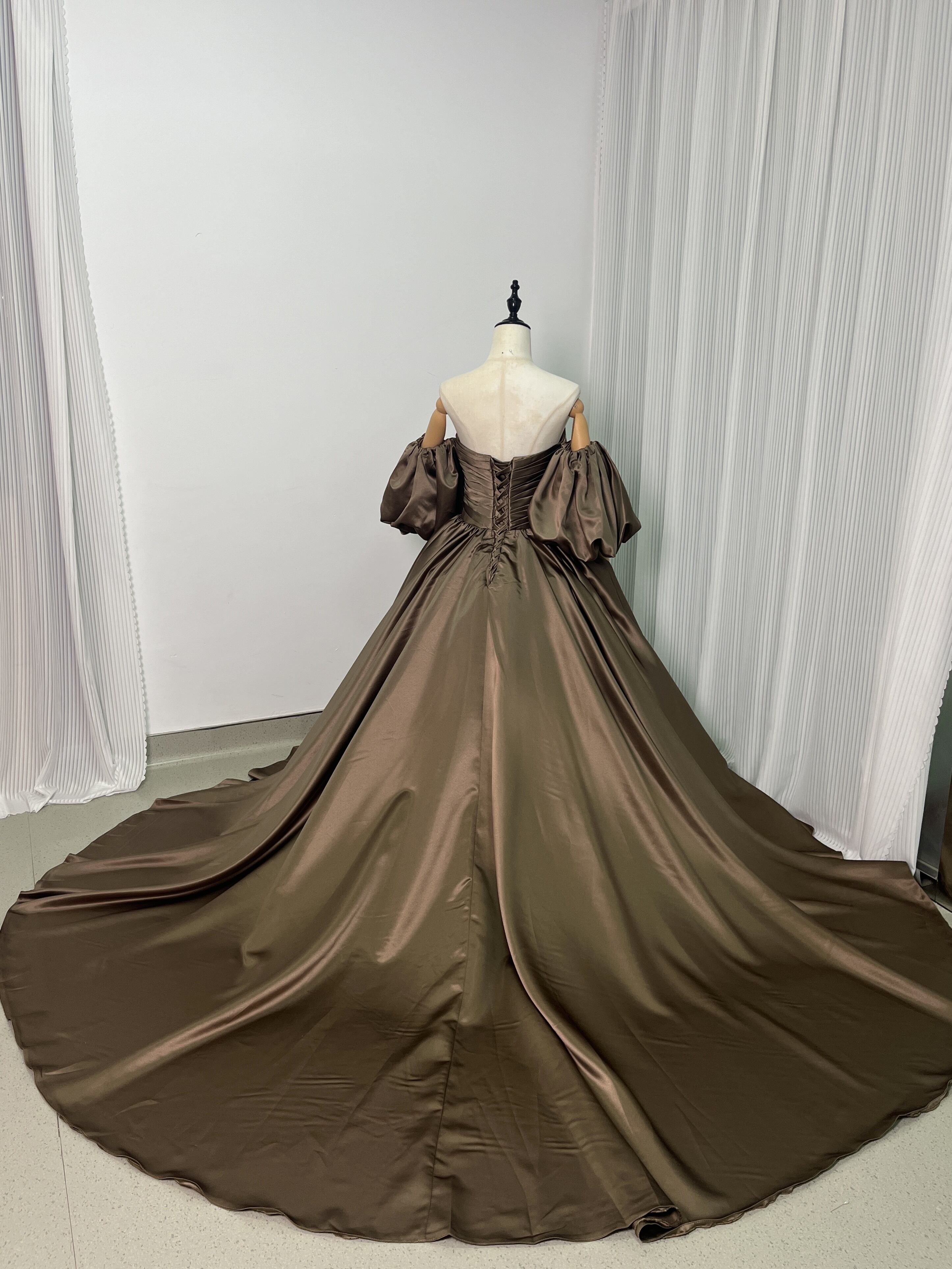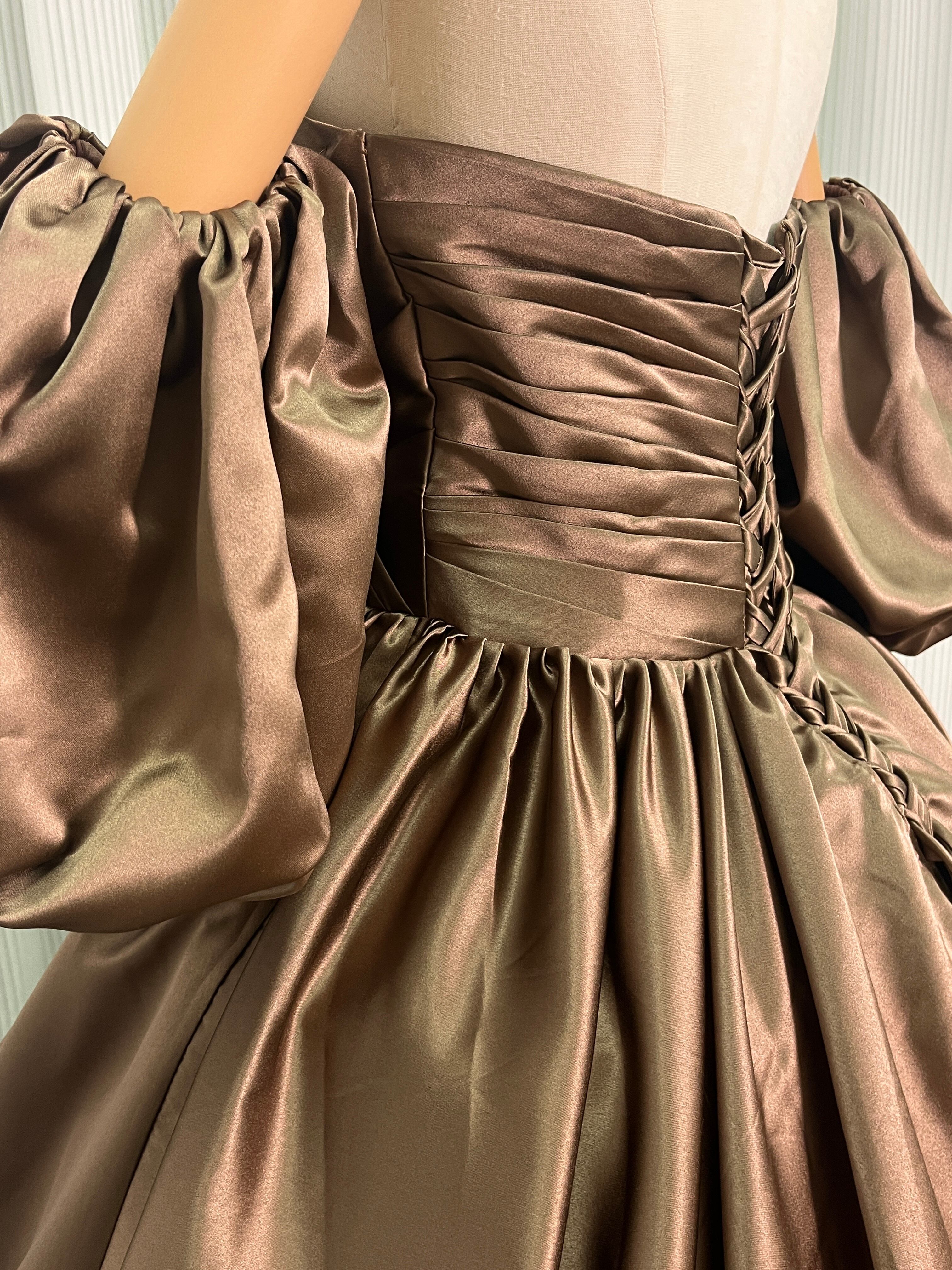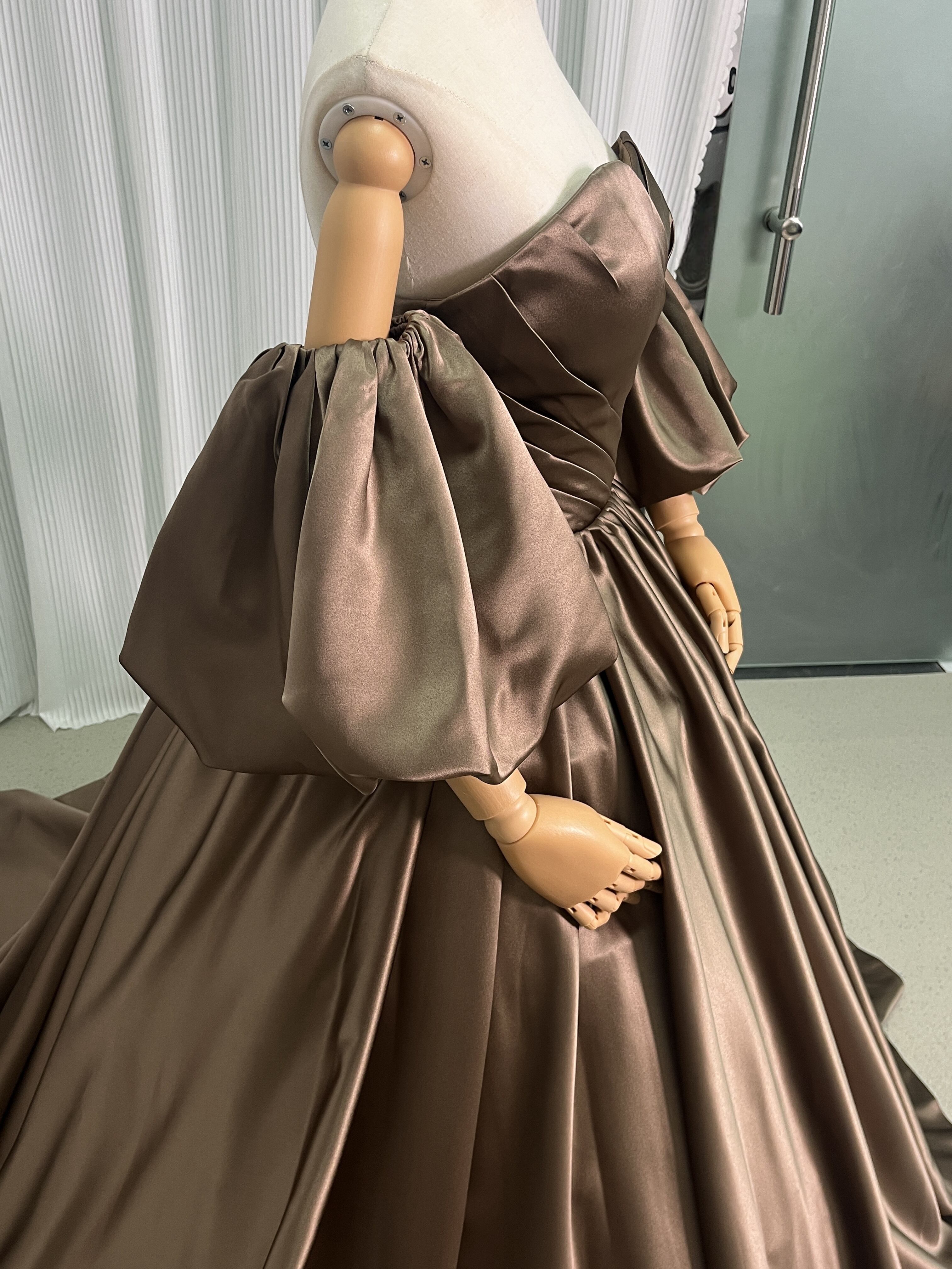 大好評中!コーヒーの色 ベアトップ 取り外し袖 カラードレス 編み上げ プリンセスライン /結婚式披露