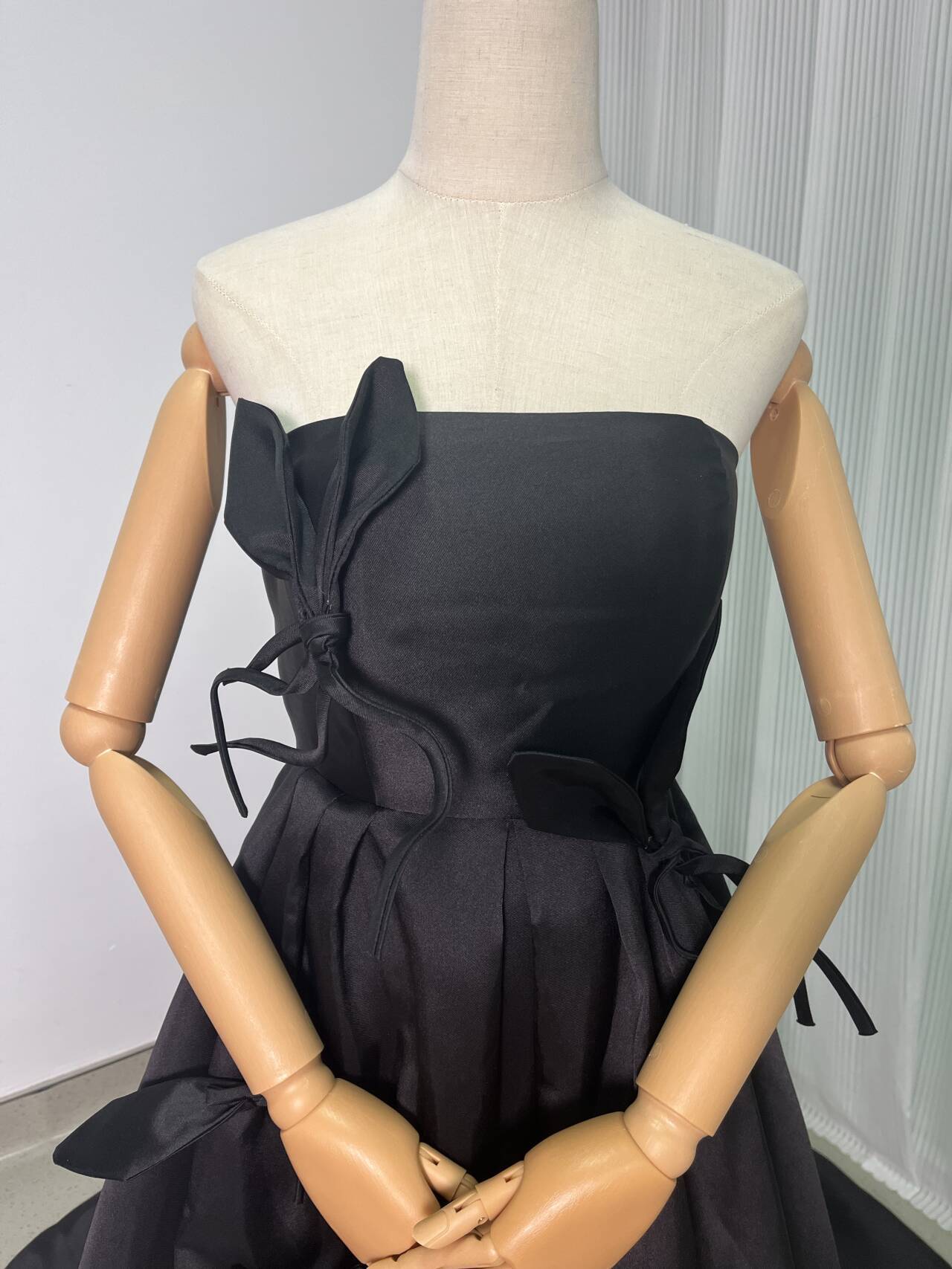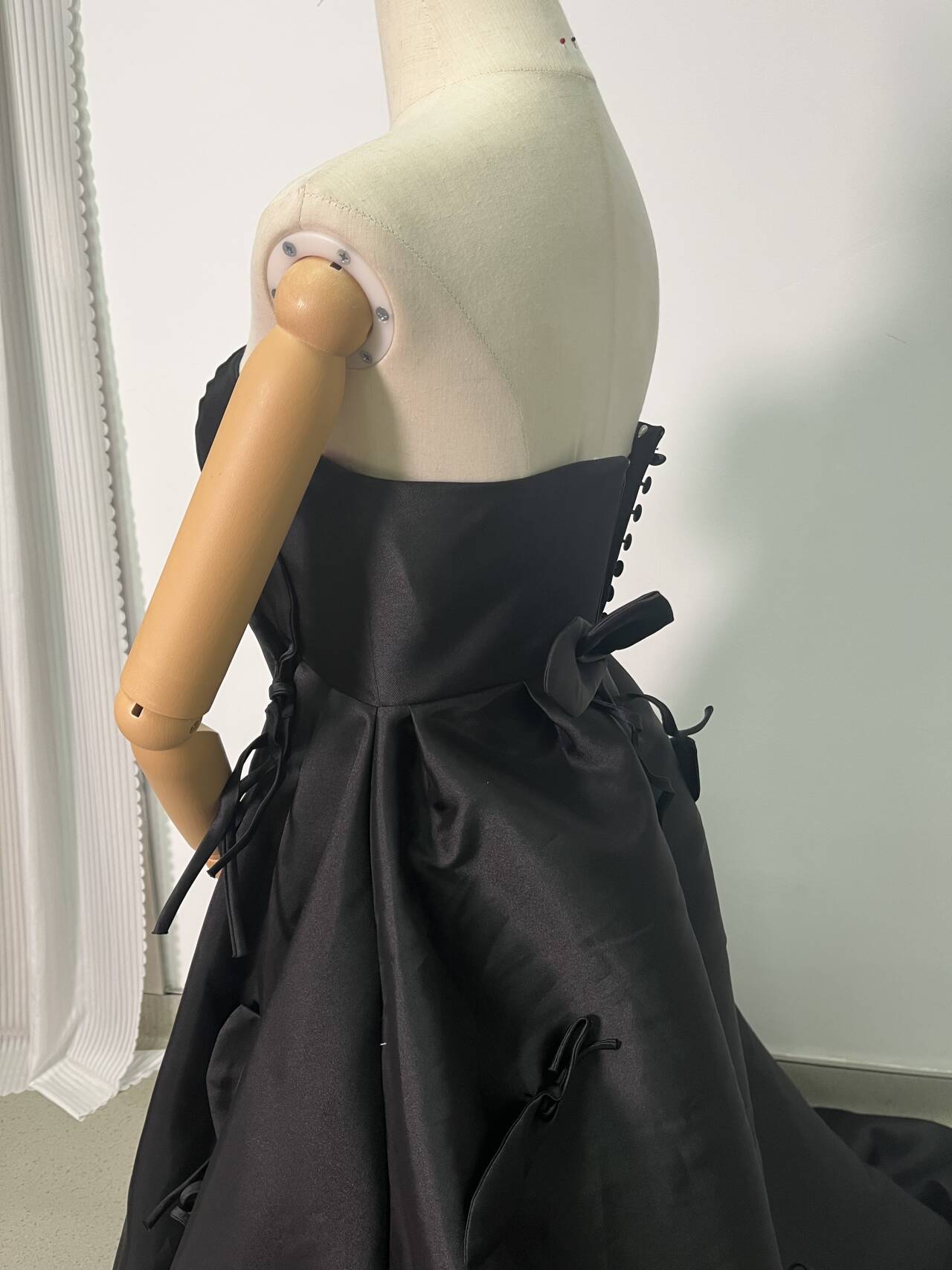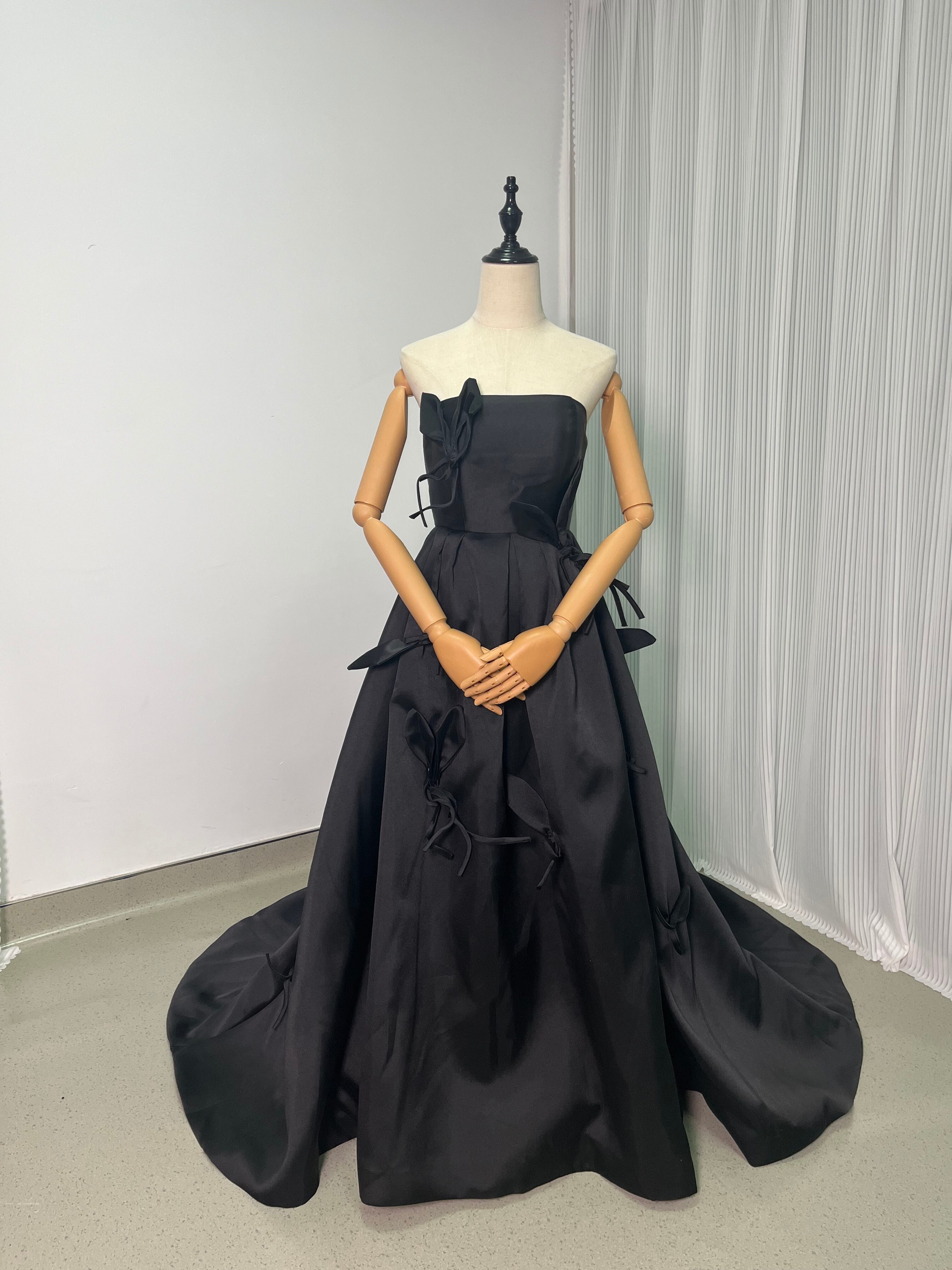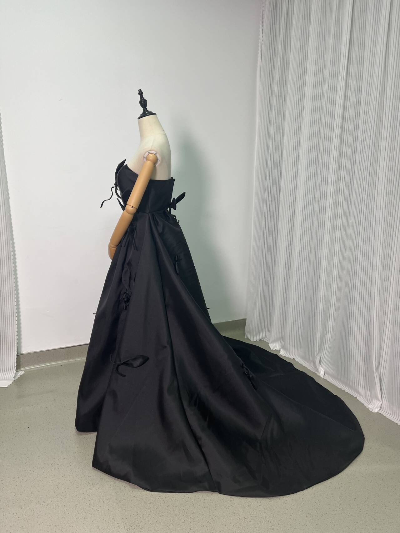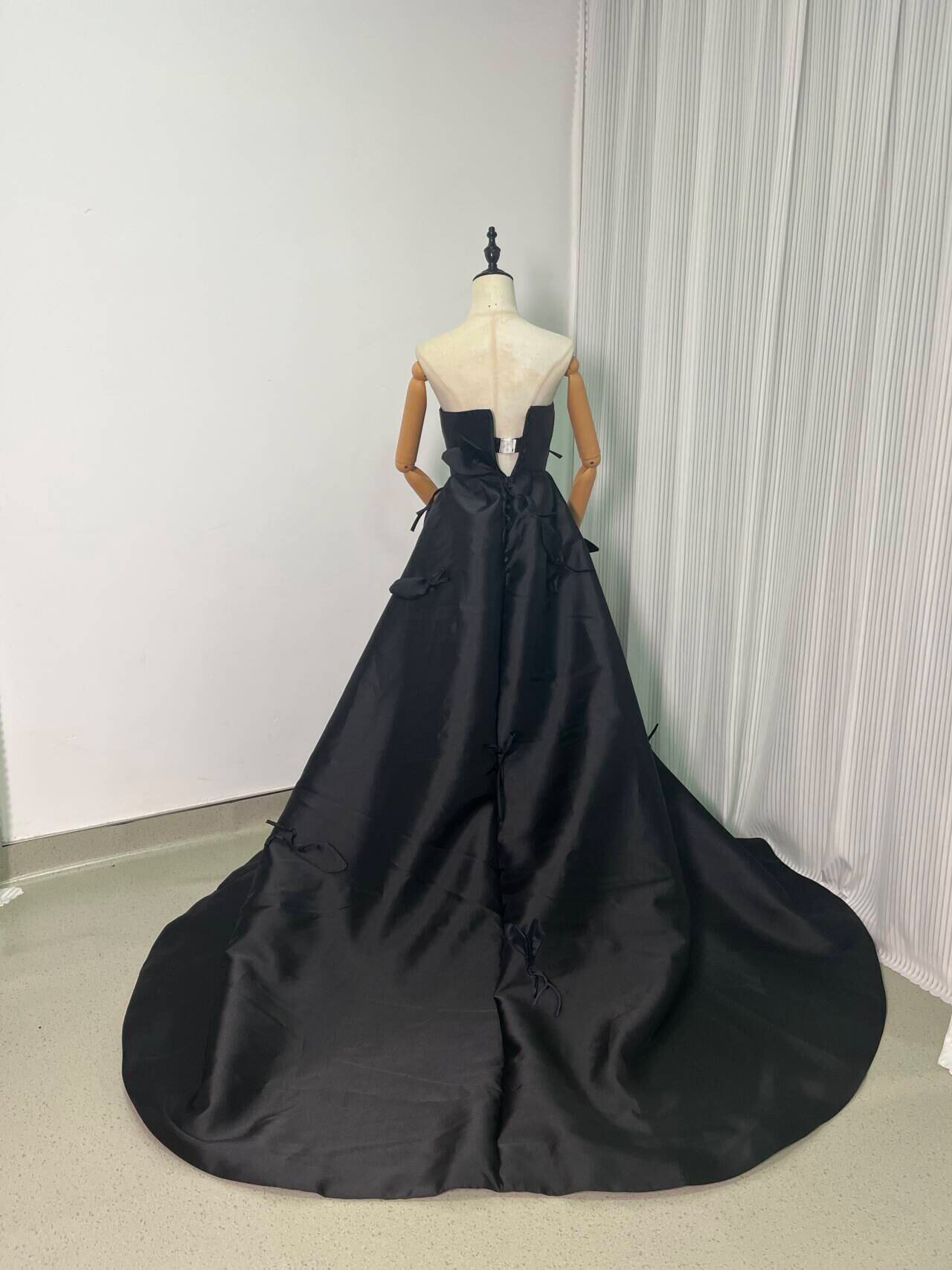 大好評中!黒色 オフショルダー カラードレス 編み上げ 華やかなトレーン /結婚式披露