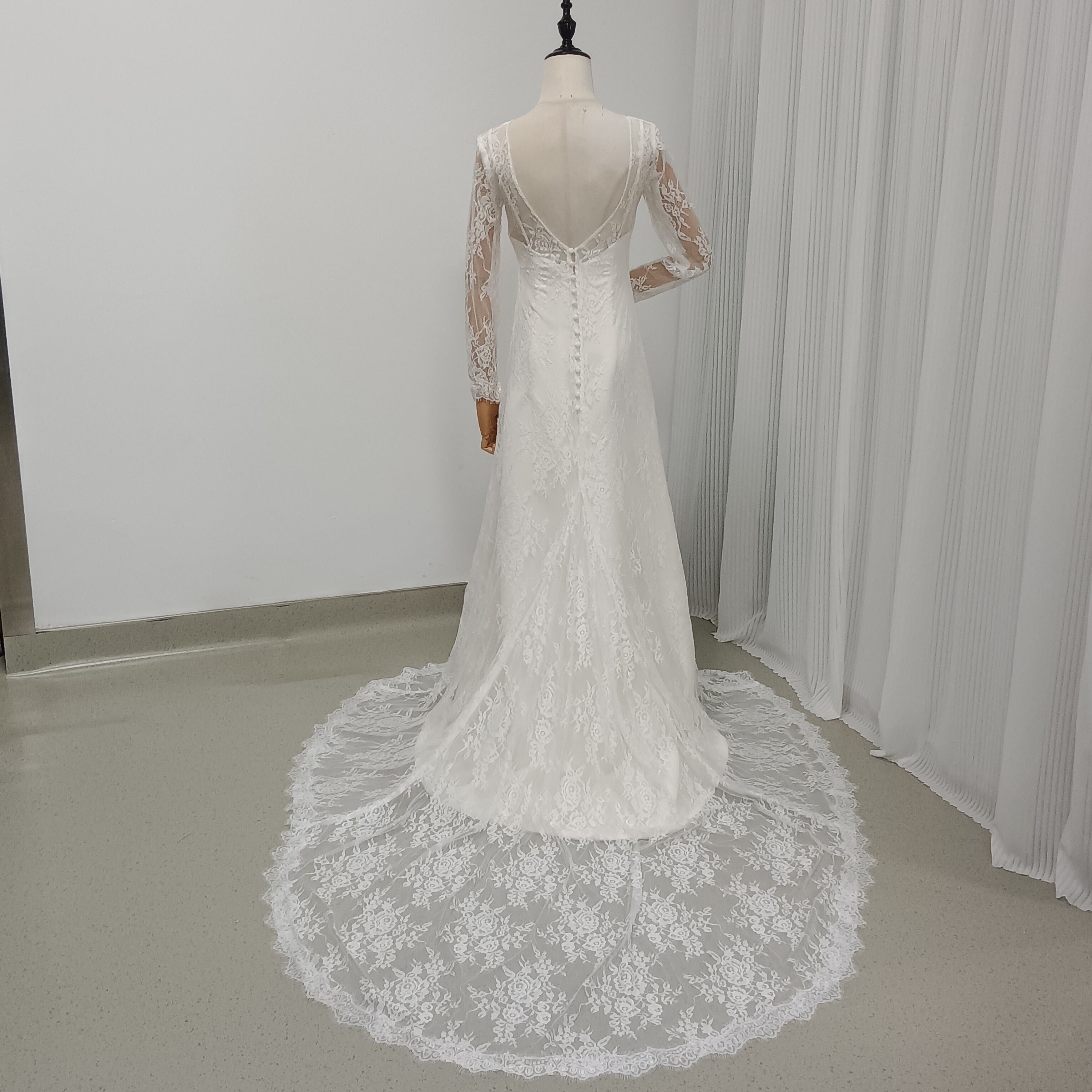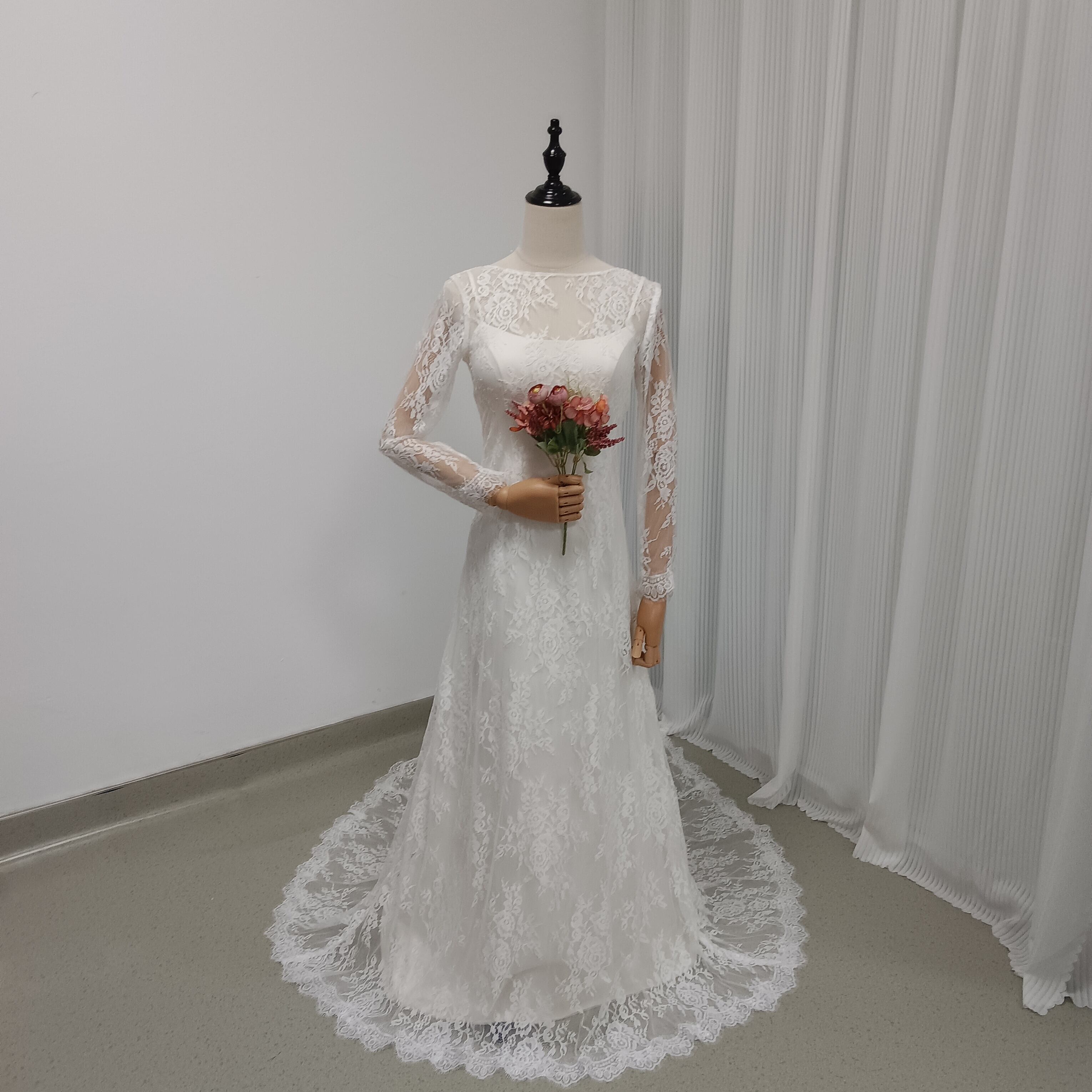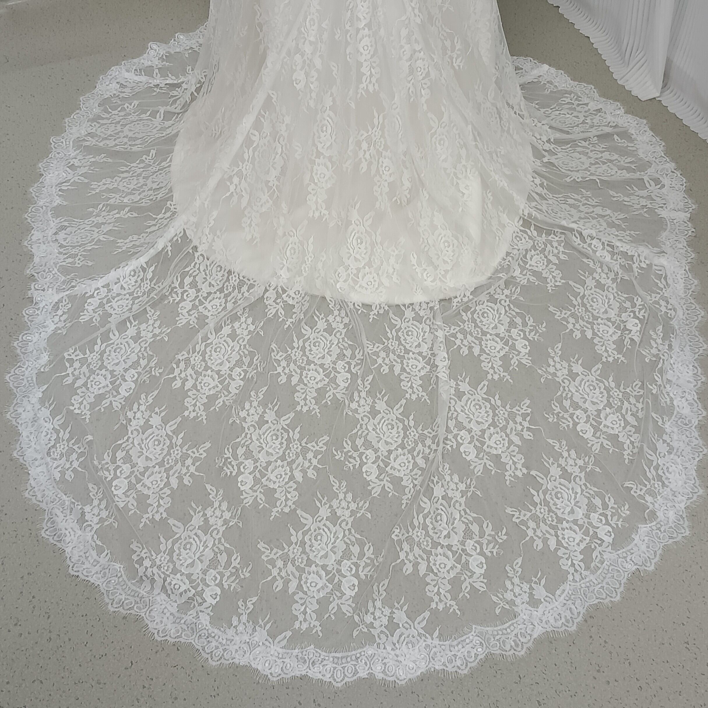 オフホワイト,上品レース ウエディングドレ華やかなトレーン+ キャミソール ワンピース /結婚式披露