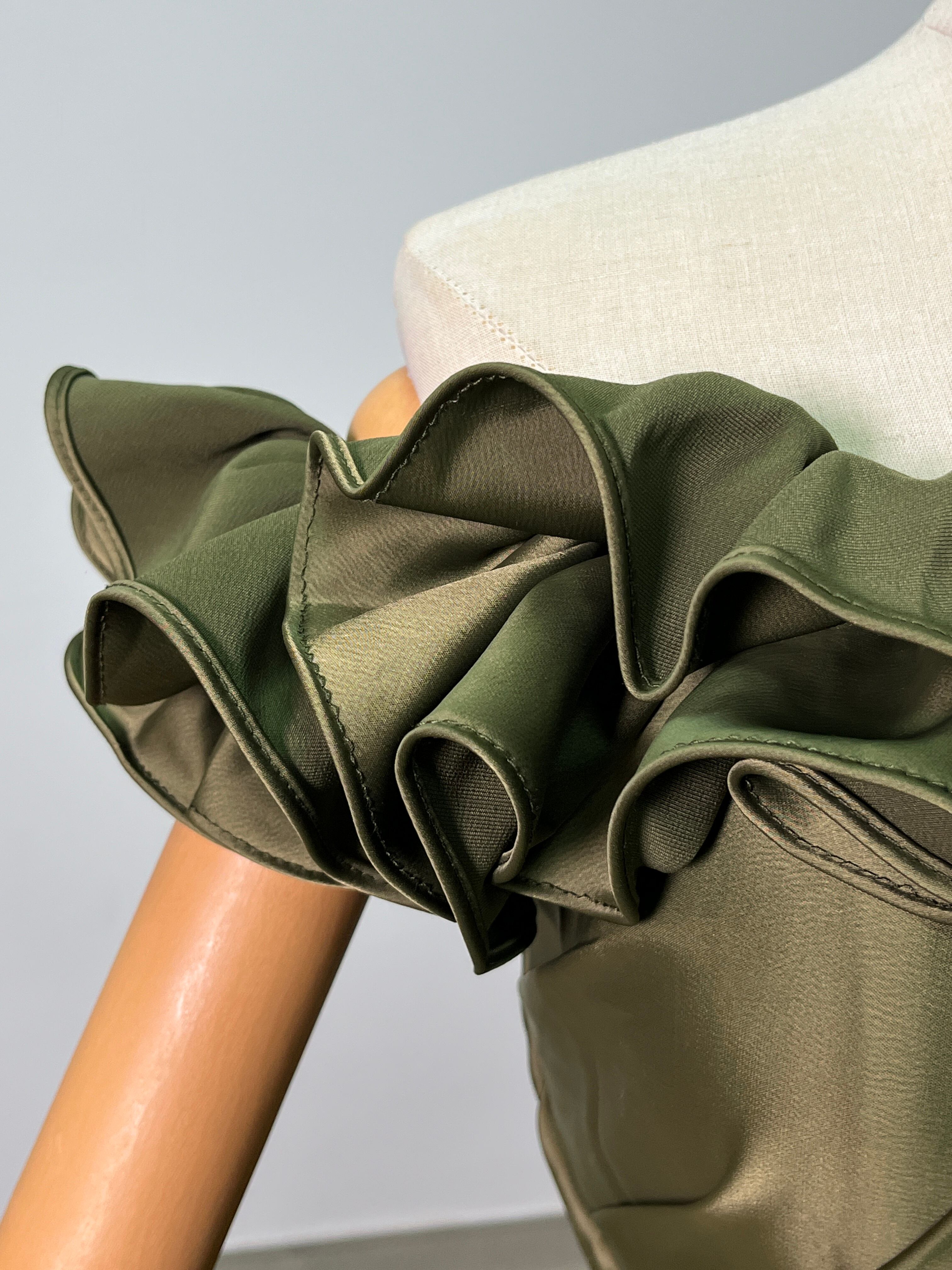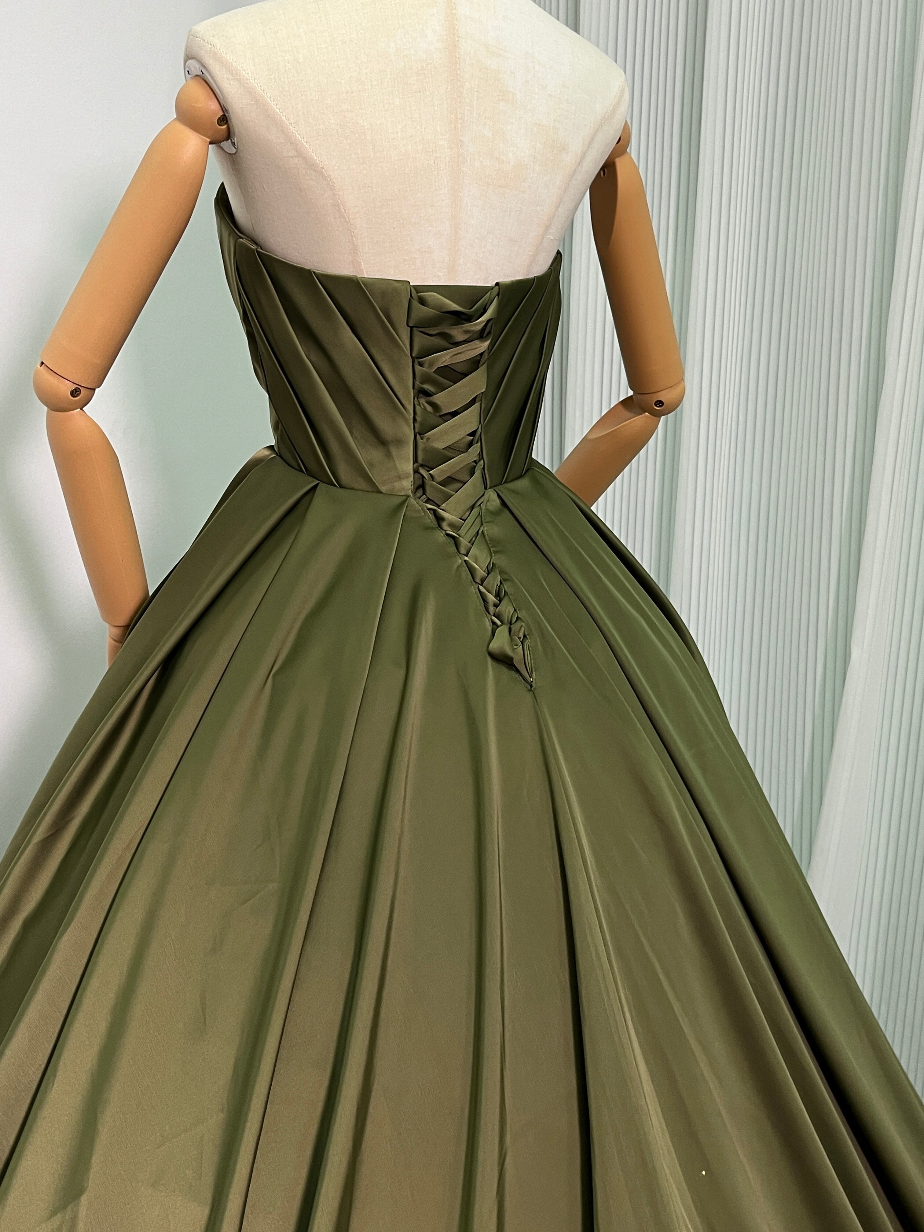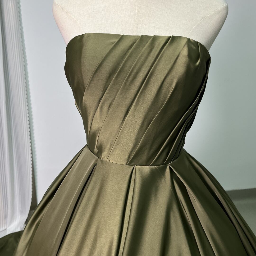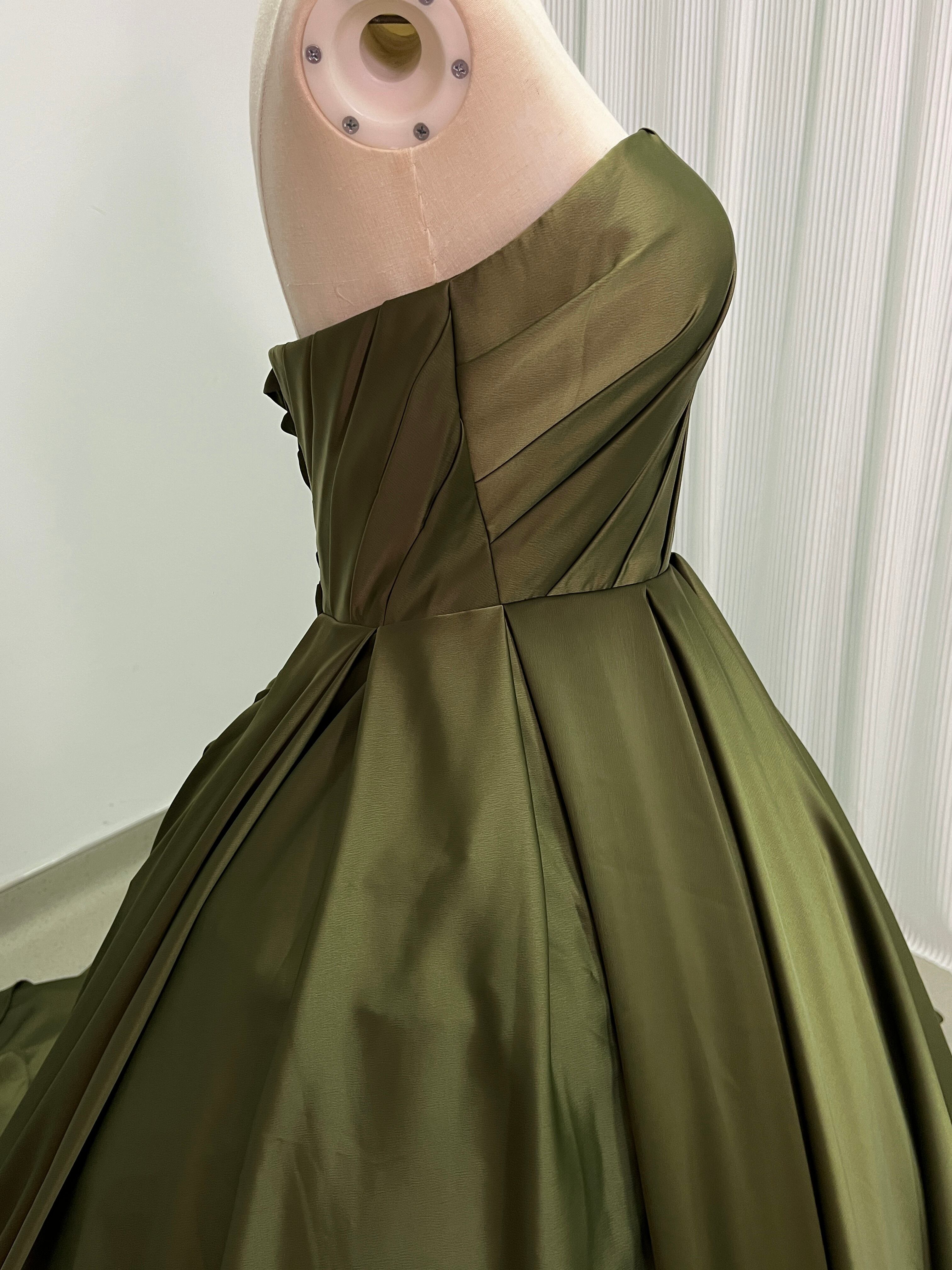 大好評中! 深めな緑 取り外しオフショルダー プ カラードレス 編み上げ 華やかなトレーン /結婚式披露