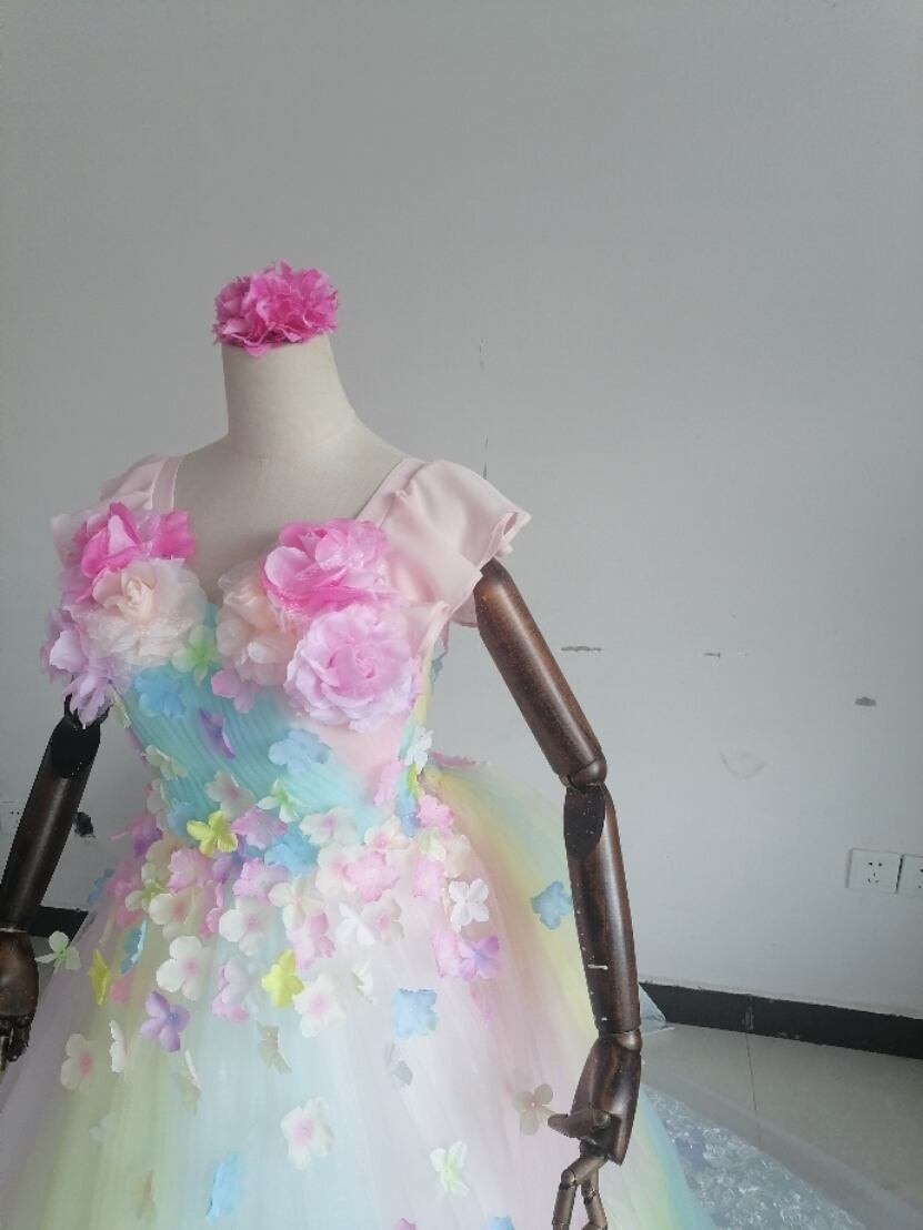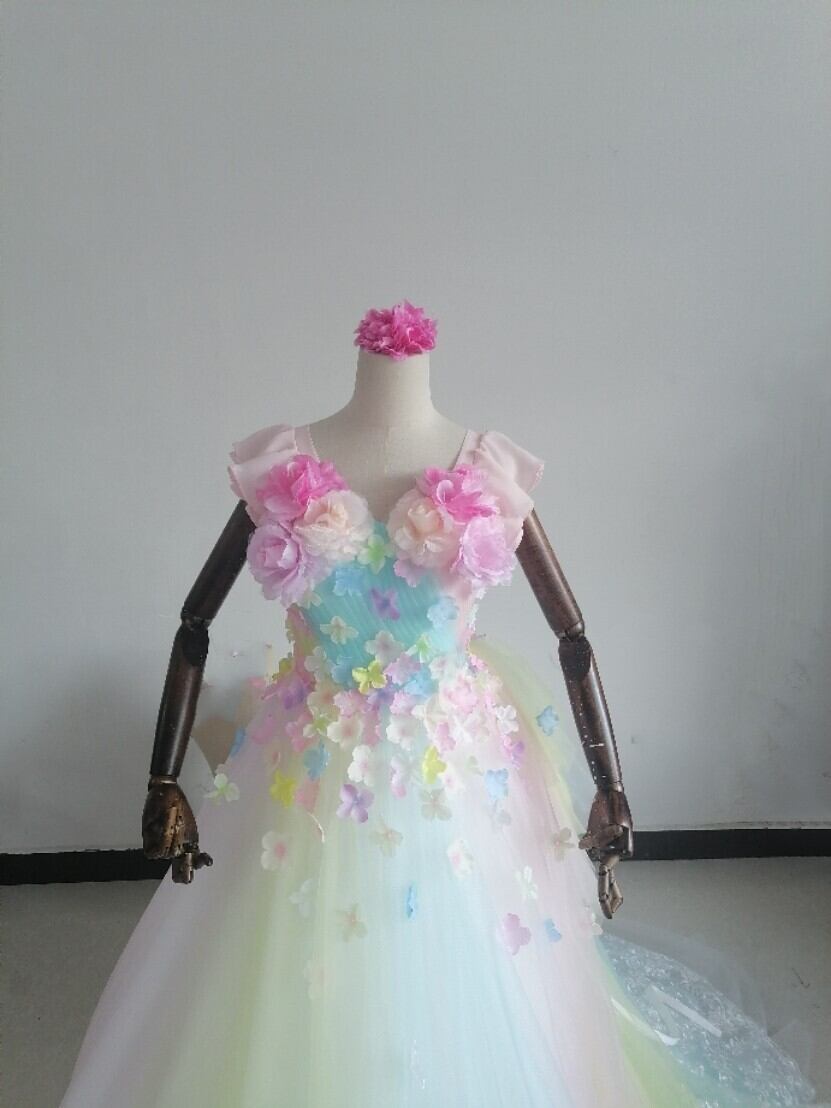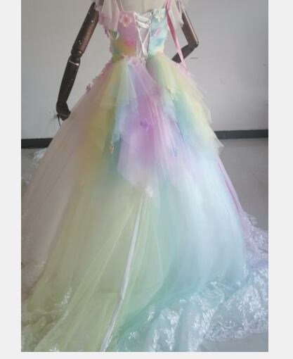 大好評中!カラードレス レインボースカート 3D立体レース刺繍 花びら付き/結婚式披露