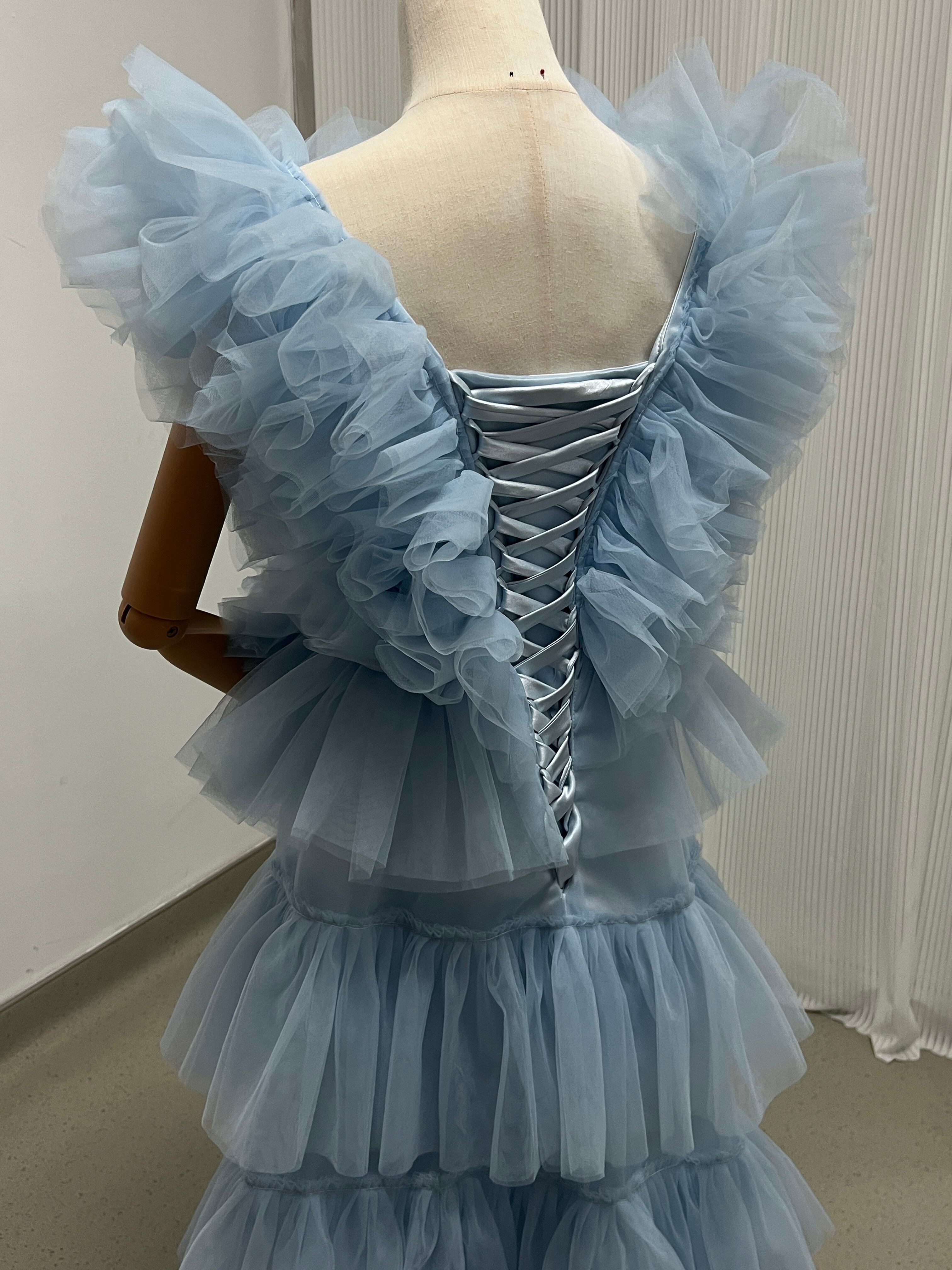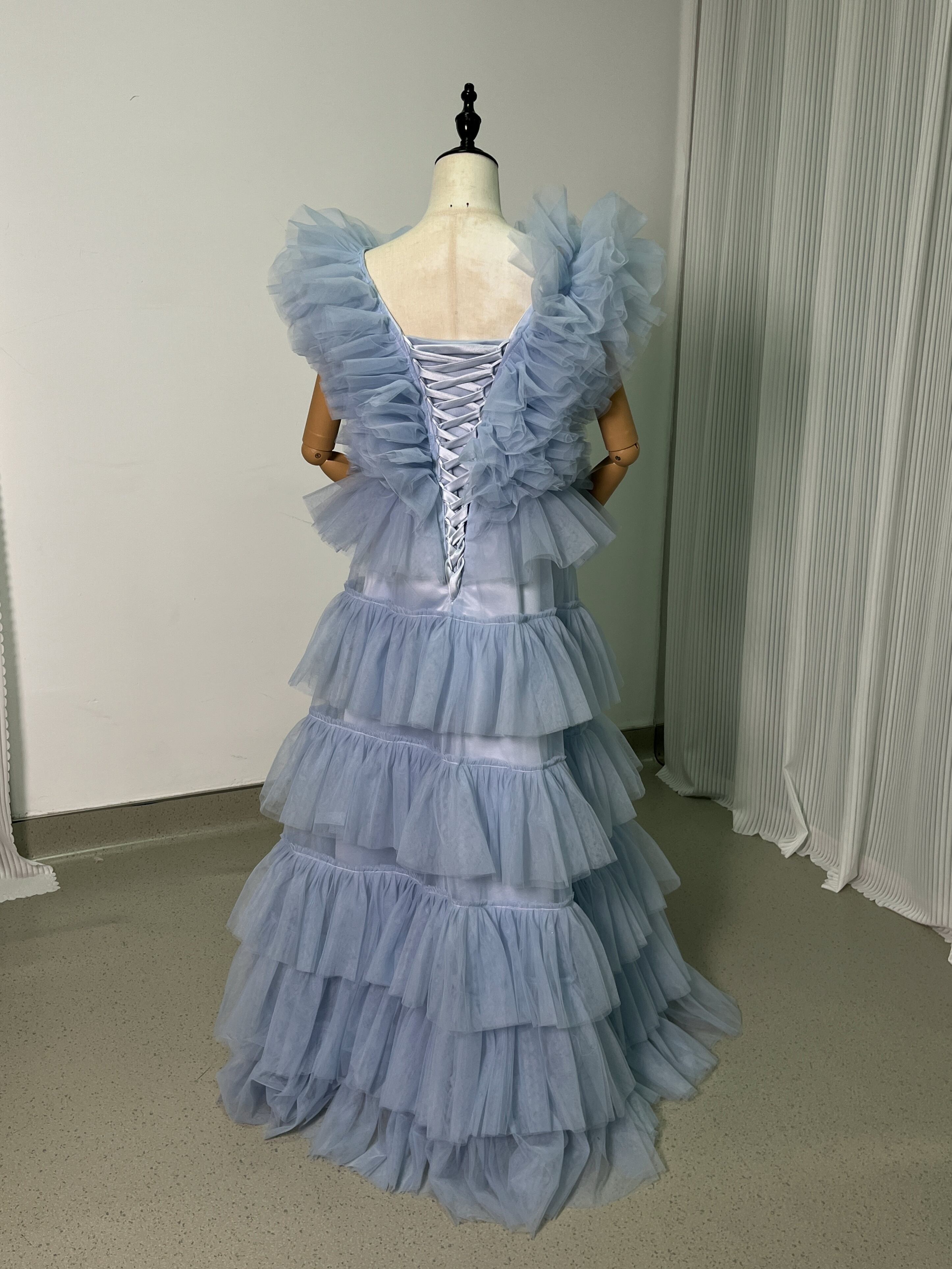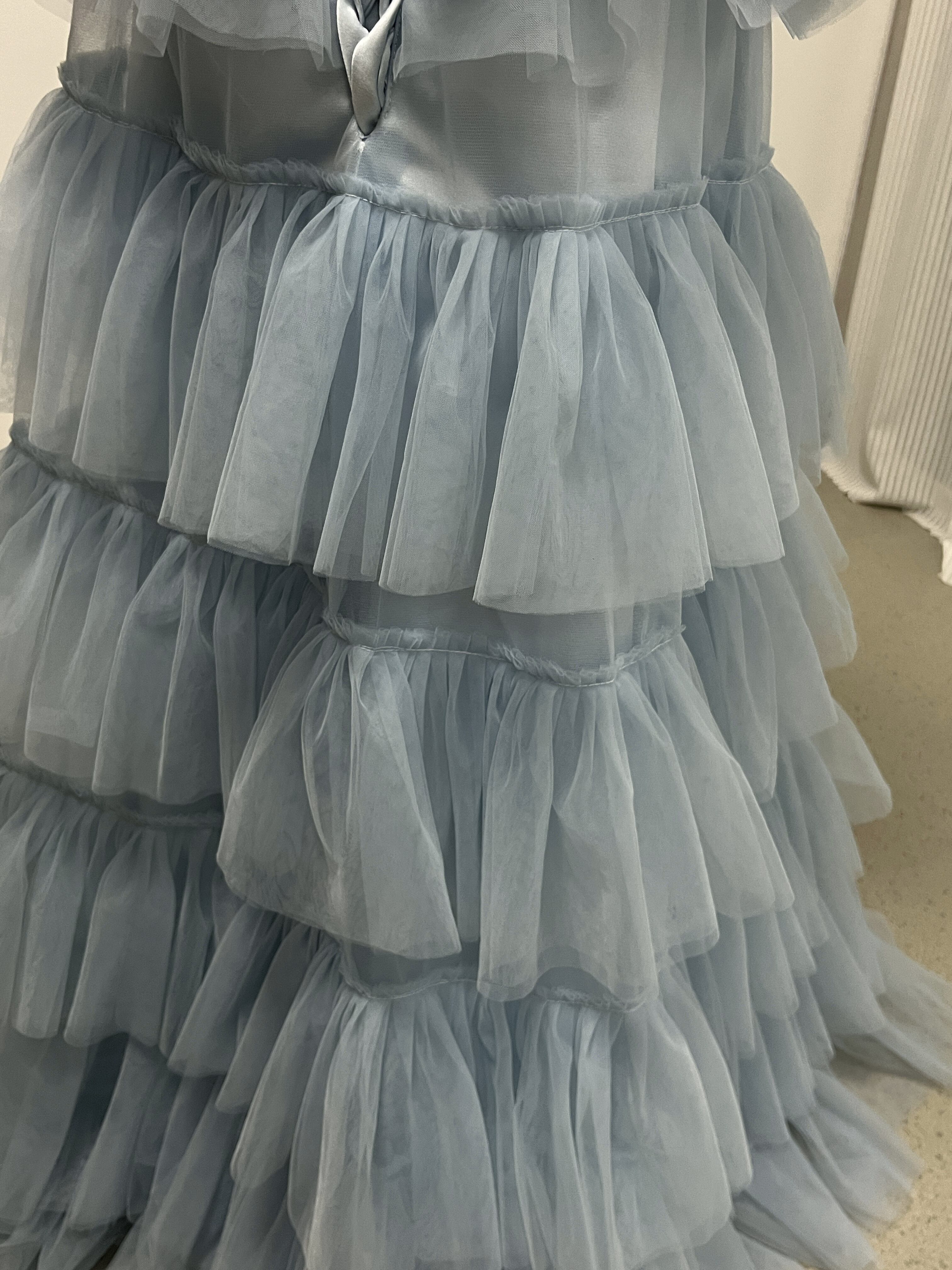 送料無料! ブルー カラードレス ソフトチュール 重ねたチュールスカート/二次会/挙式/前撮り/結婚式