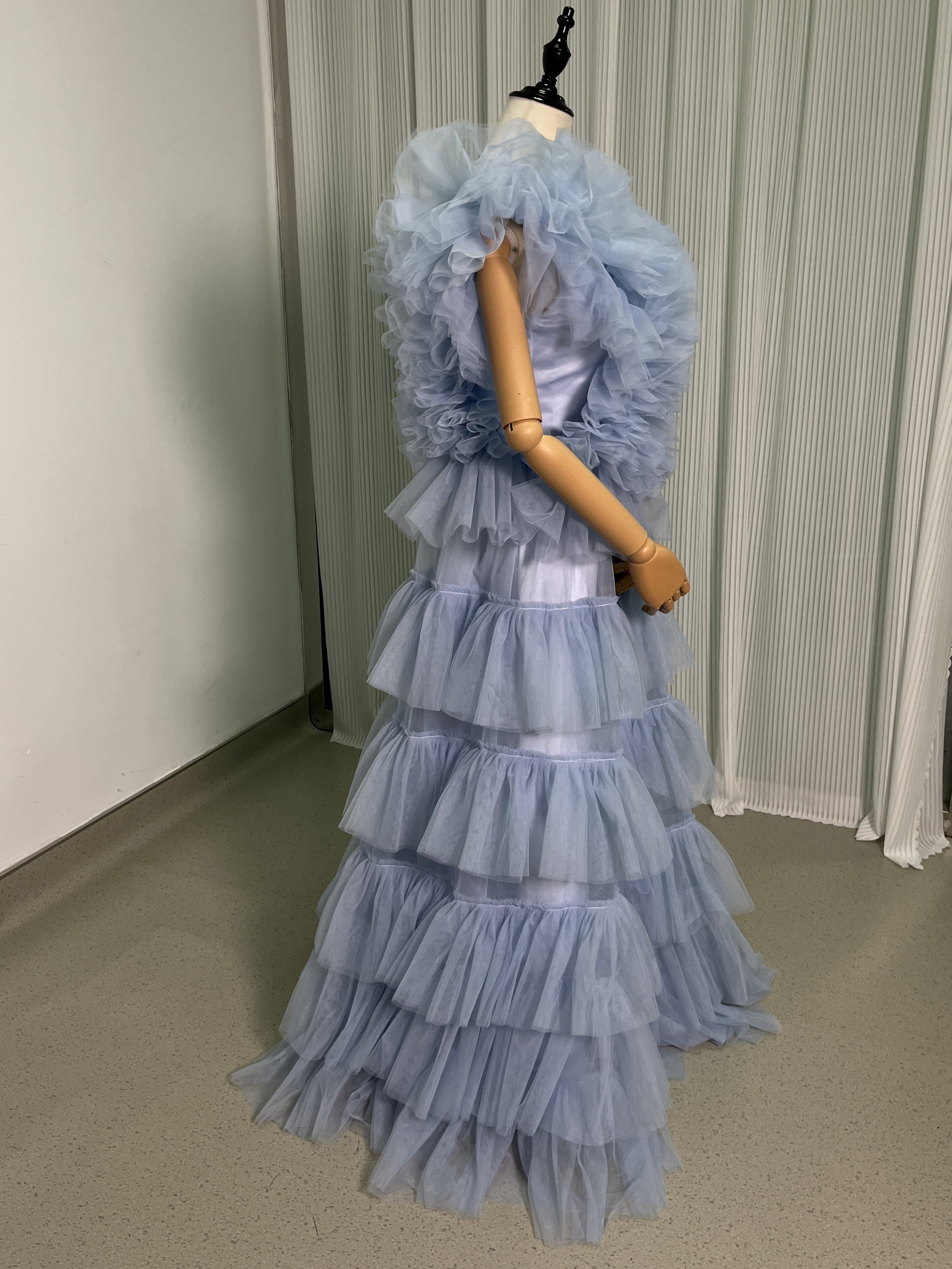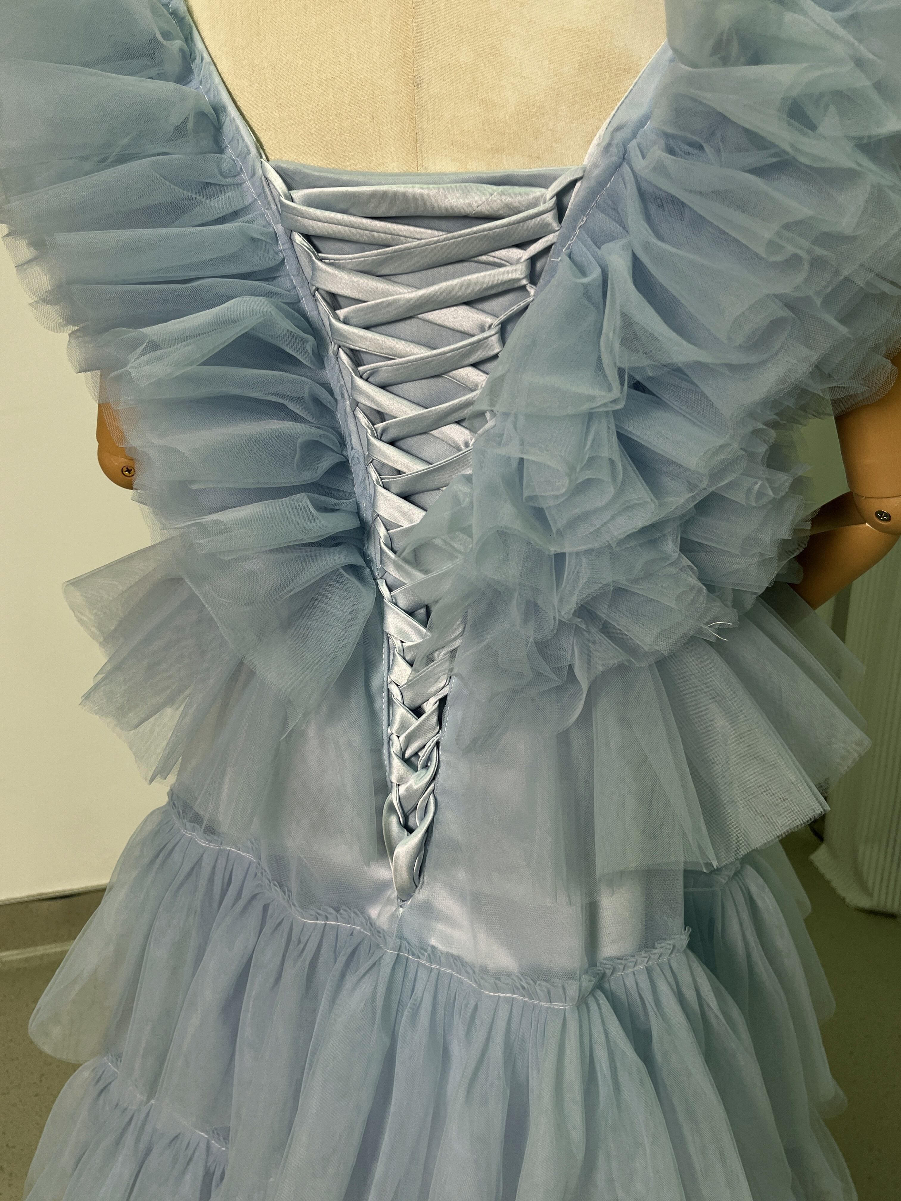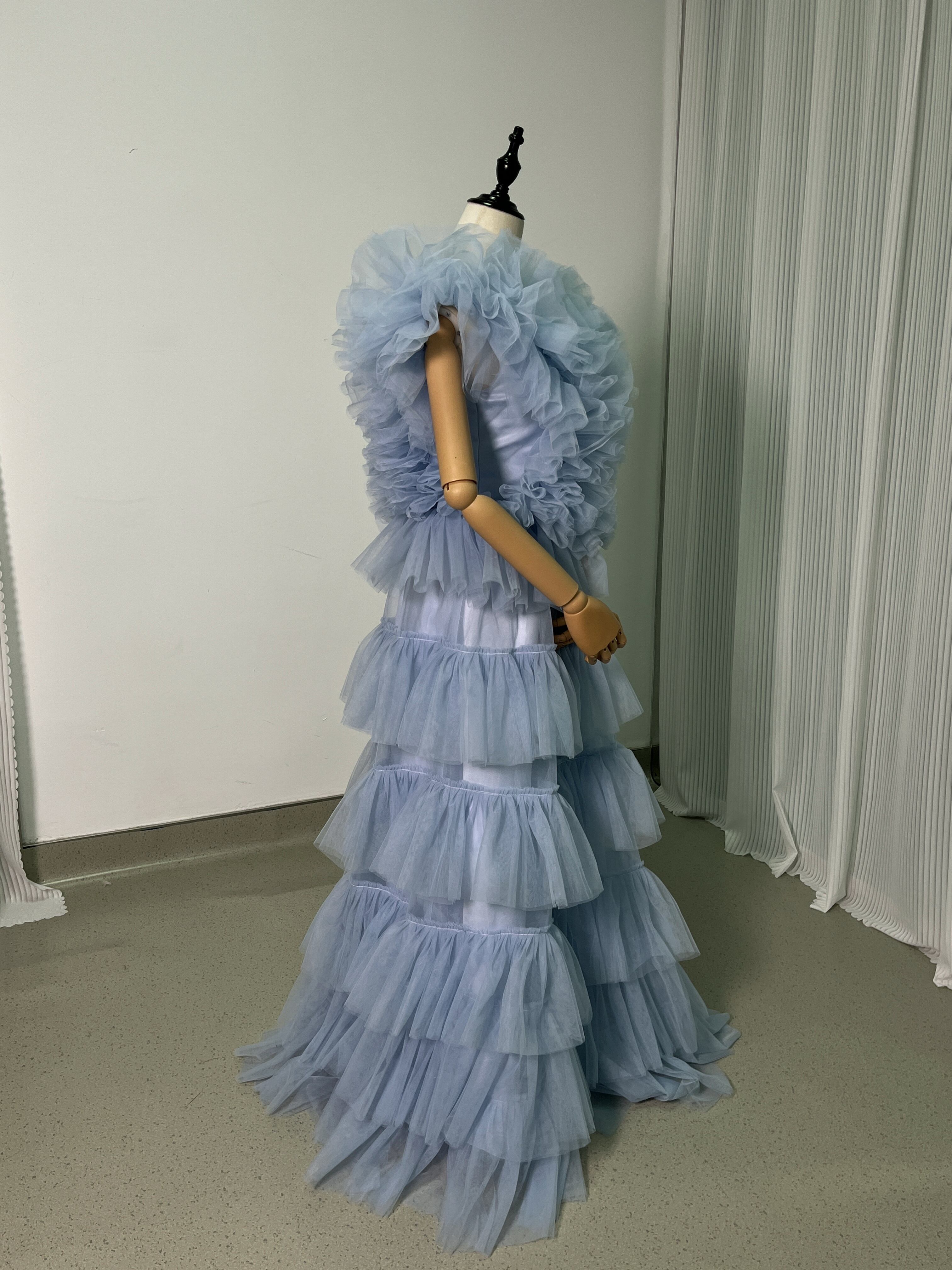 送料無料! ブルー カラードレス ソフトチュール 重ねたチュールスカート/二次会/挙式/前撮り/結婚式