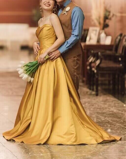憧れのドレス イエロー カラードレス ソフトチュール ファスナー /花嫁/結婚式