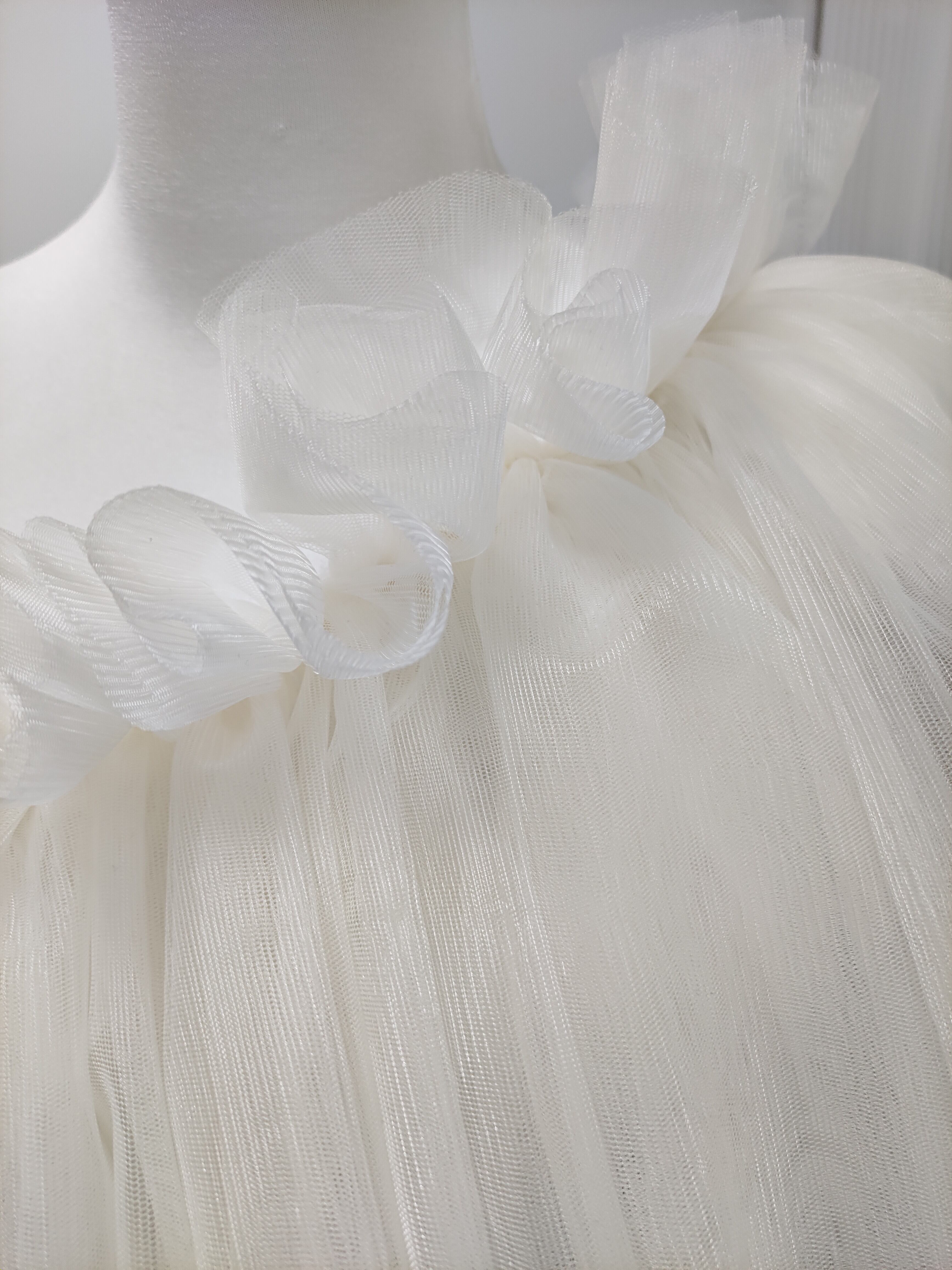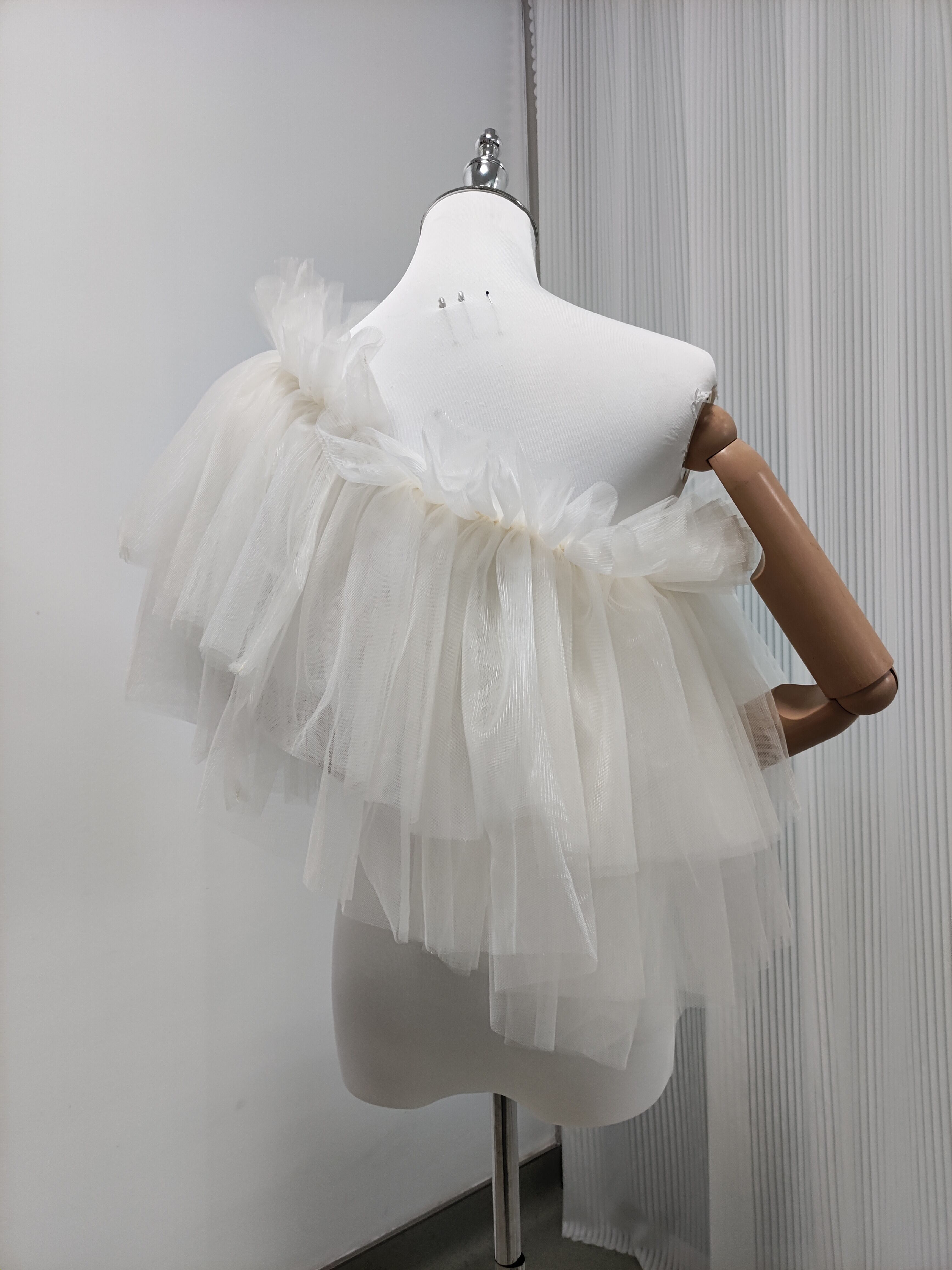 輝きな光彩を放つ ベージュ ソフトチュール ショール トップス