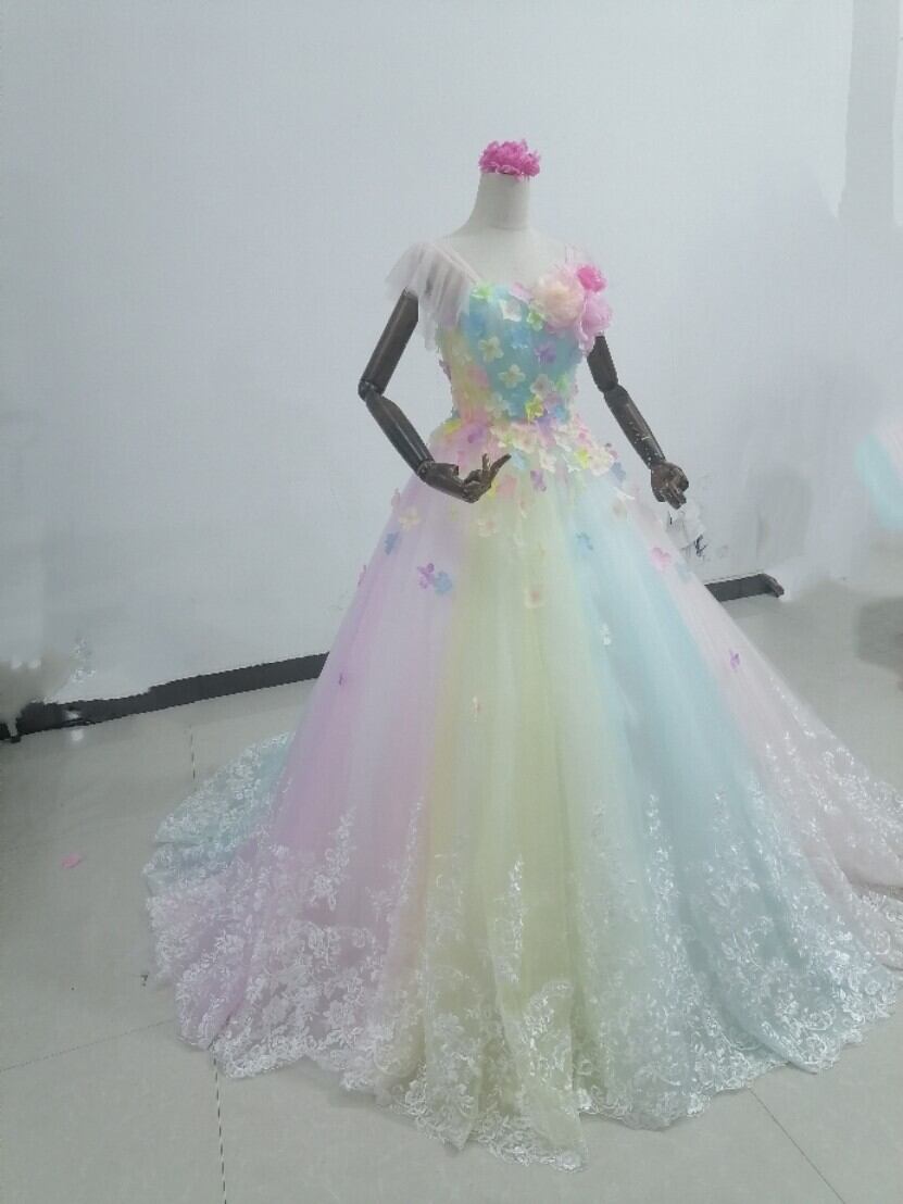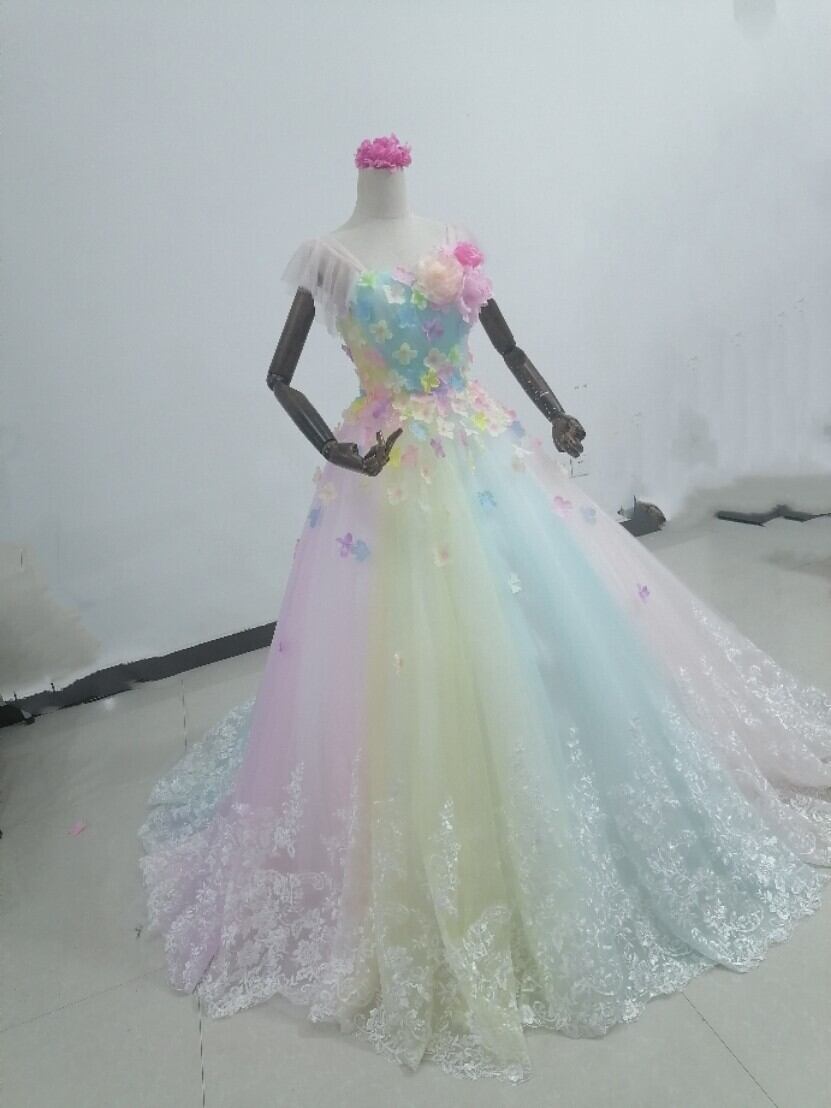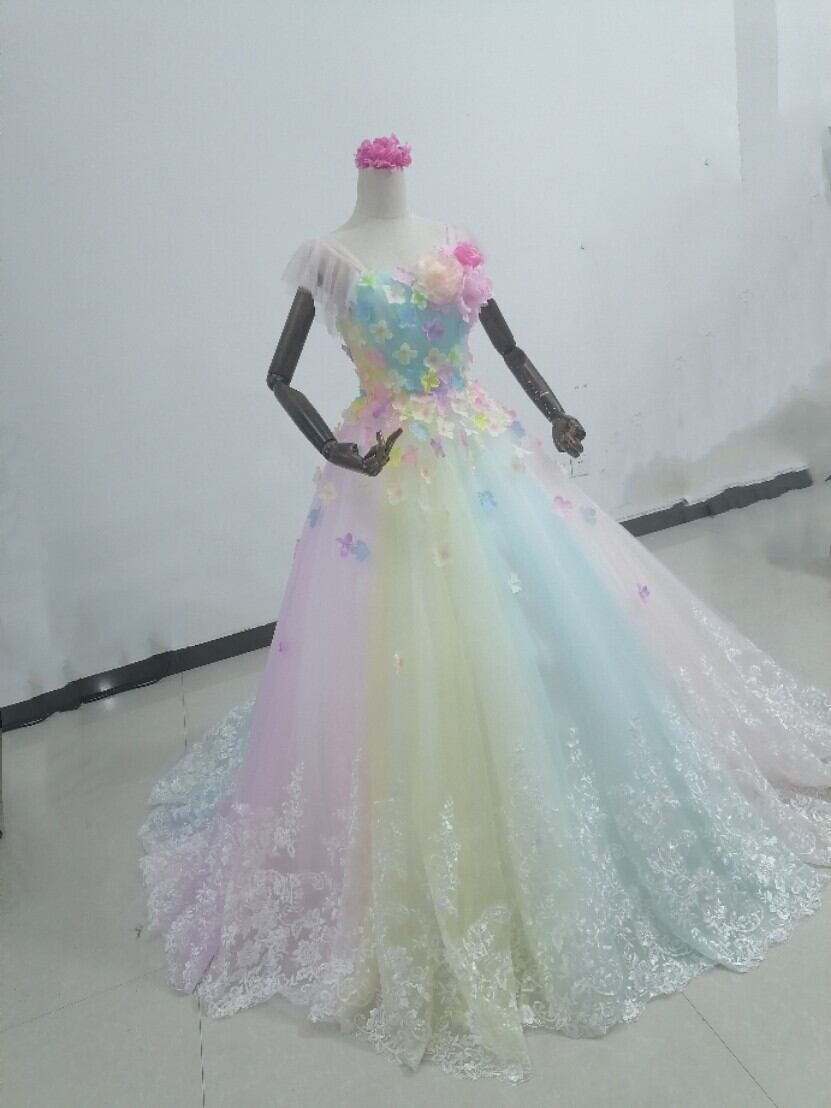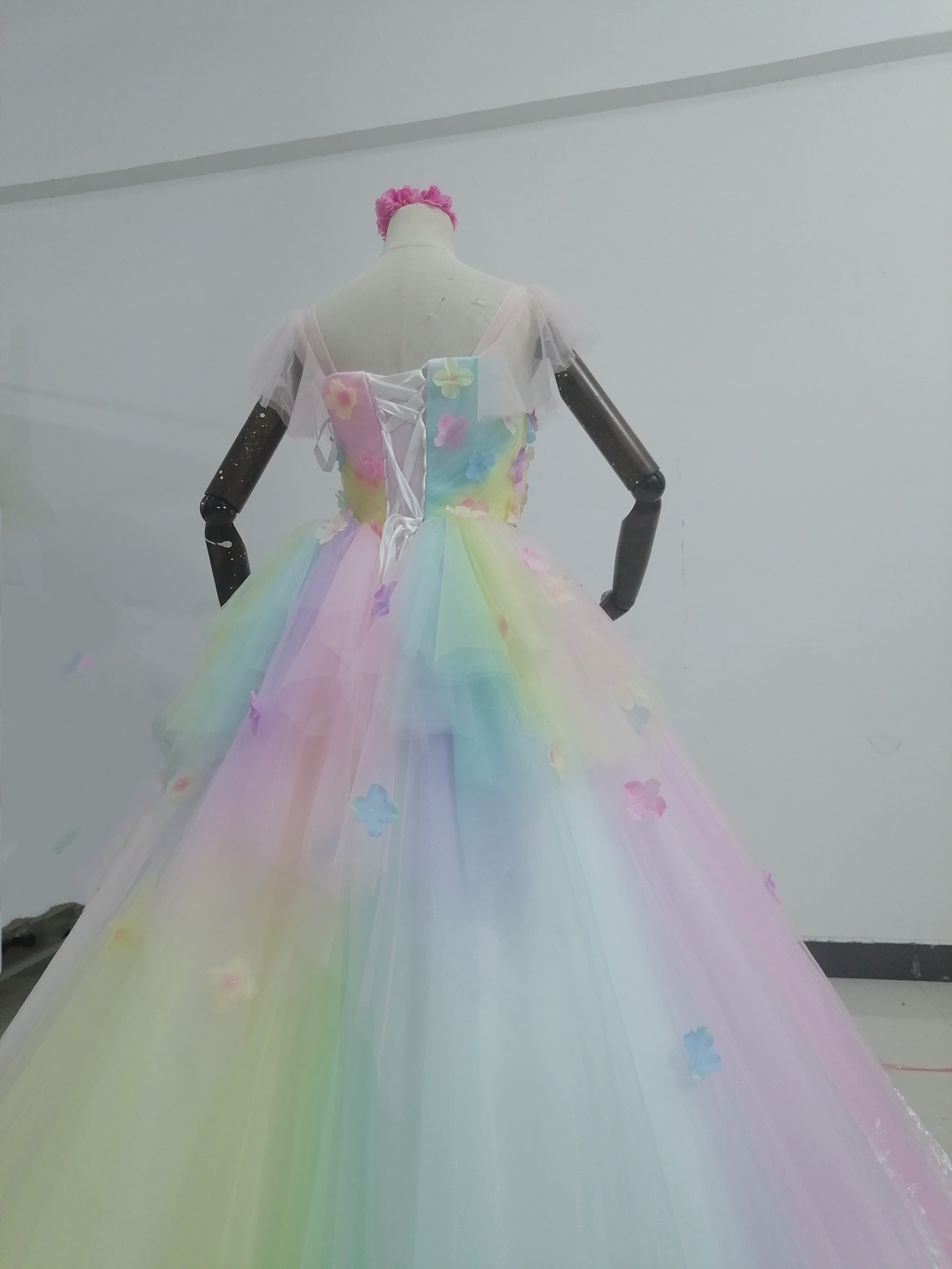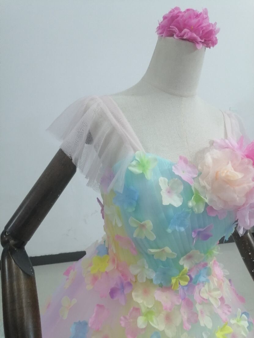 大好評中!カラードレス レインボースカート 3D立体レース刺繍 花びら付き/結婚式披露