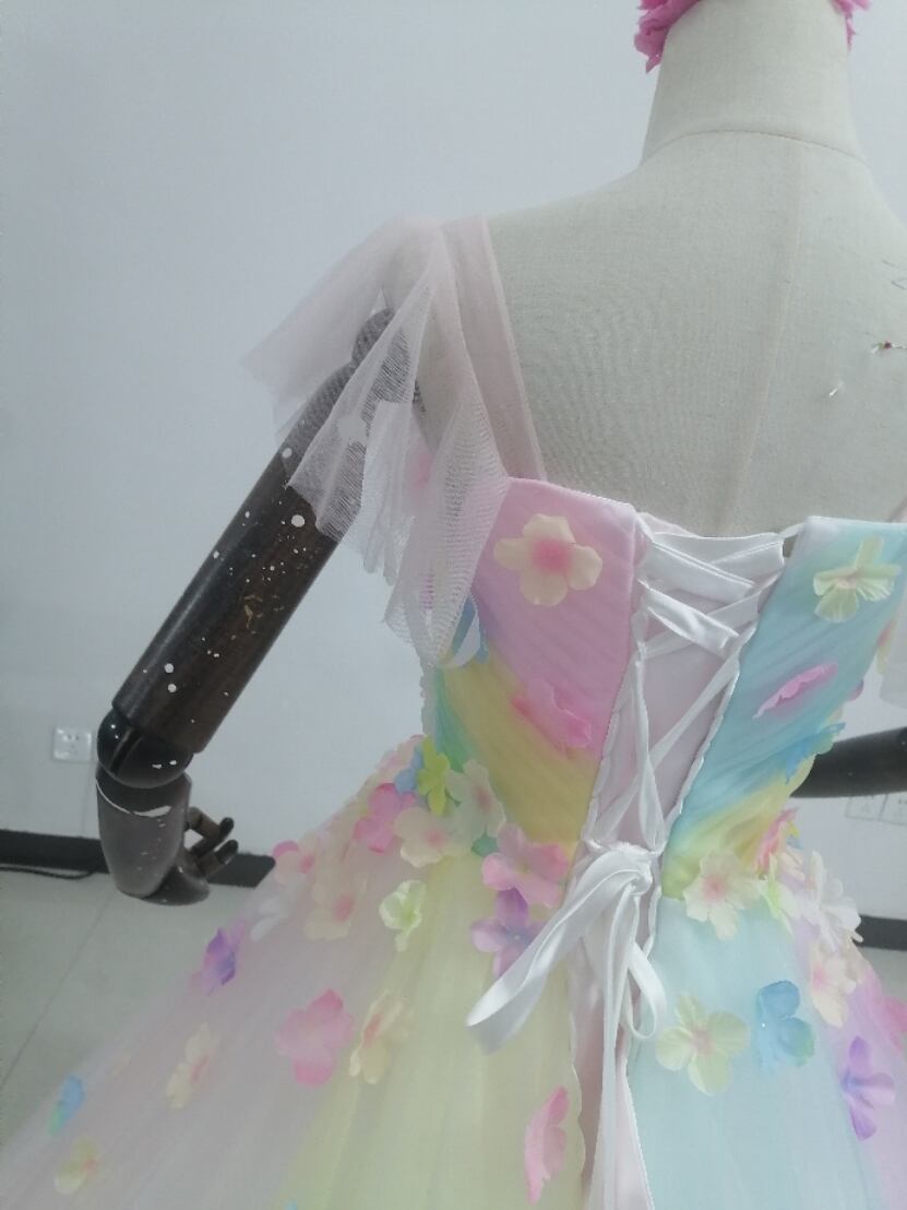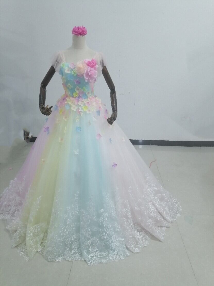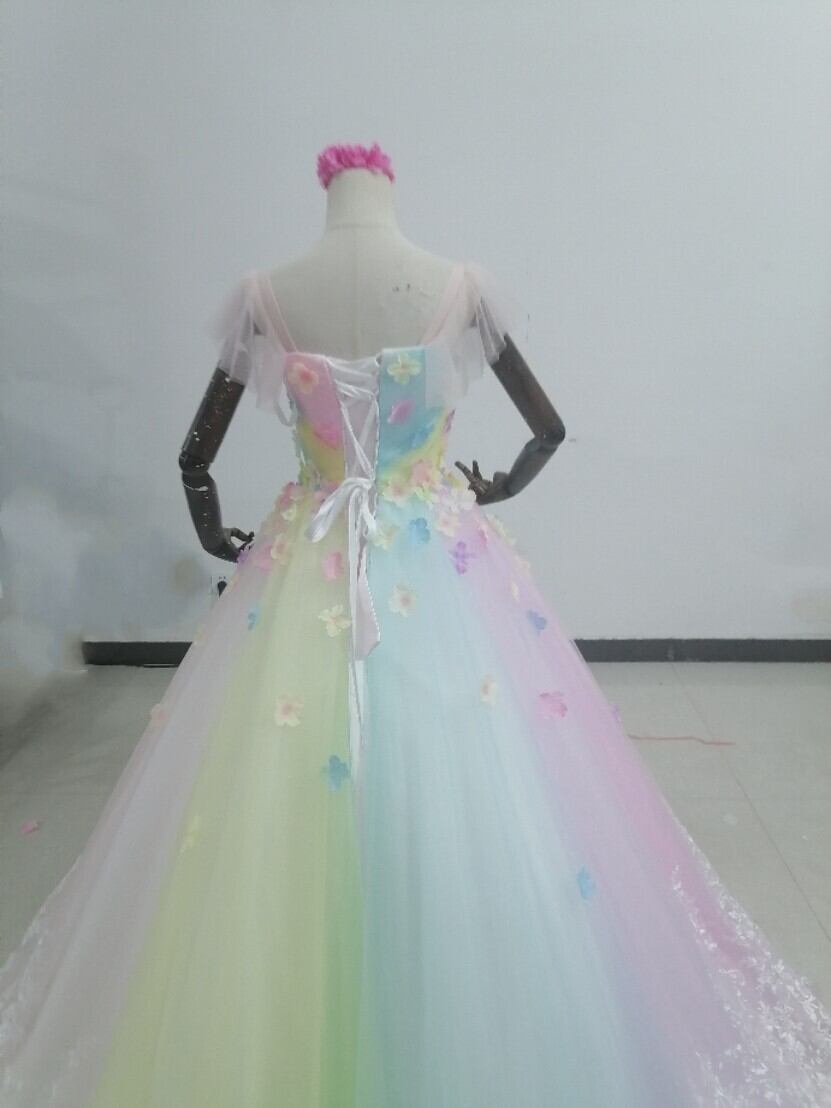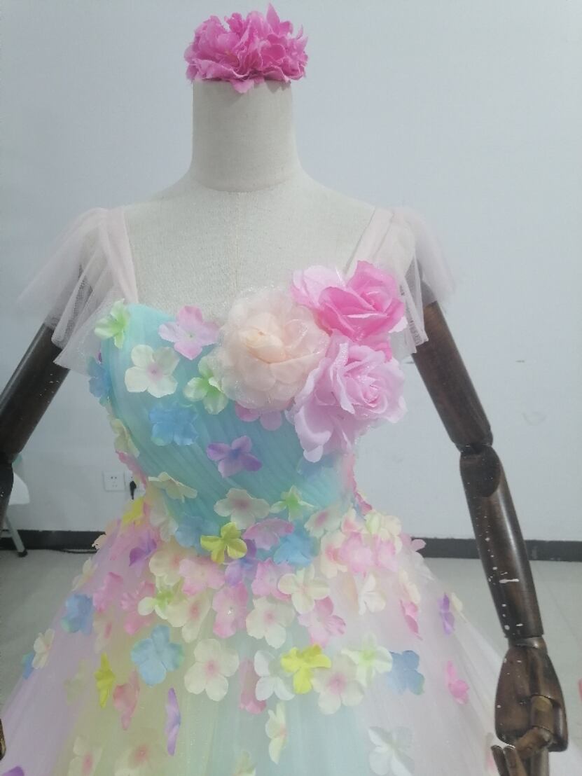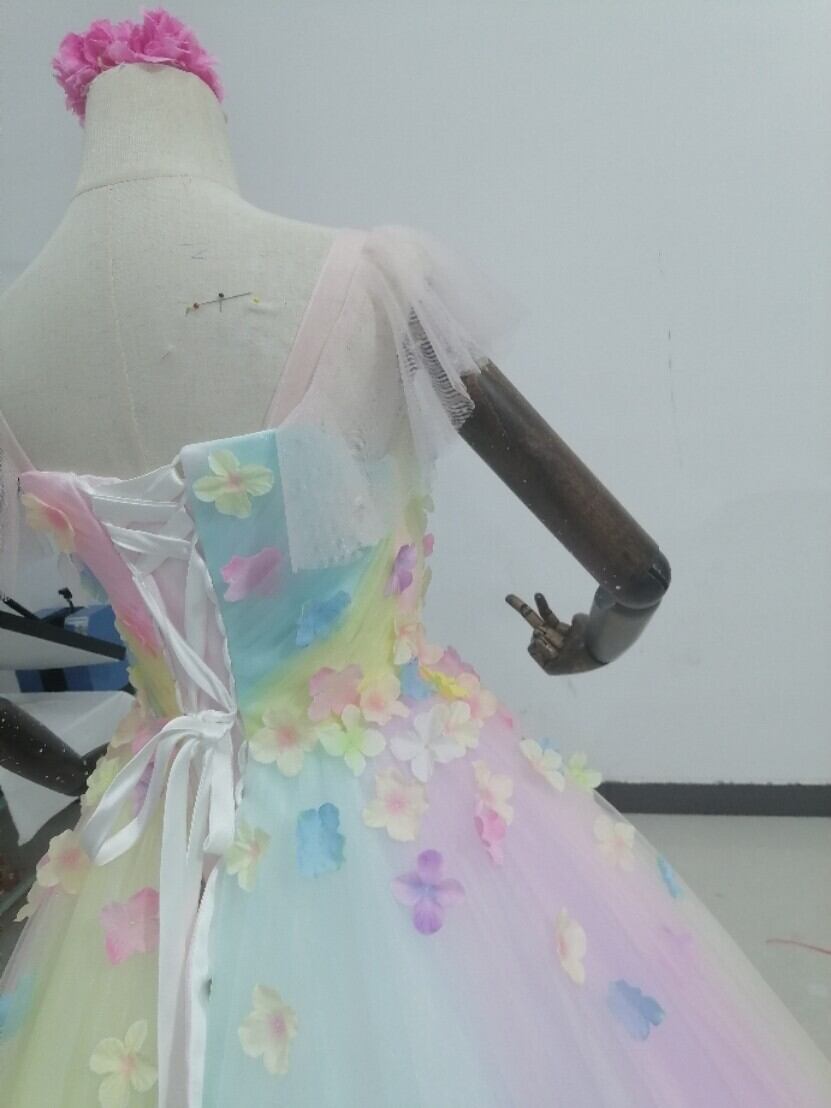 大好評中!カラードレス レインボースカート 3D立体レース刺繍 花びら付き/結婚式披露