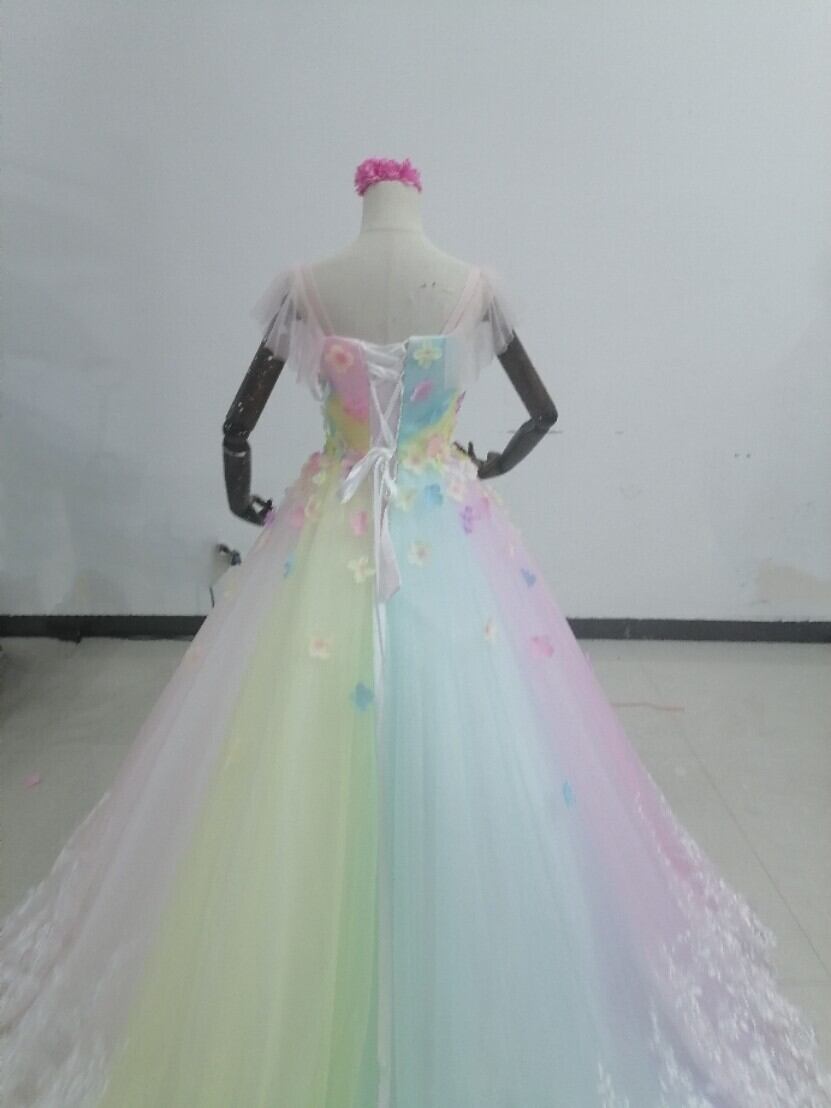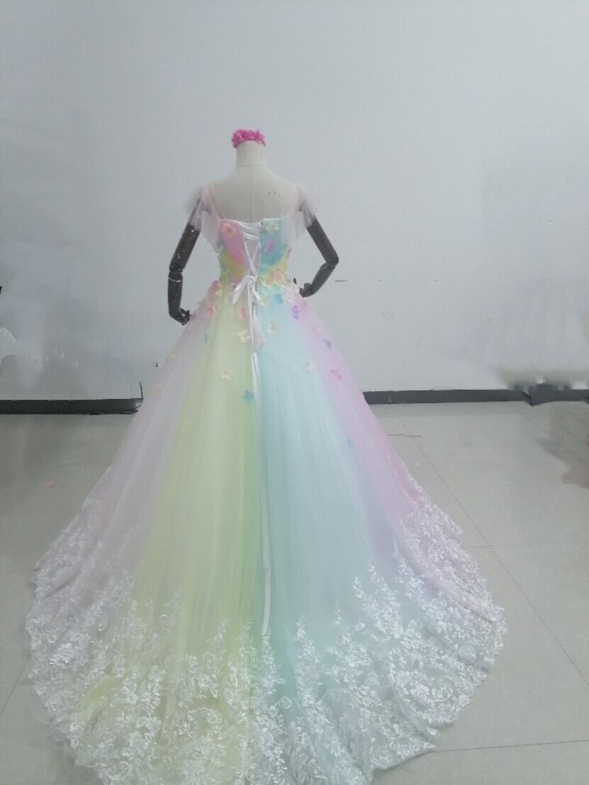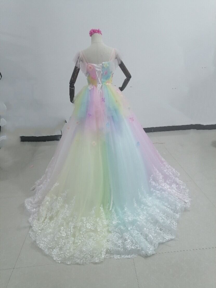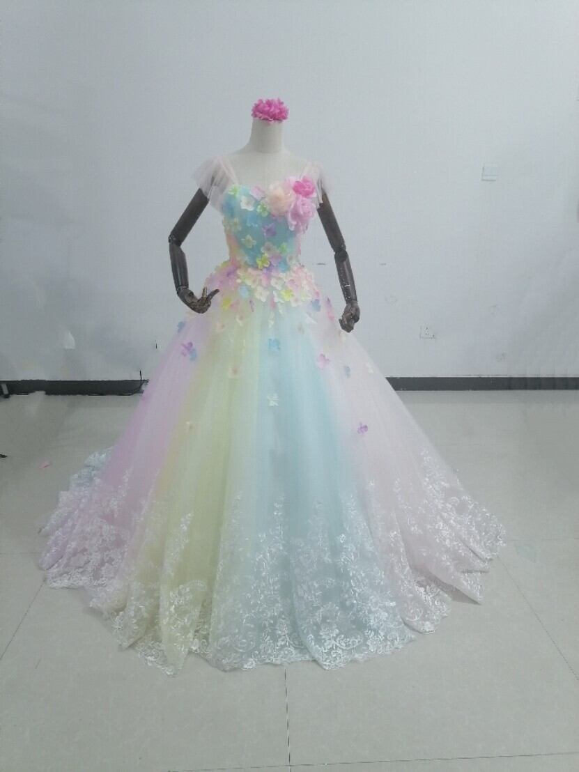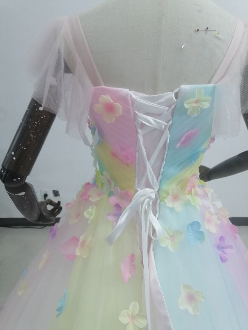 大好評中!カラードレス レインボースカート 3D立体レース刺繍 花びら付き/結婚式披露