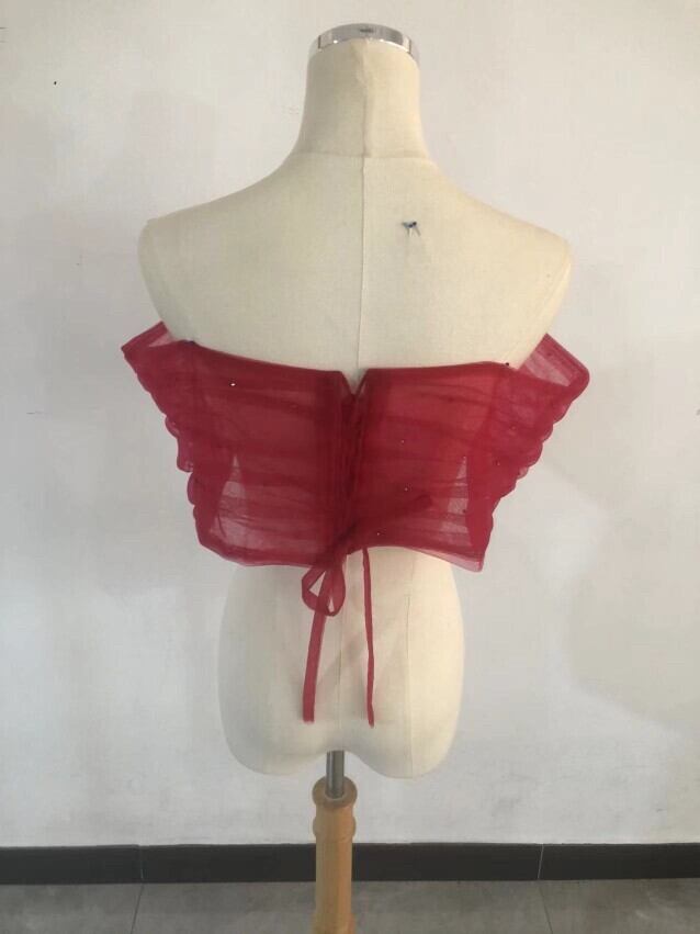 ポンチョ ワインレッドオフショルダー ロールカラー ドレスアレンジ 編み上げ 色直し サイズ調整可能