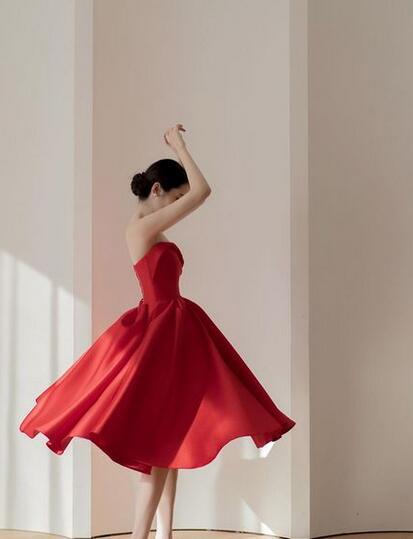 豪華!カラードレス 赤 光沢サテン Aライン ミニドレス パーティードレス セクシー 肩出し スリット