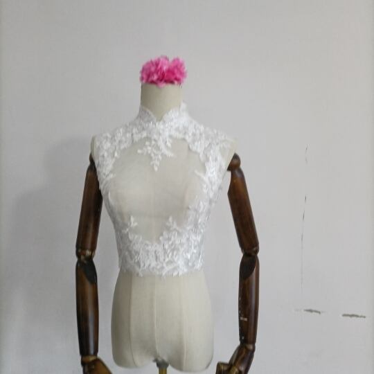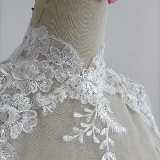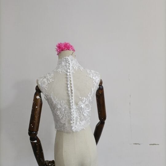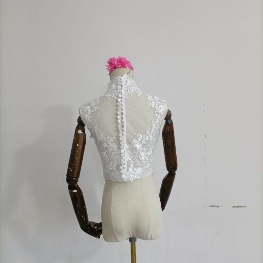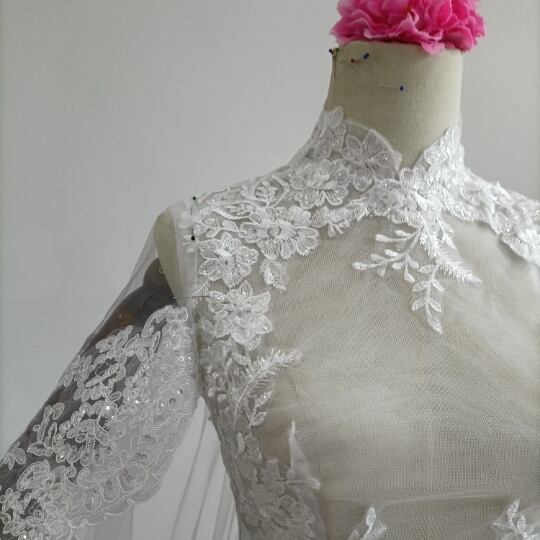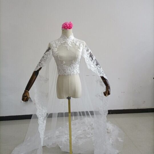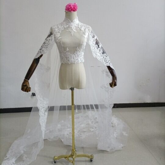 送料無料!美品!なくるみボタン ハイネック レースボレロトップス ウエディングドレス+ポンチョ華やかなトレーン