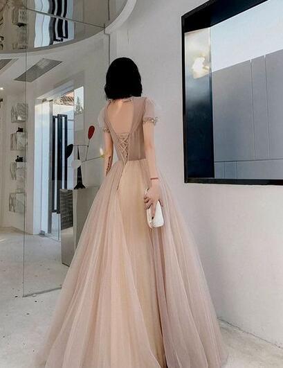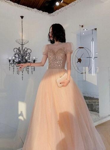 送料無料!カラードレス 柔らかく重ねたチュールドレス パフスリーブ 背中見せ バックレス 結婚式/披露宴/パーティー