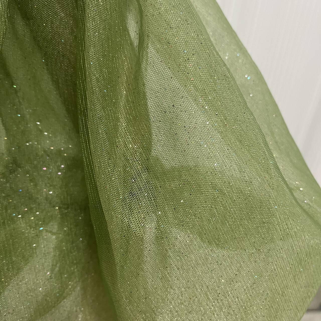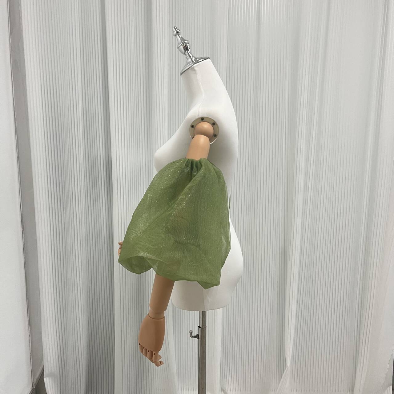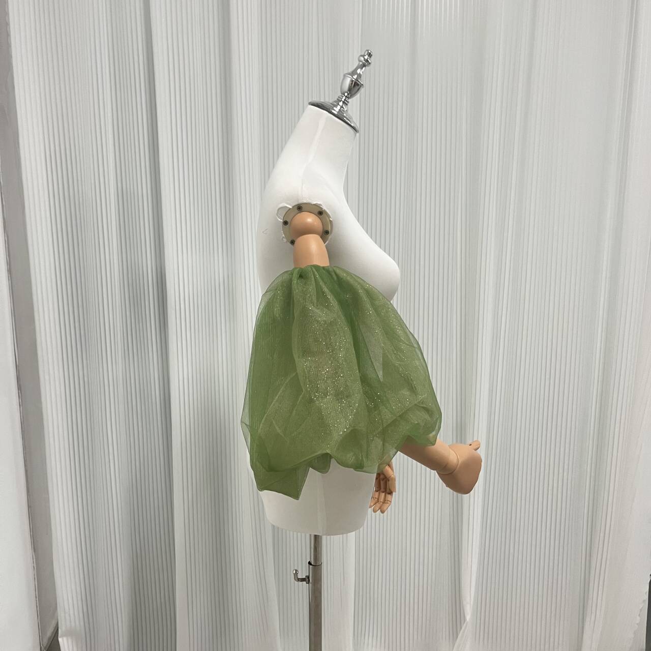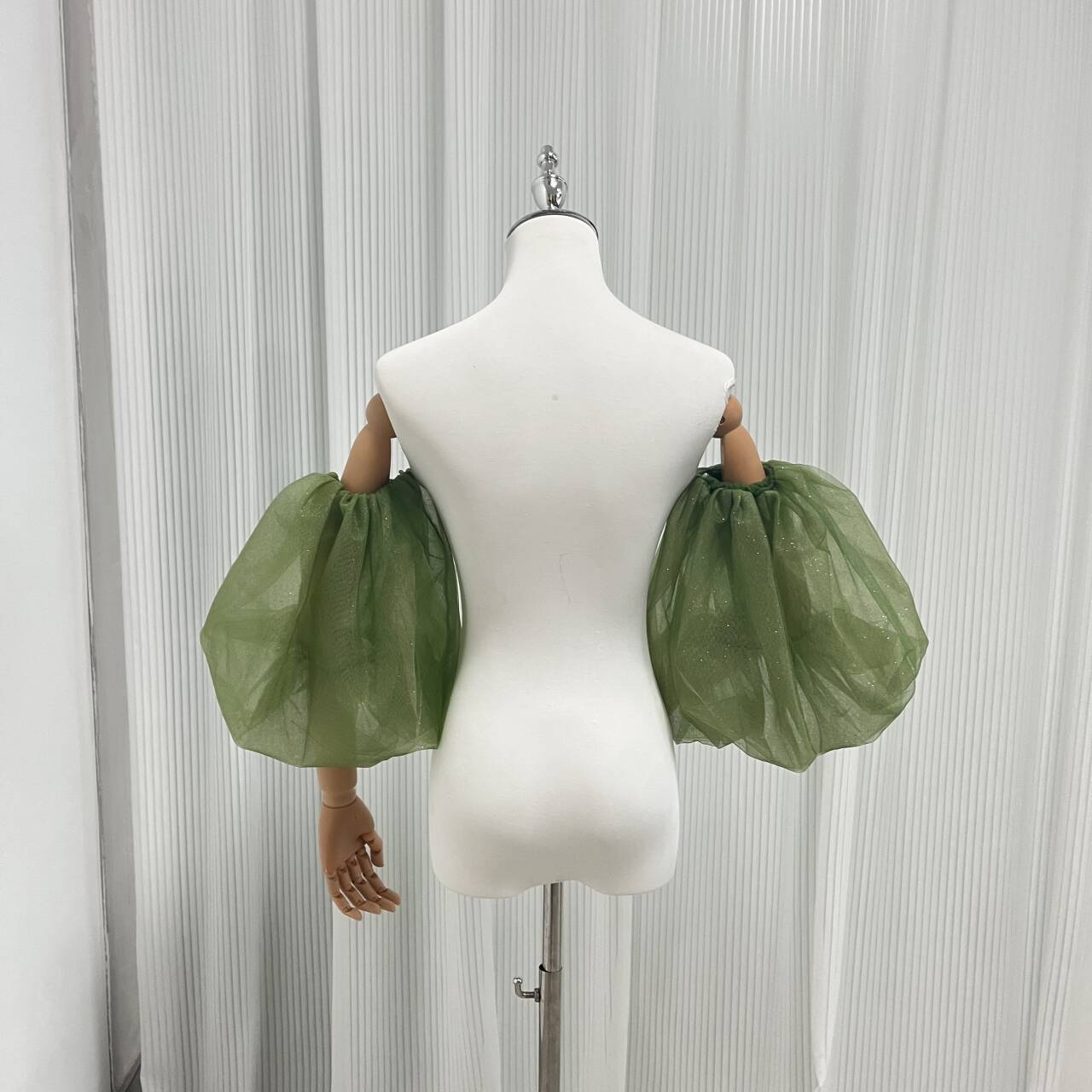 大人気上昇 グリーン キラキラチュール 取り外し袖 ショルダーの付け袖 ふわふわオーガンジーパフスリーブ オーダー可能