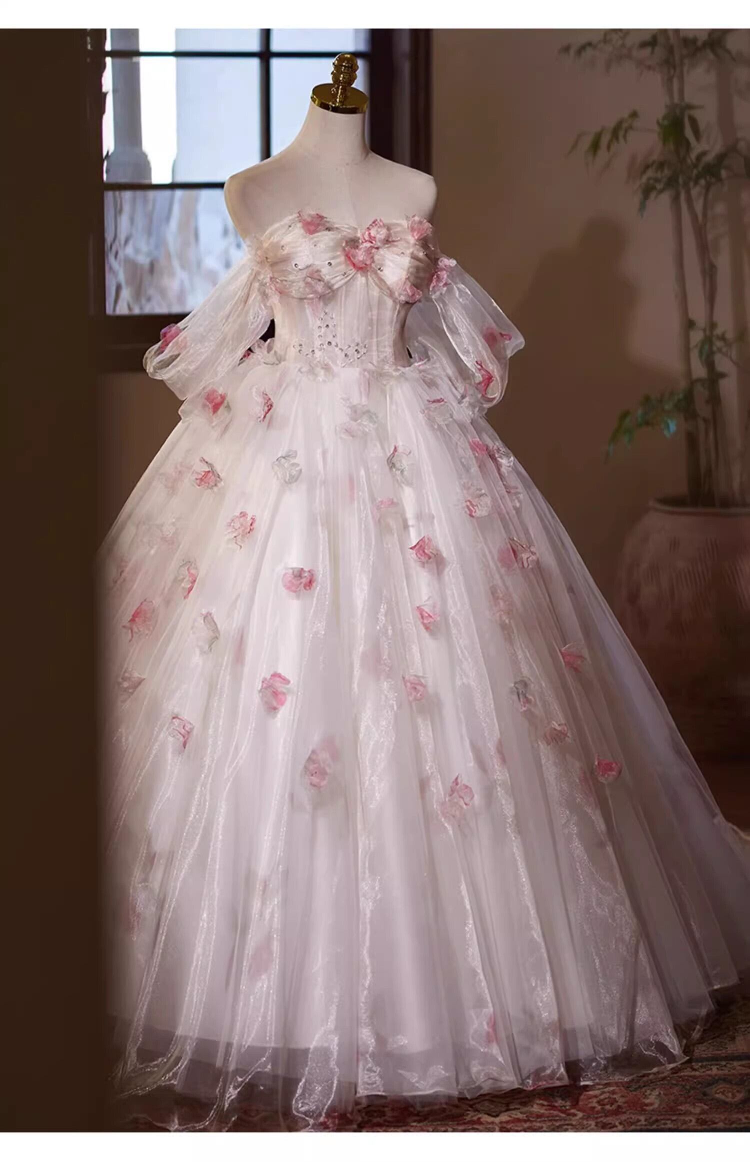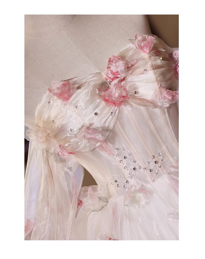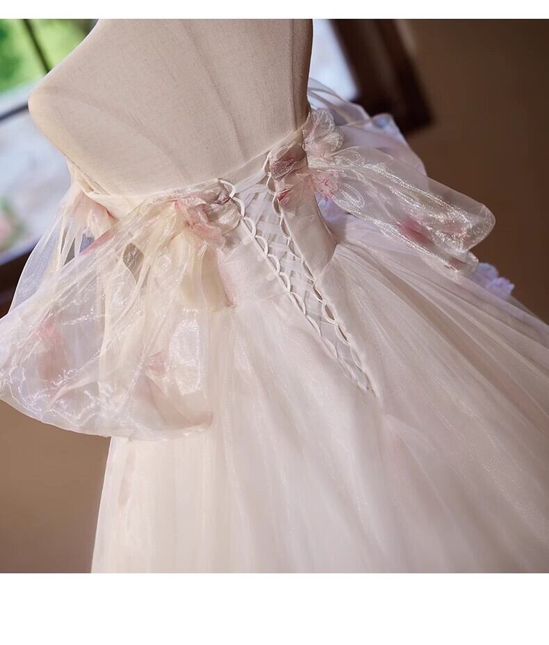 輝きな光彩を放つ カラードレス 上品花レース キラキラチュール ソフトチュール /前撮り/結婚式