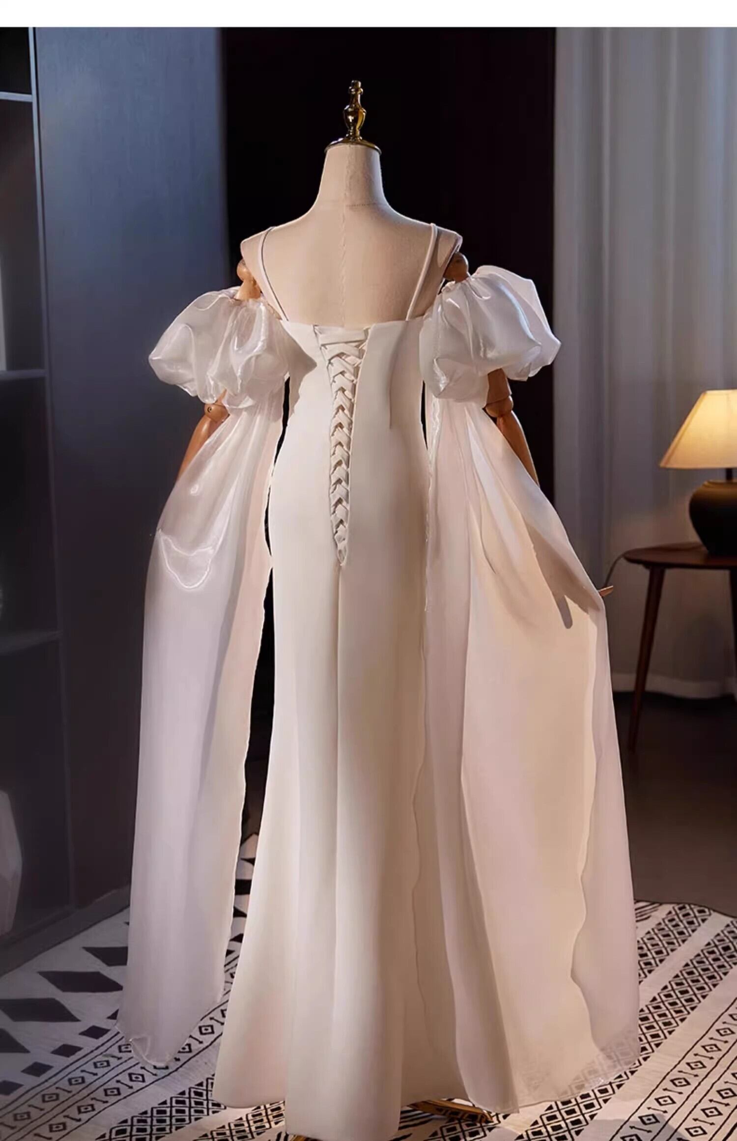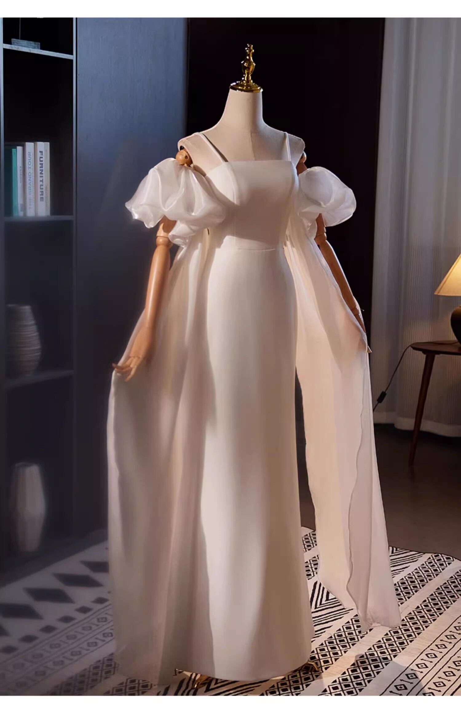 トレンドのオフショルダー キャミソール ウェディングドレス 取り外し袖  お呼ばれ/二次会