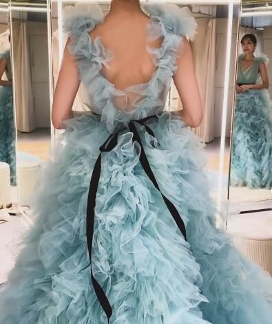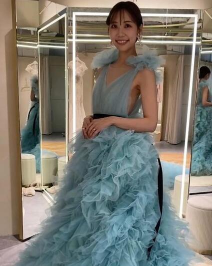 送料無料!美品!カラードレス ソフトチュール 重ねたチュール 爽やかで優しいブルー 二次会/挙式/前撮り/結婚式