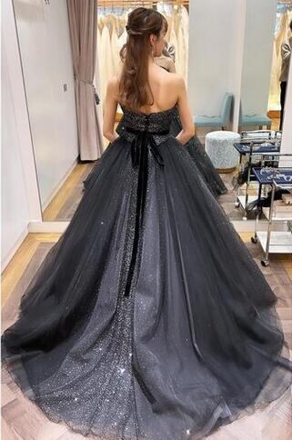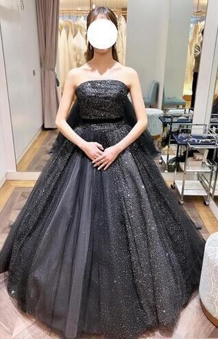 豪華!黒 カラードレス 華やかなトレーン キラキラスパンコール チュール ノースリーブ 二次会/挙式/前撮り/結婚式