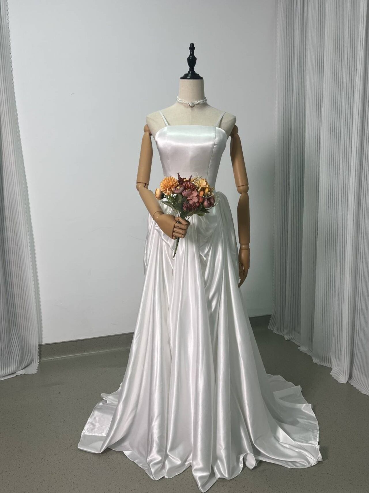 送料無料!おしゃれ上級者に人気!ホワイト キャミソール ウエディングドレス 前撮り 結婚式