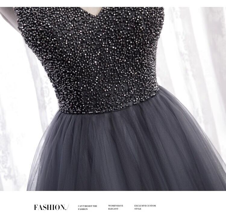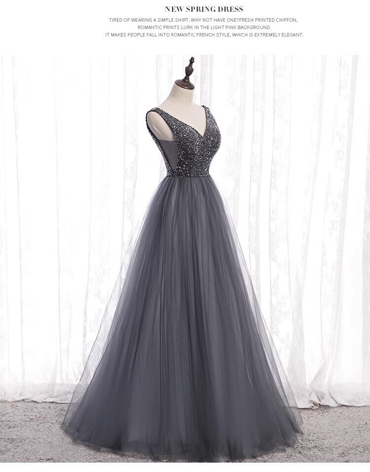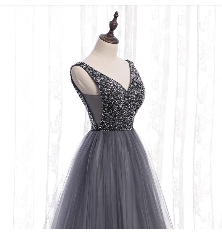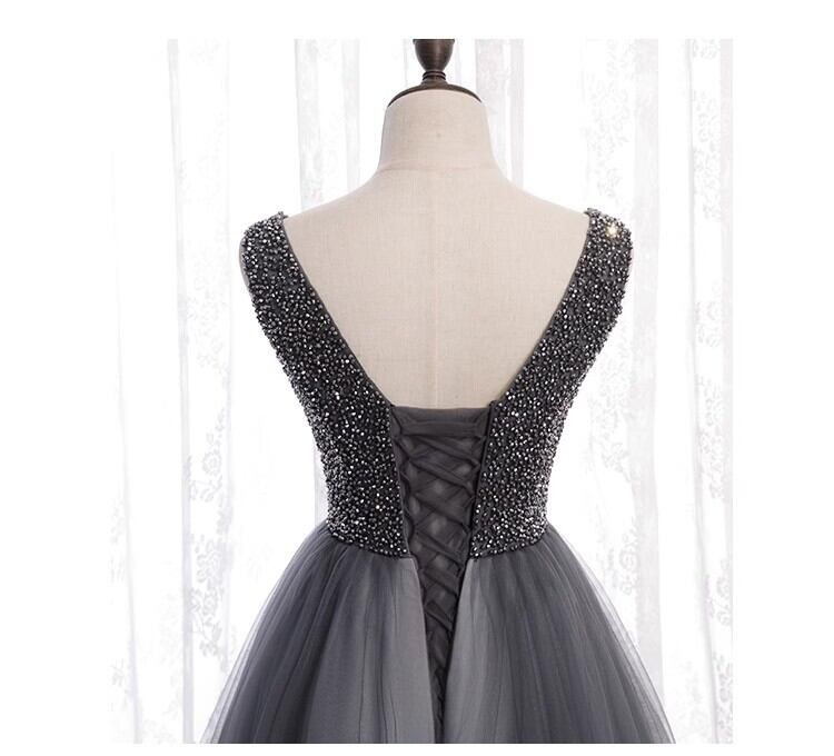 Vネック グレー カラードレス チュールスカート 演奏会/音楽会