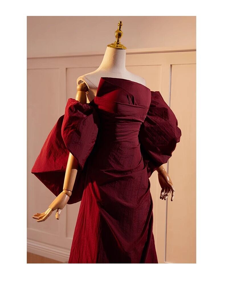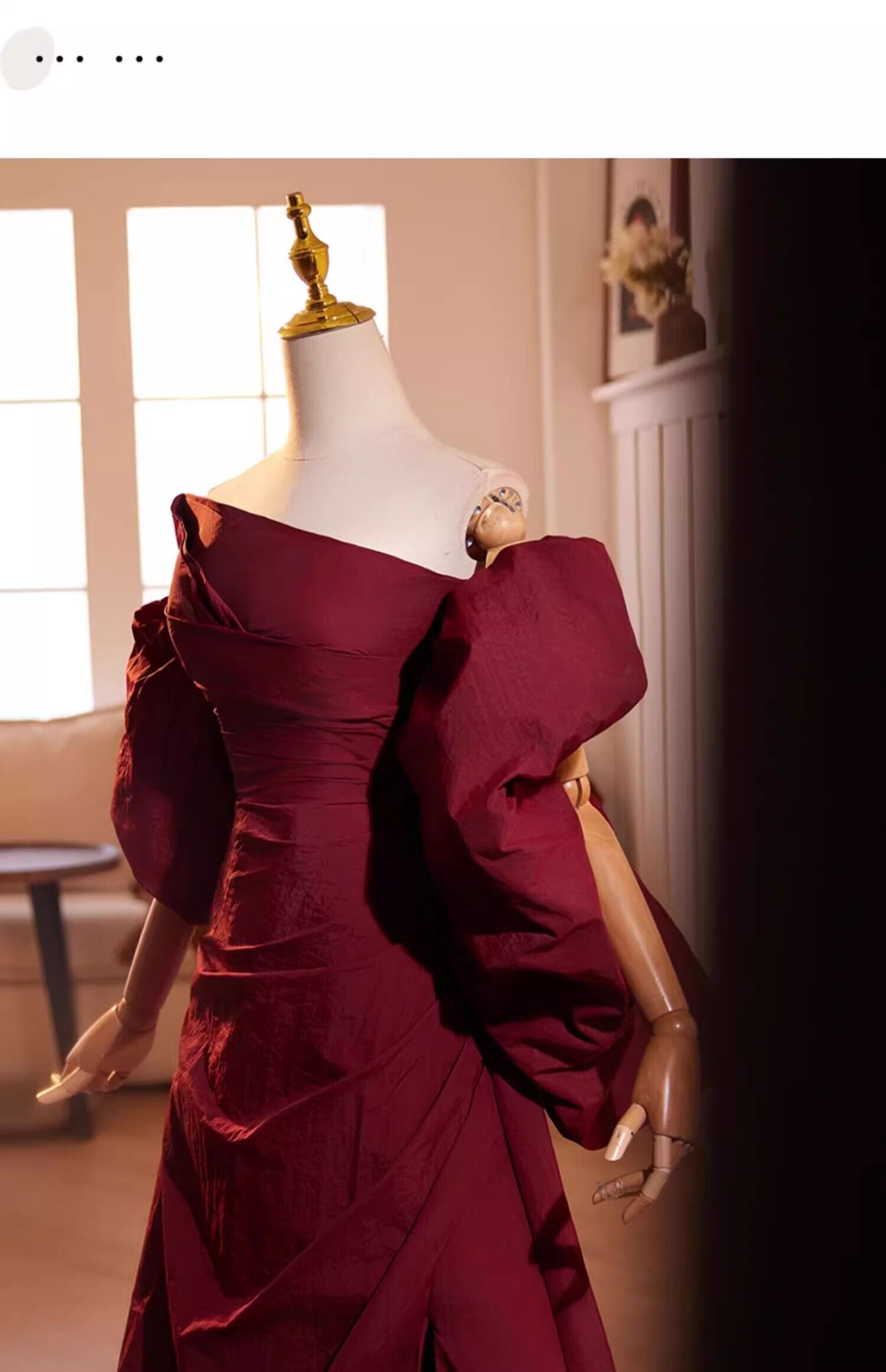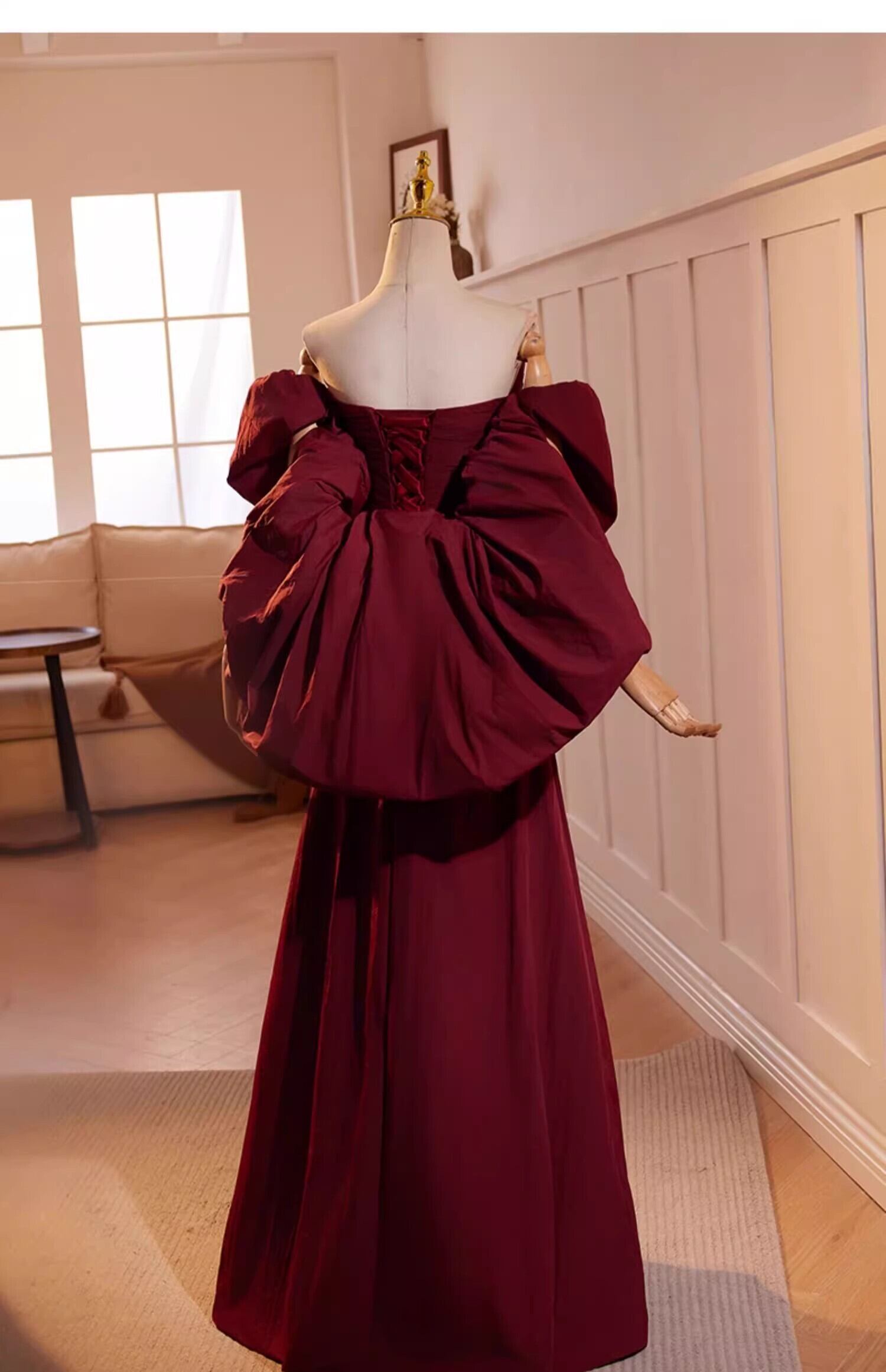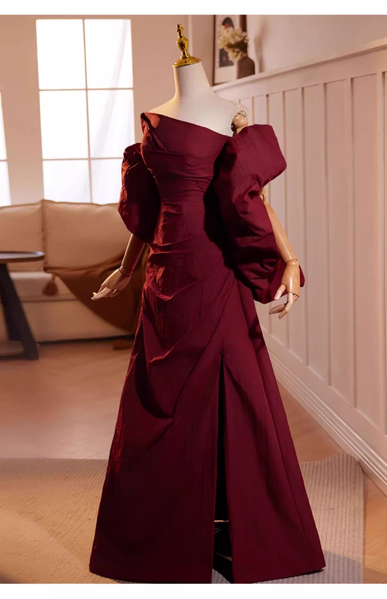 優雅なシルエット ボルドー色 カラードレス フロントスリッ ふっくら柔らかなバックリボント演奏会/音楽会