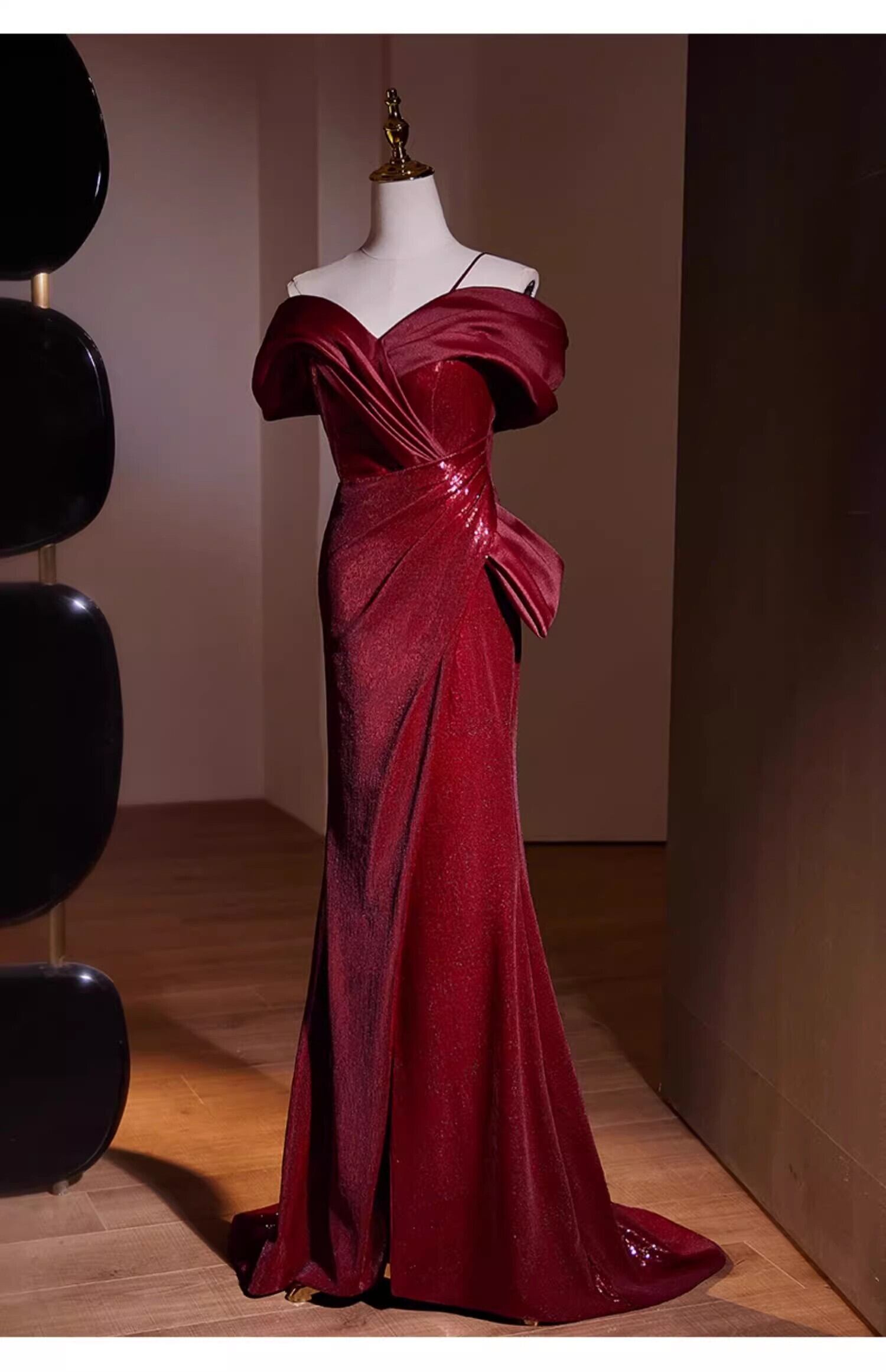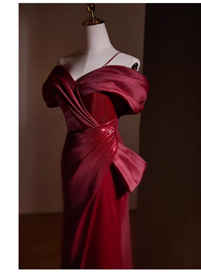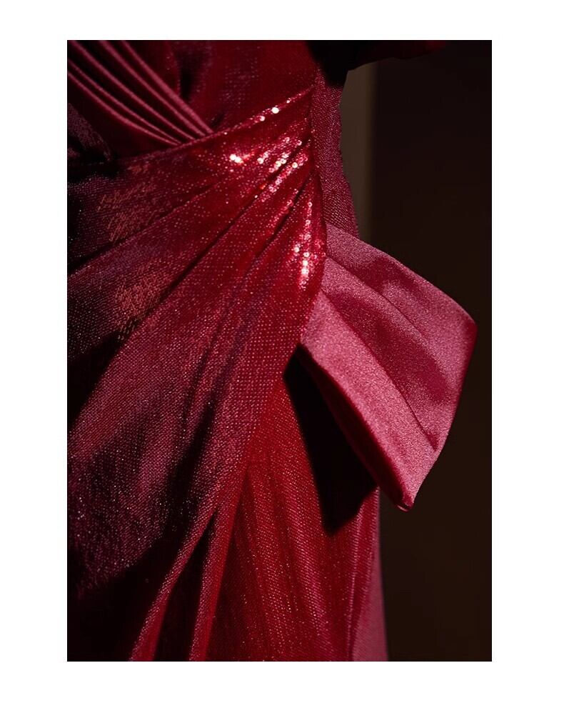 優雅なシルエット ボルドー色 カラードレス フロントスリッ 演奏会/音楽会