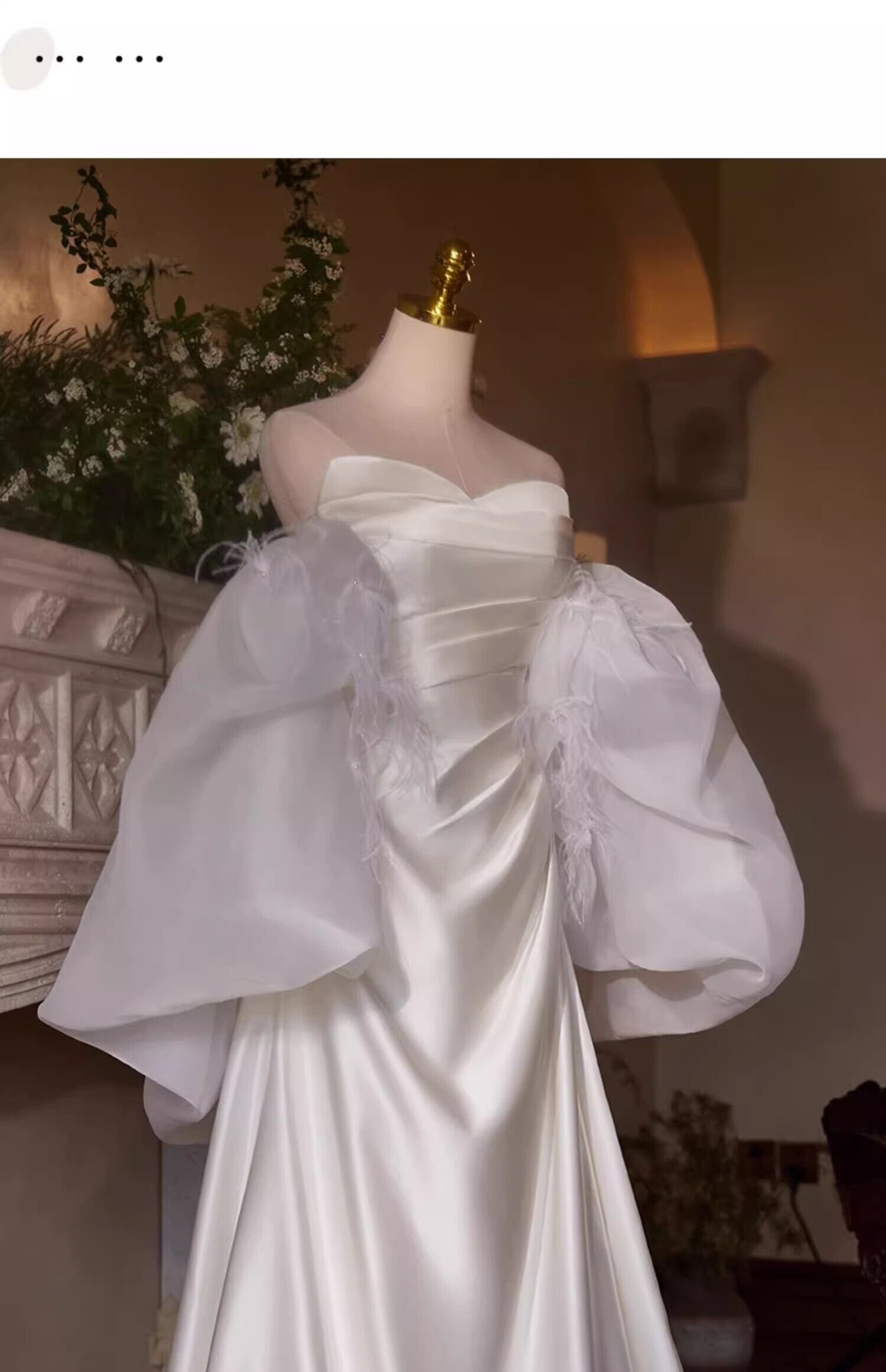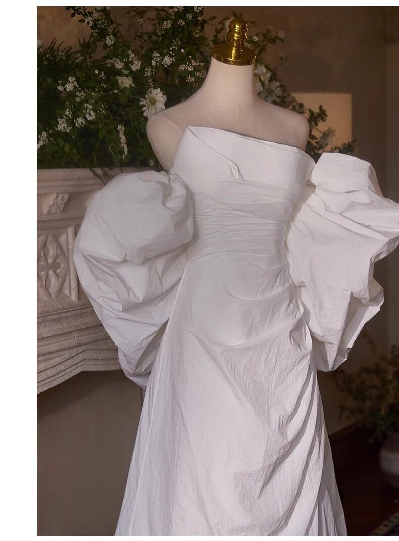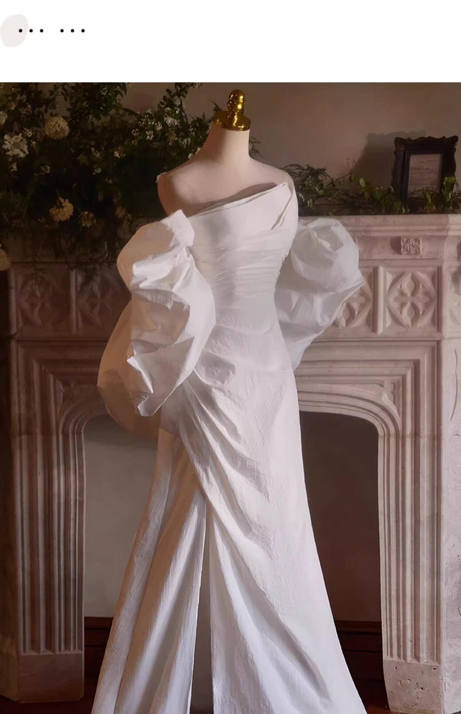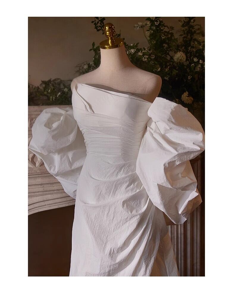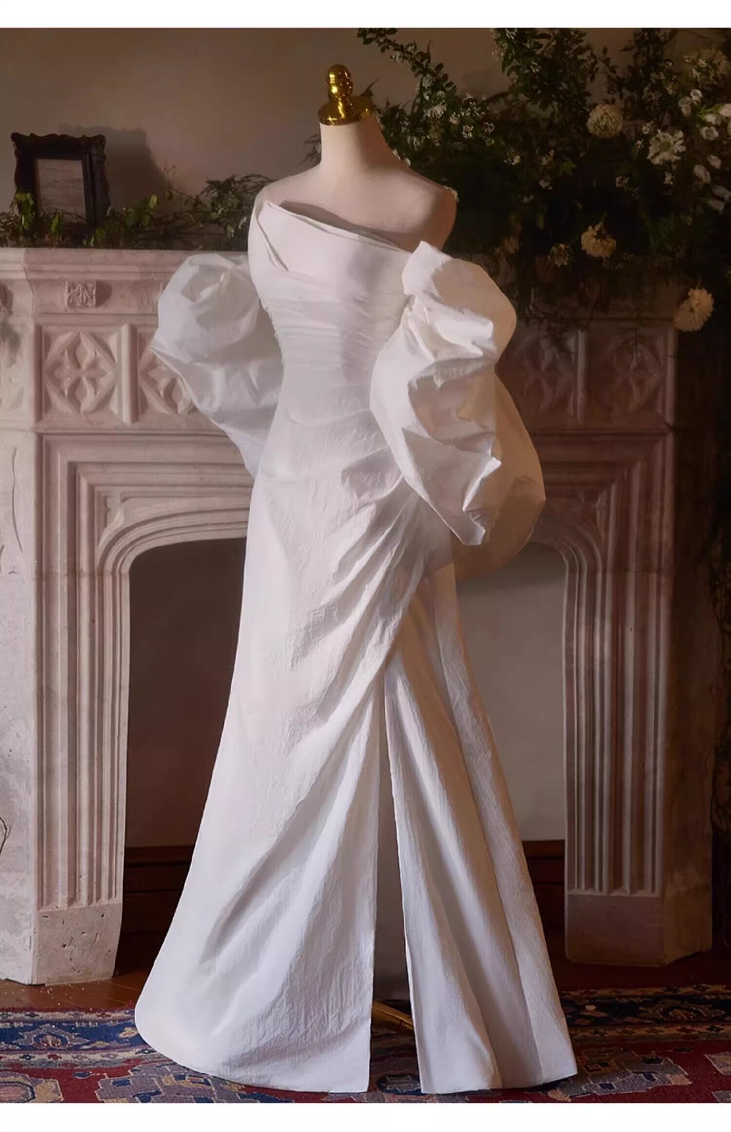優雅なシルエット ホワイト 姫袖 ウエディングドレス フロントスリッ 演奏会/音楽会