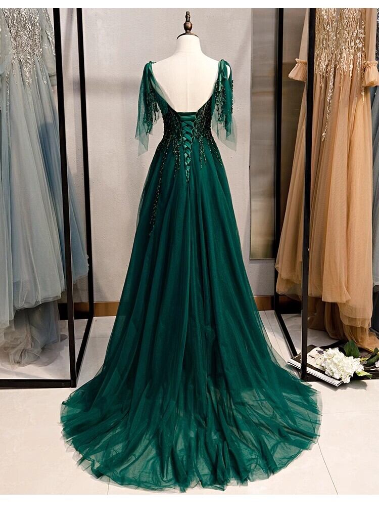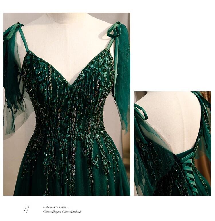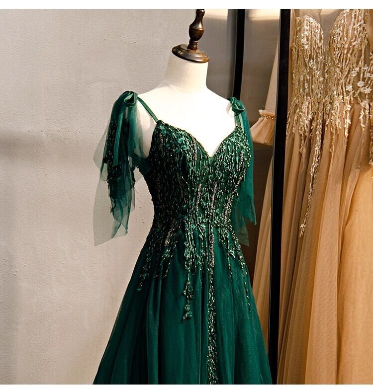 高級 グリーン キャミソール カラードレス リーフ刺繍 チュールスカー 演奏会/音楽会
