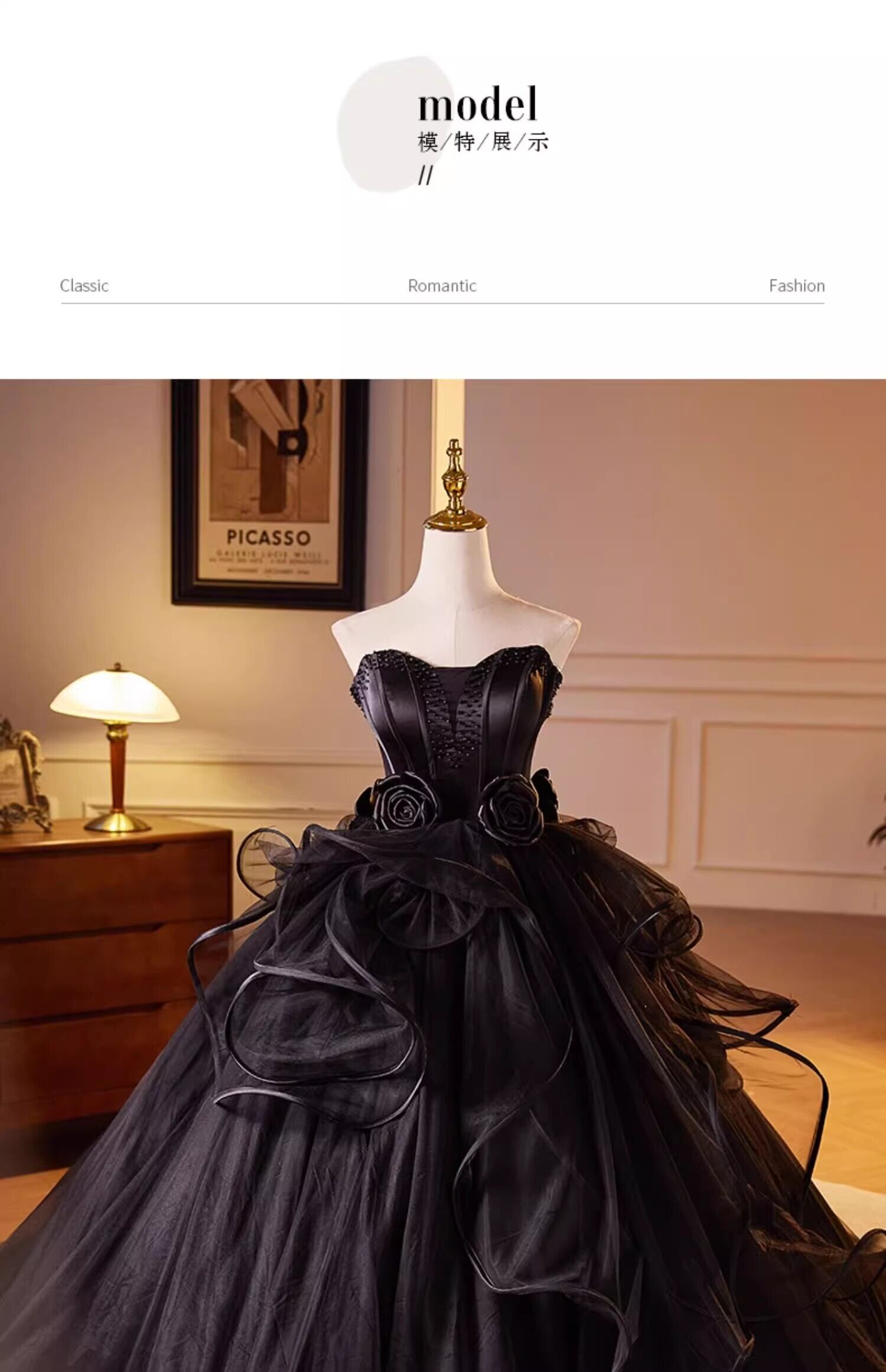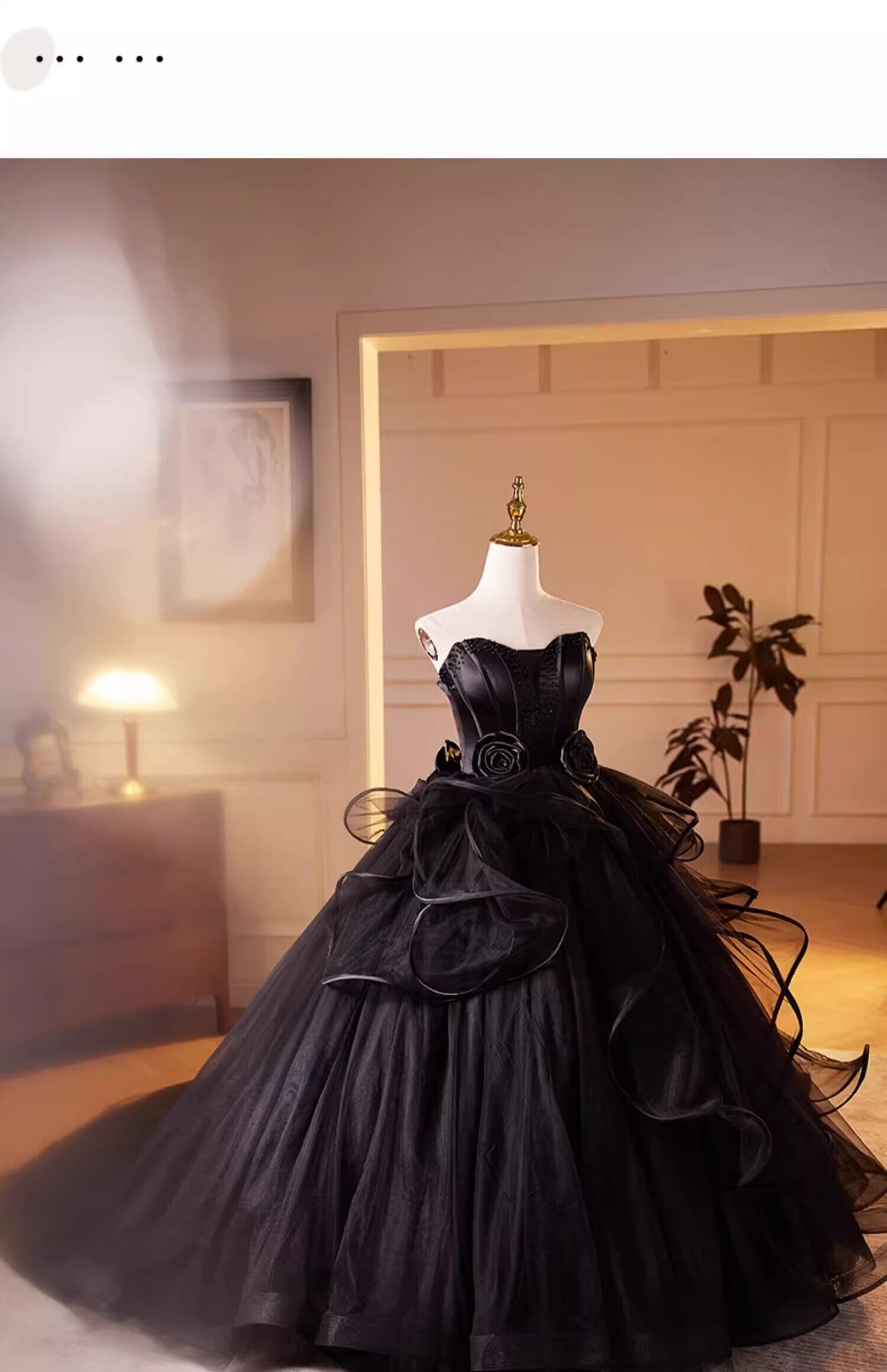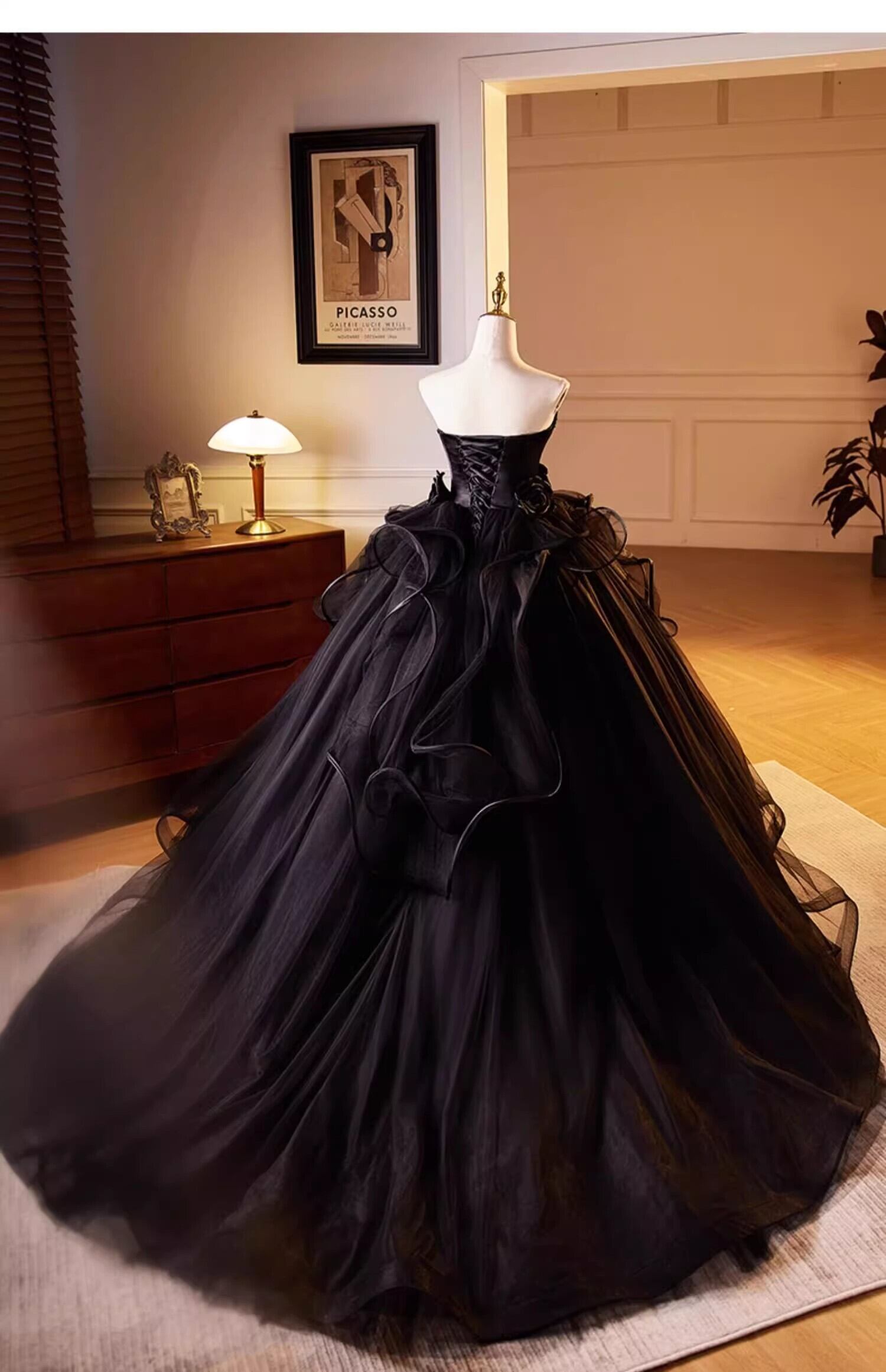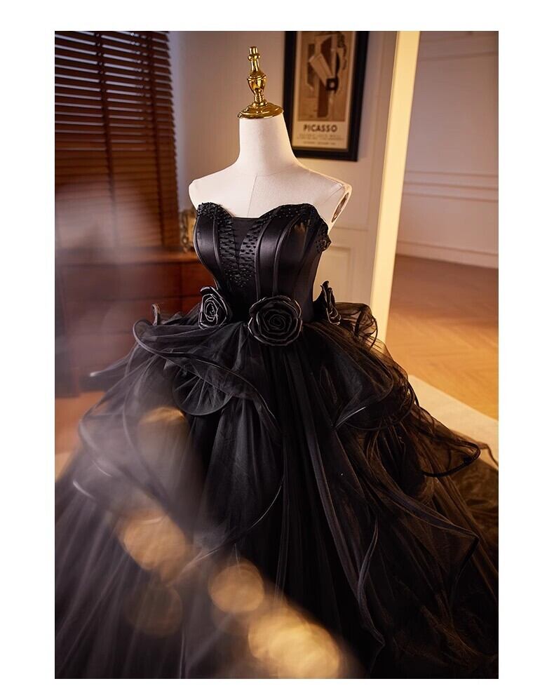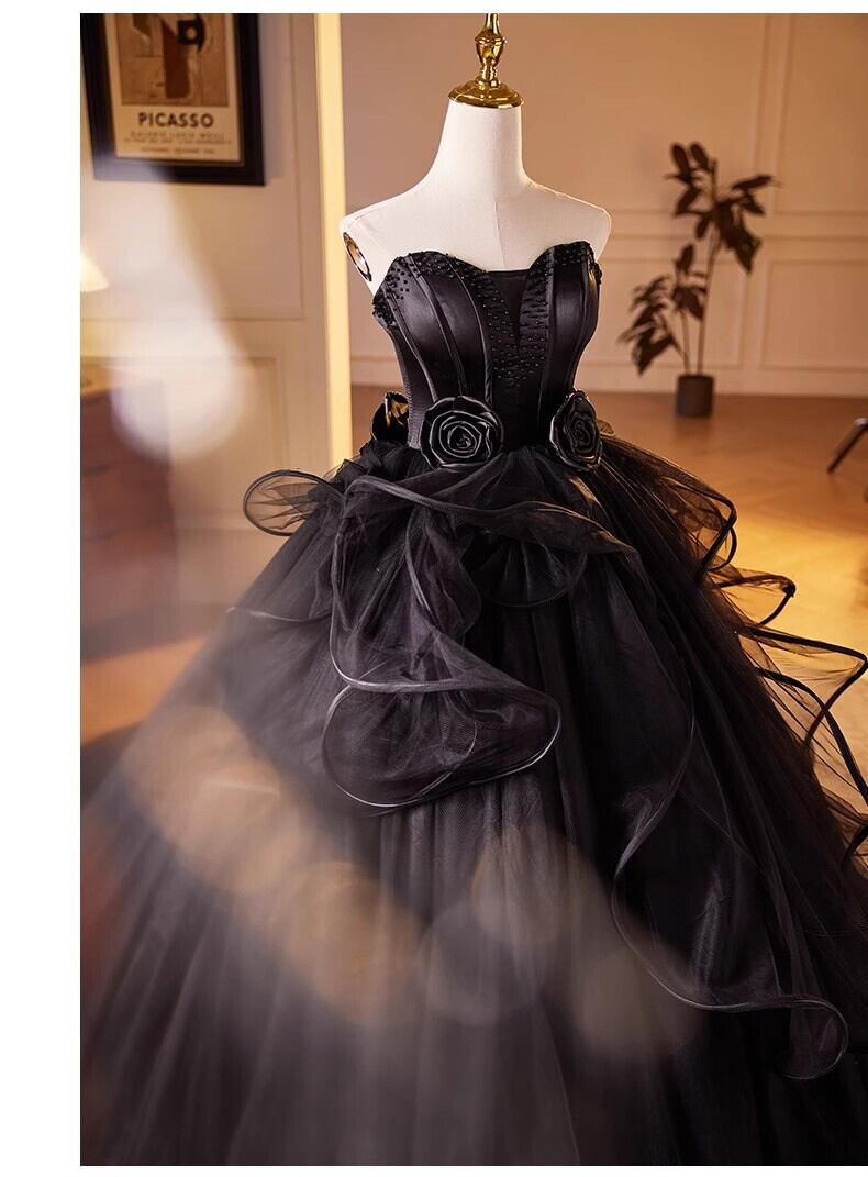 雅やか 黒 ベアトップ カラードレス プリンセスライン 演奏会/音楽会