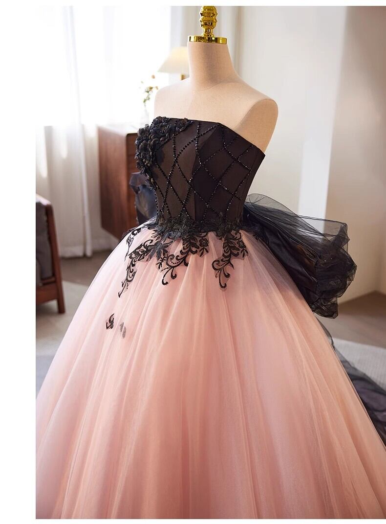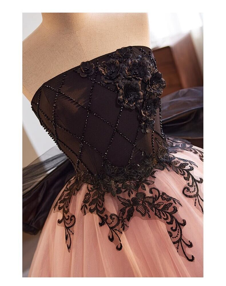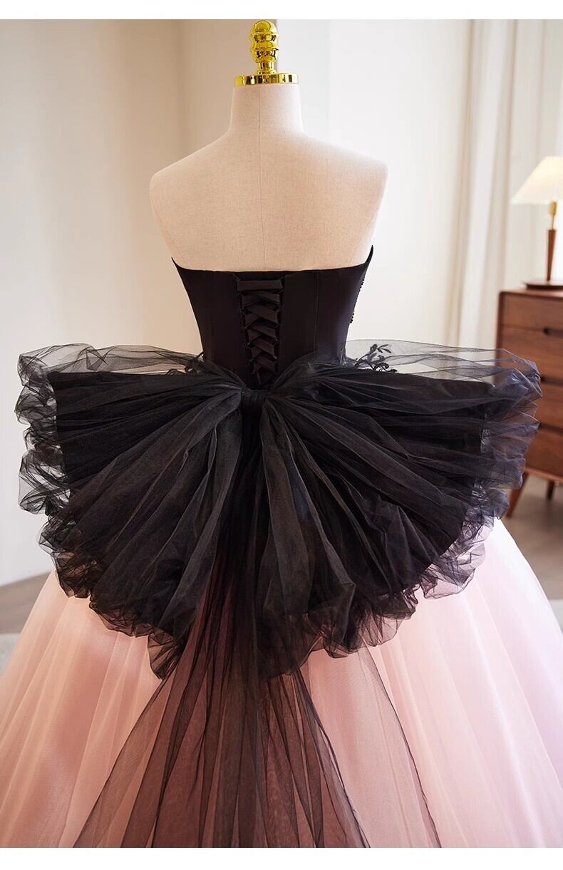 高級黒 カラードレス 花モチーフ 可愛い リボン プリンセスライン 演奏会/音楽会