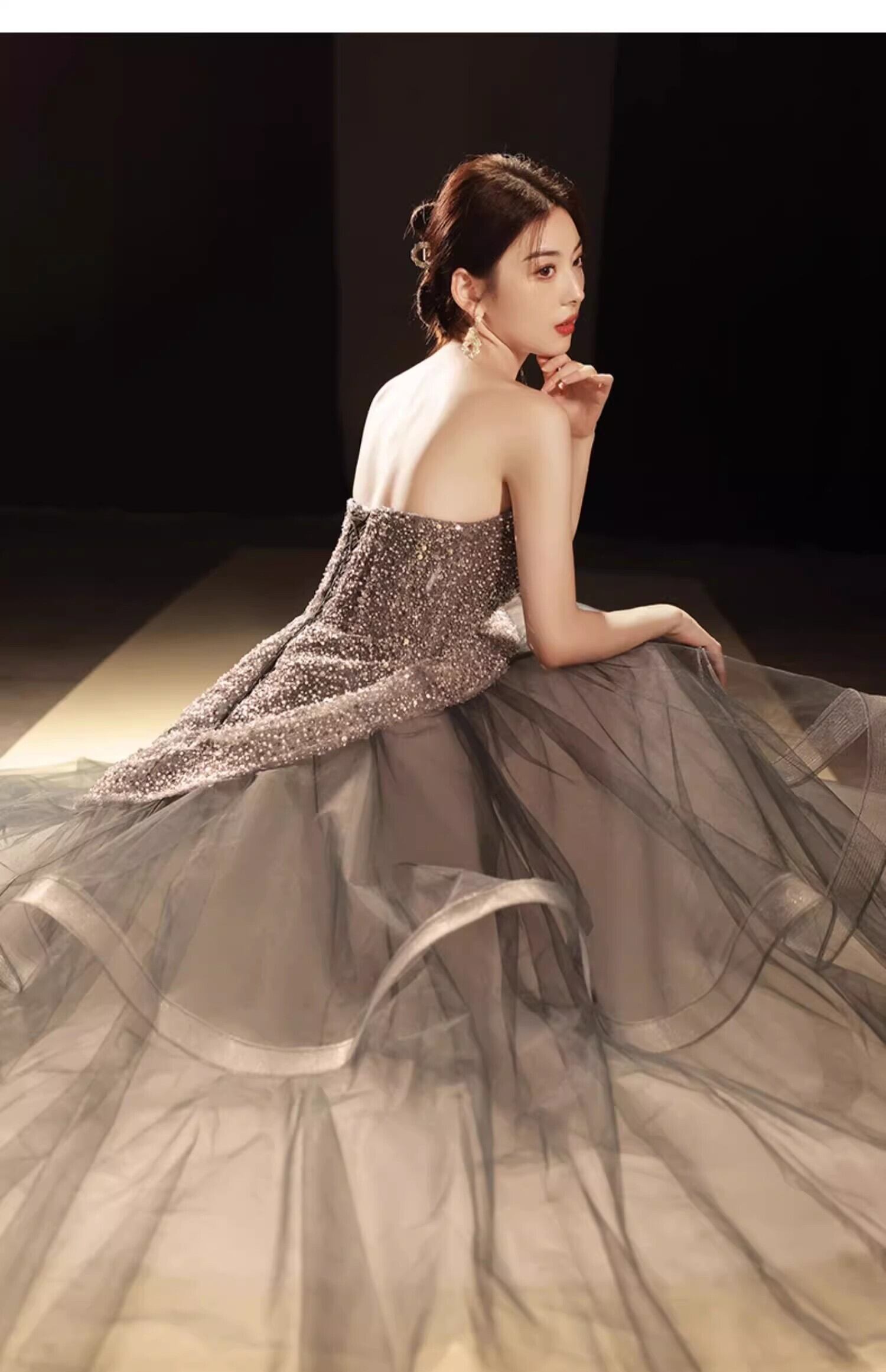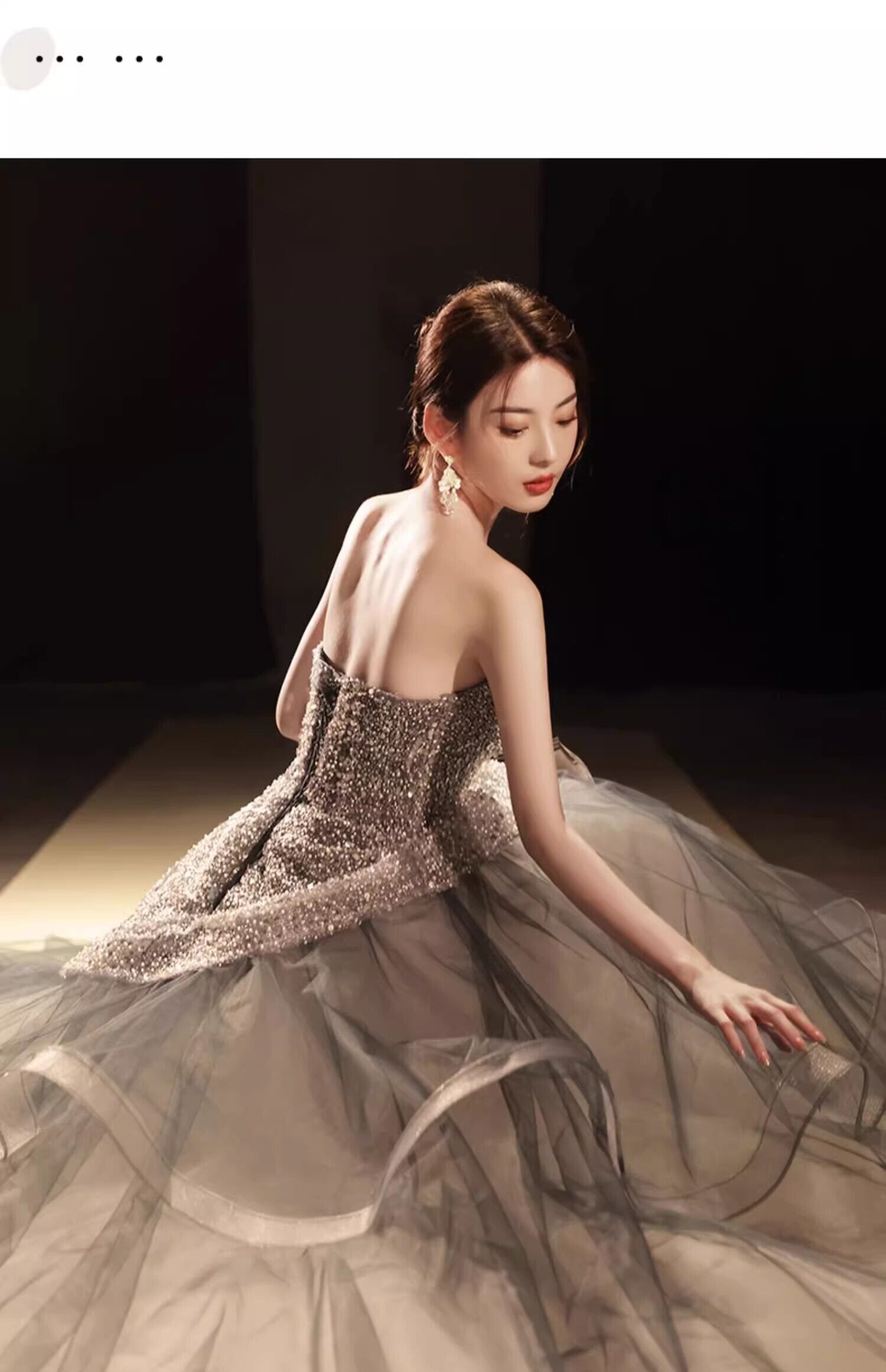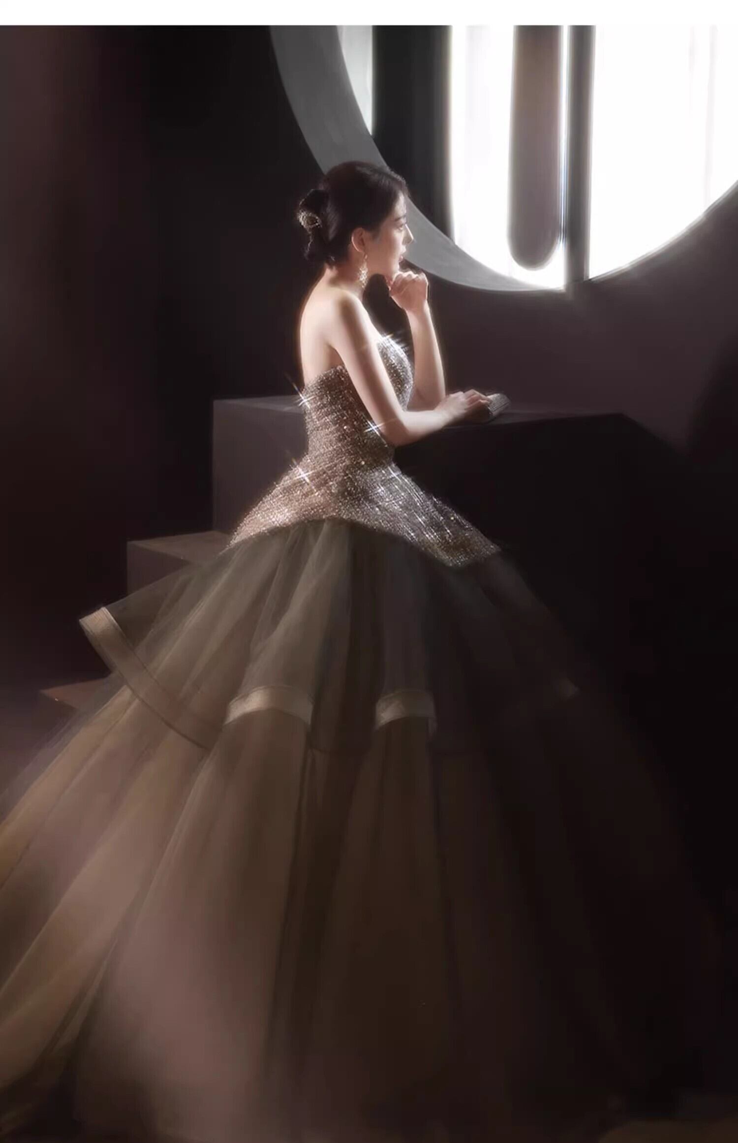 おしゃれ上級者に人気! ベアトップ カラードレス柔らかく重ねたチュールスカート 前撮り 結婚式