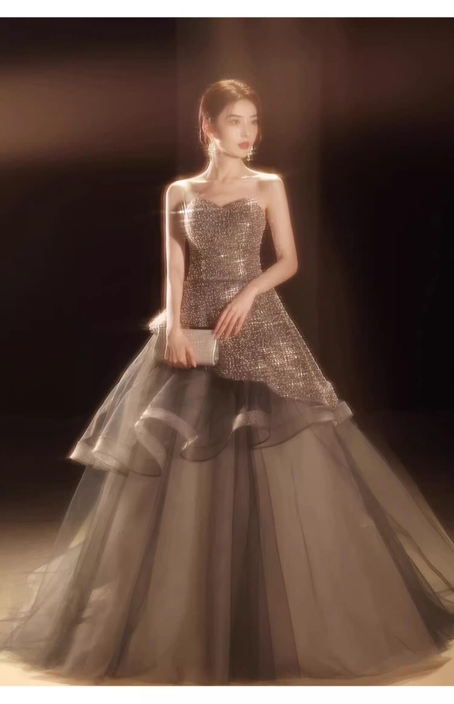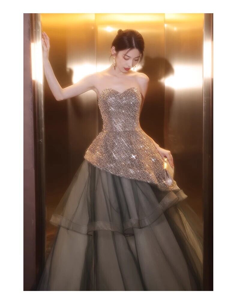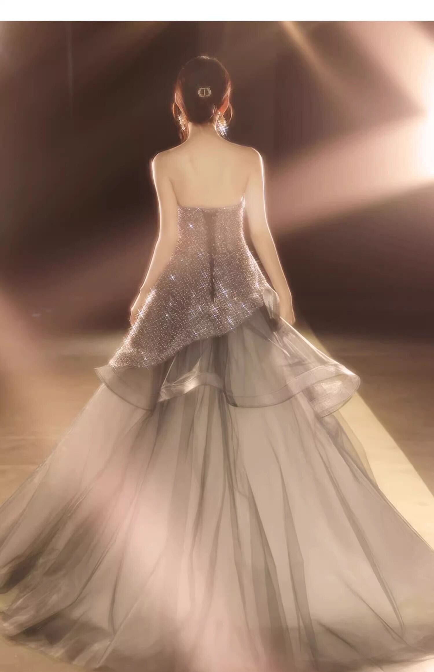おしゃれ上級者に人気! ベアトップ カラードレス柔らかく重ねたチュールスカート 前撮り 結婚式