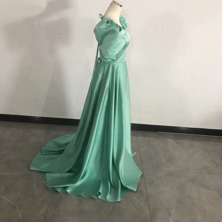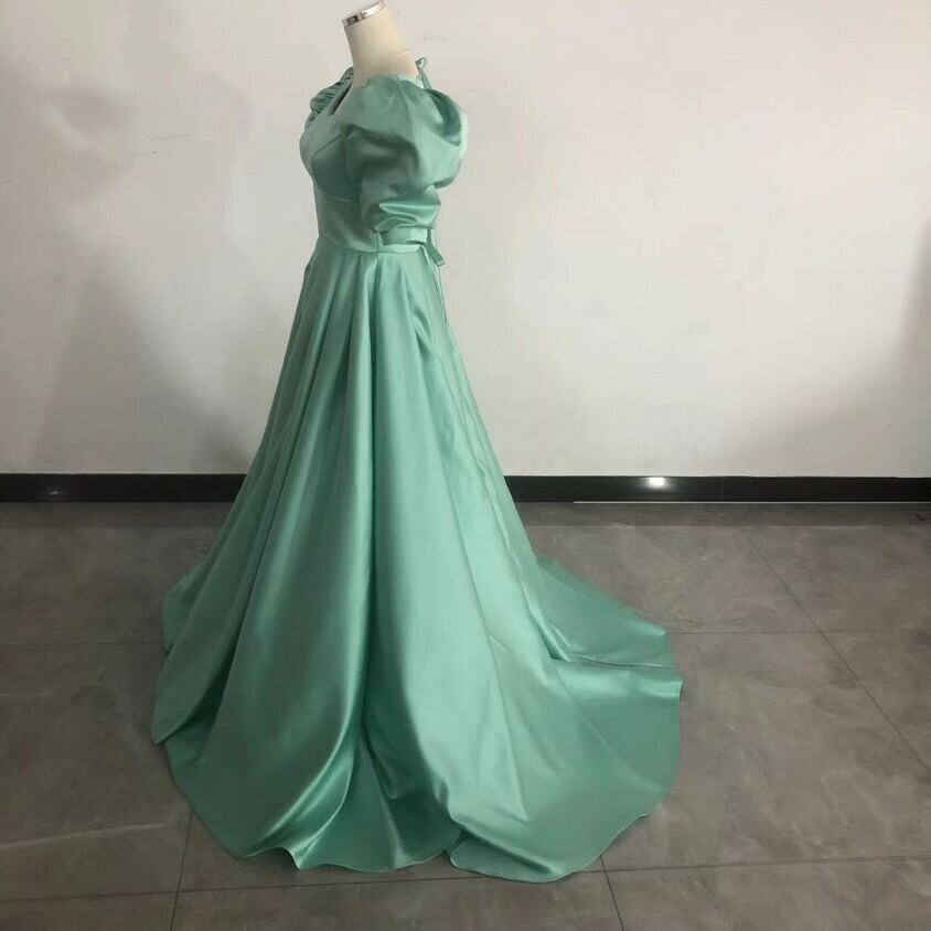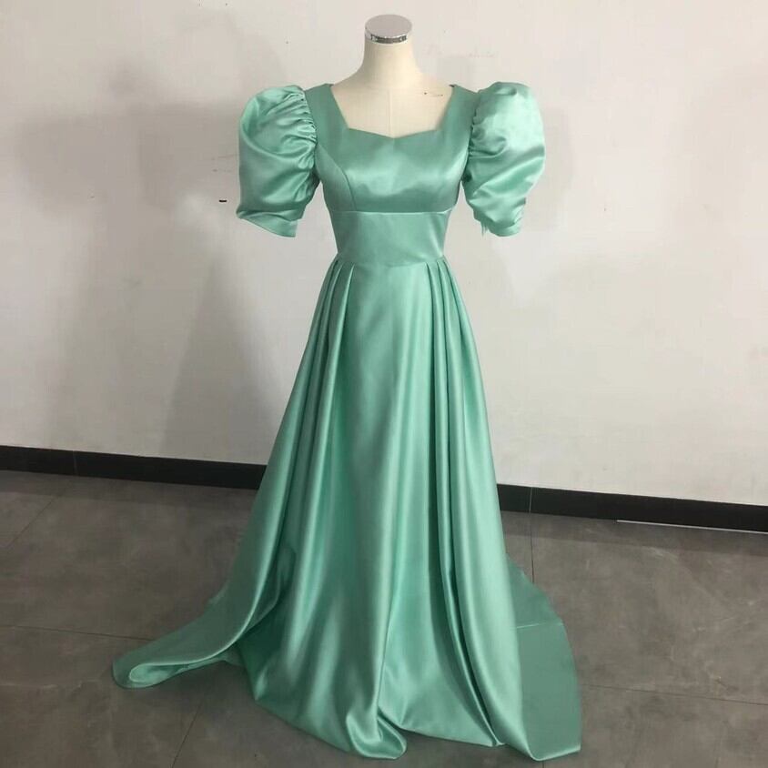 パーティードレス グリーン フランス風 短トレーン 背中見せ 二次会 編み上げ セクシー Vネックドレス 細見えシルエ