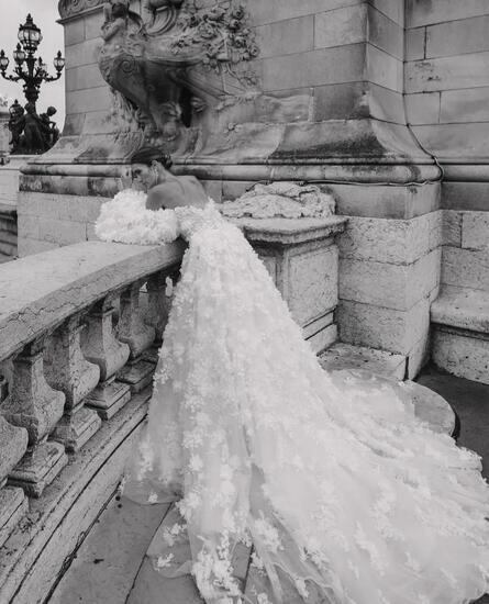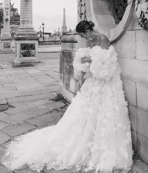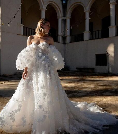 高品質!ウエディングドレス 上品レース ボリューム感 華やかなトレーン 胸元ハートカット 披露宴/演奏会/音楽会