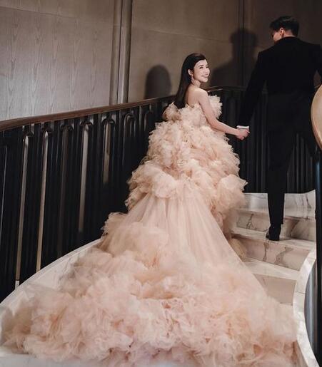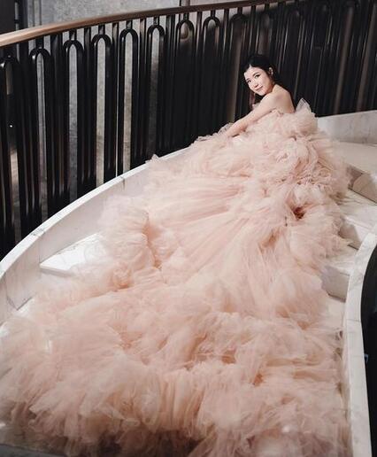 豪華!カラードレス ボリューム満点 フリル 華やか 抜群のおしゃれ見え 重ねたチュール オーダー可能 パーティー/演奏会/音楽会