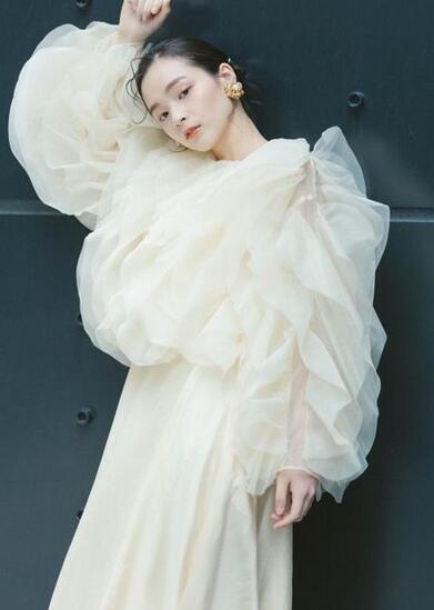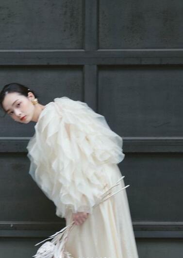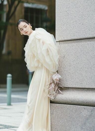 高品質!パーティードレス 柔らかく重ねたチュールスカート フリル オフホワイト 上品レース 高级光沢サテン 結婚式/披露宴/演奏会/音楽会