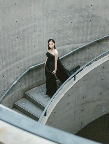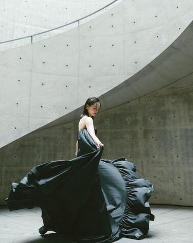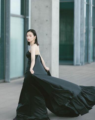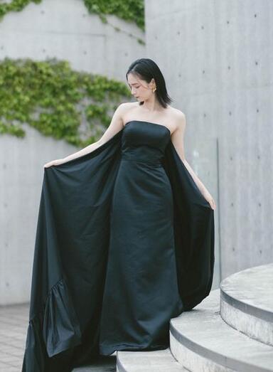 上品!カラードレス 黒 細見えシルエット 高级光沢サテン トレーン マント ビスチェドレス 結婚式/パーティー/披露宴/演奏会/音楽会